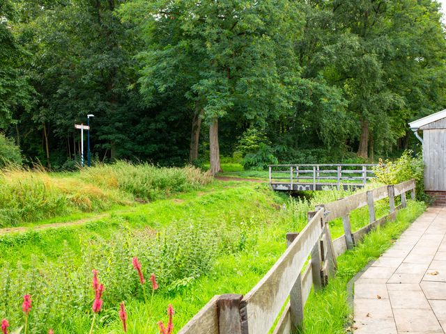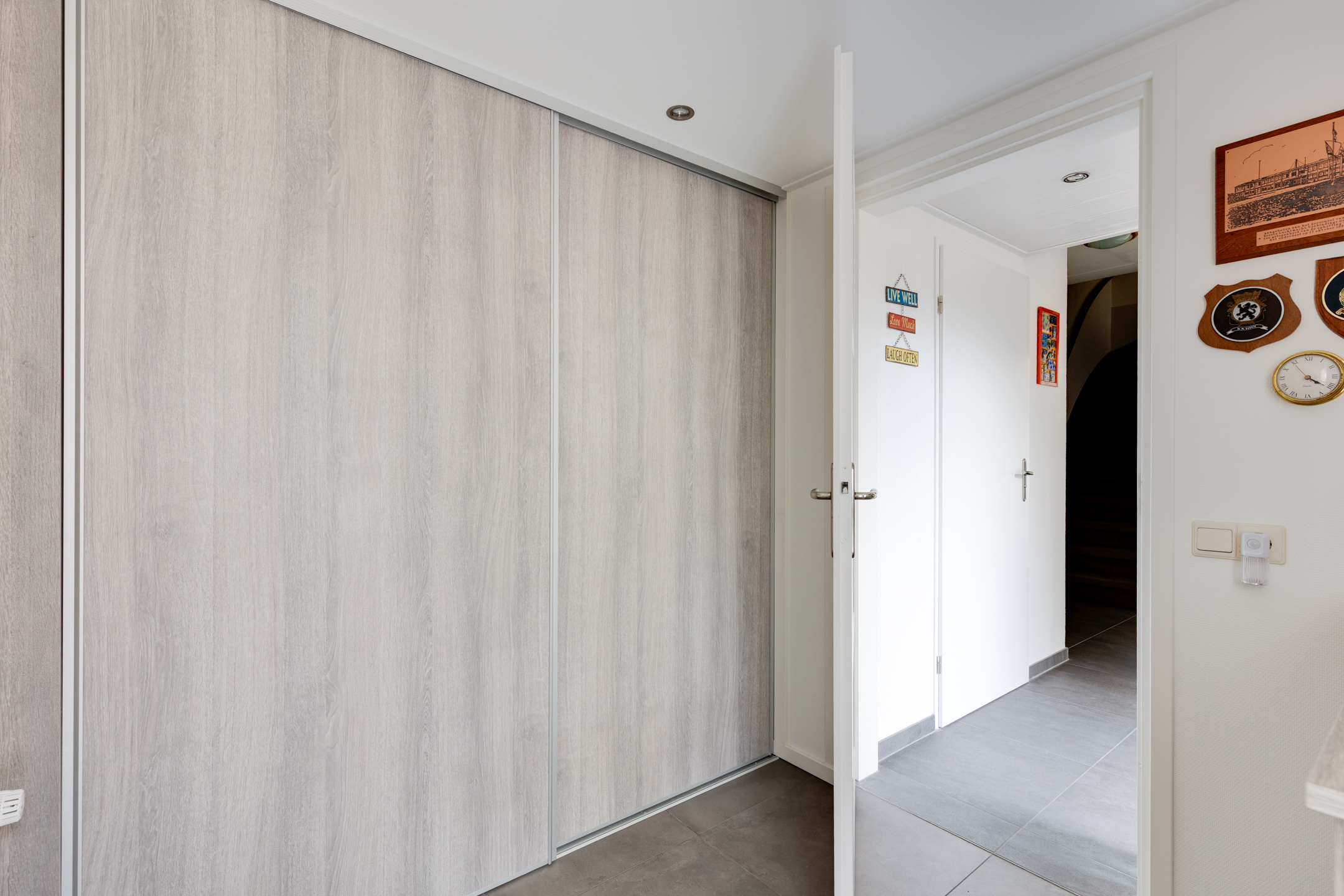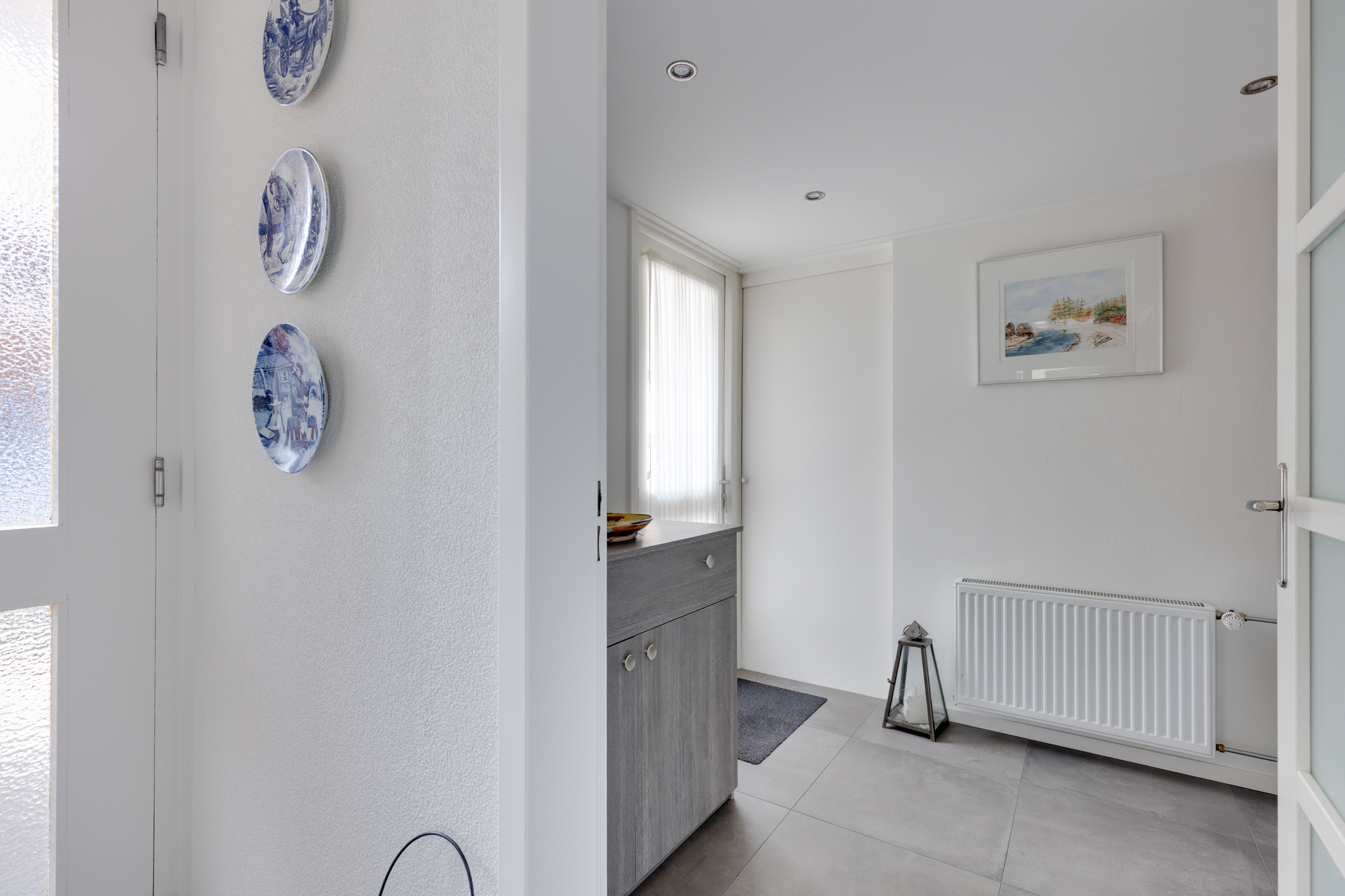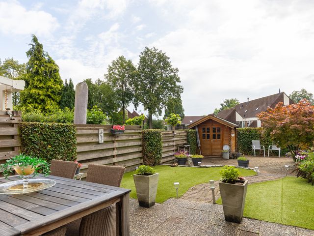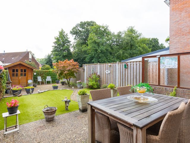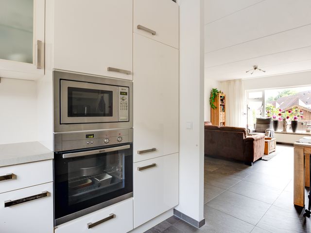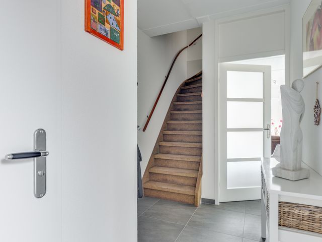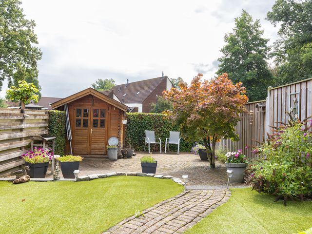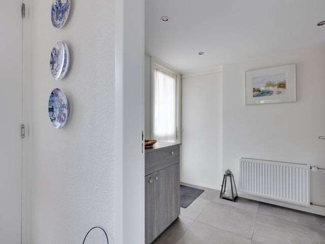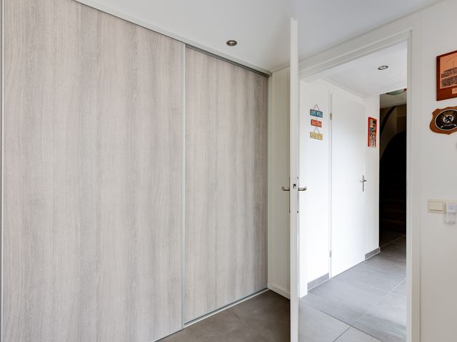 Vanuit de centrale entree/hal is er eveneens toegang tot de bijkeuken/wasruimte met wasmachineaansluiting en inbouwkast met schuifdeuren. De schuur/berging is inpandig bereikbaar vanuit de bijkeuken en deze ruimte beschikt eveneens over een buitendeur.