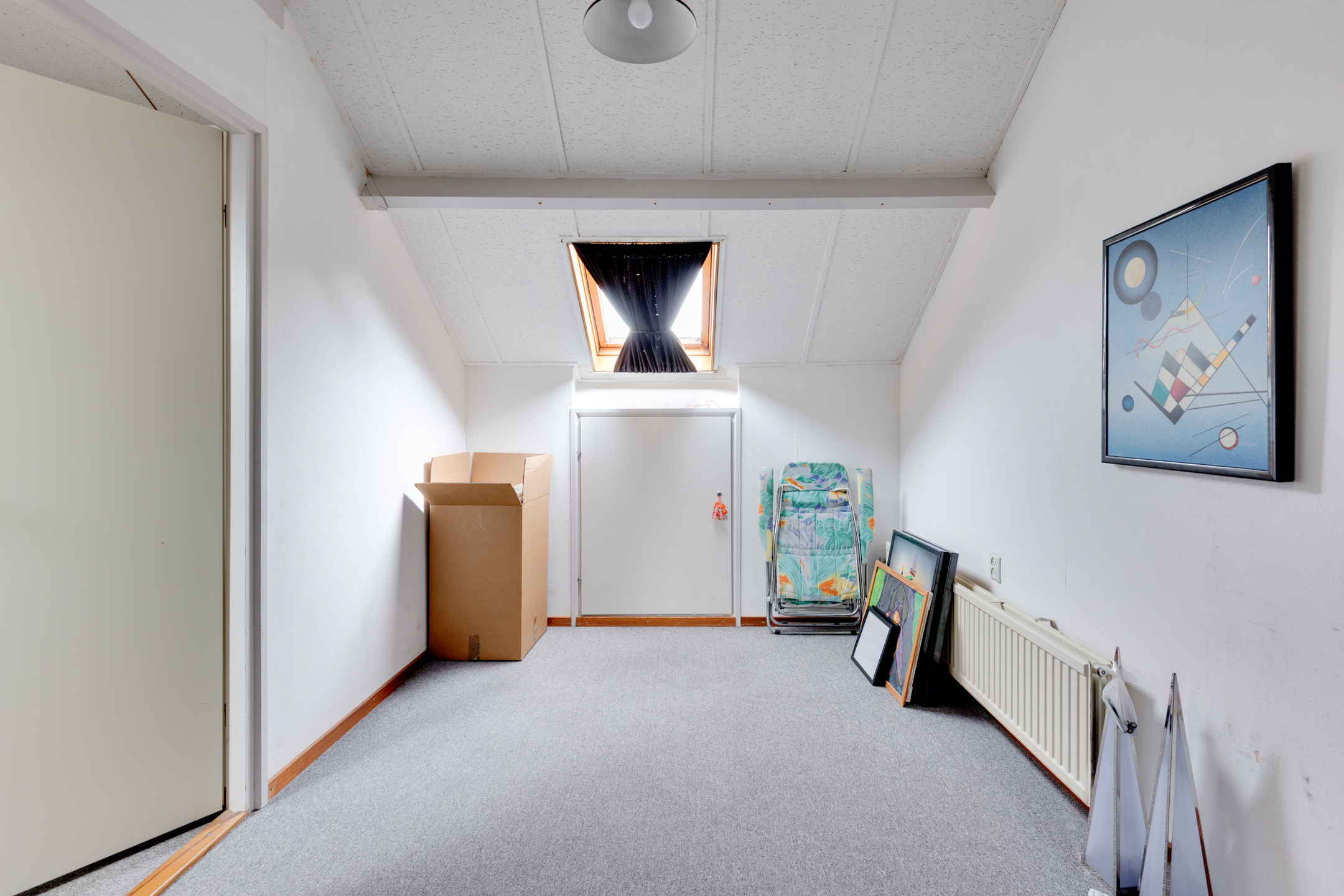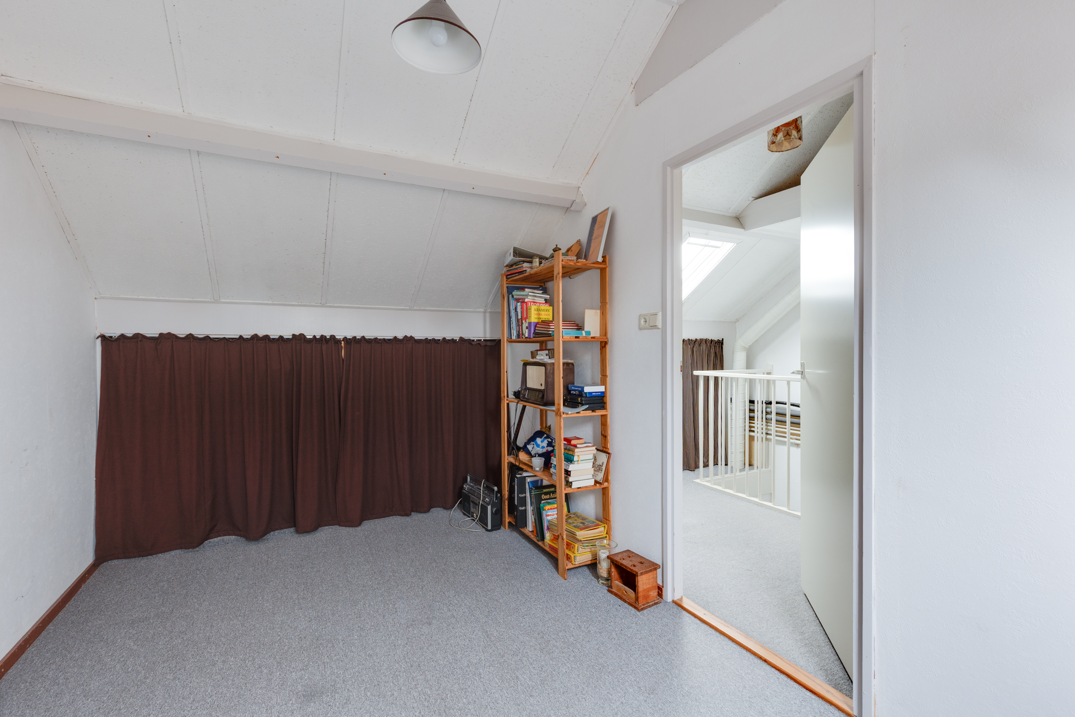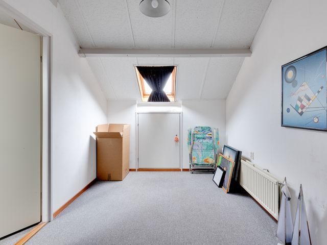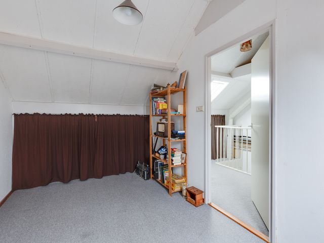 Tweede verdieping: Via vaste trap bereikbare ruime overloop met toegang tot de vierde slaapkamer. Zowel de slaapkamer als de overloop beschikken over bergruimte.