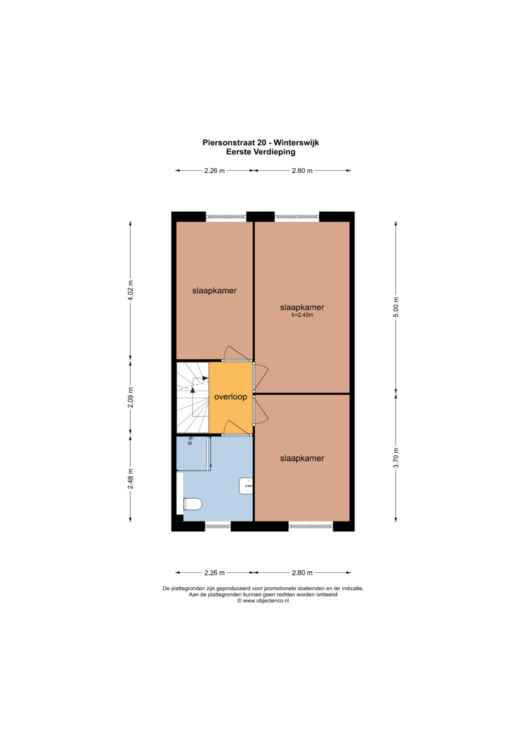 Eerste verdieping: Overloop met toegang tot drie slaapkamers en de badkamer. De badkamer is voorzien van een douchecabine, wandcloset en wastafel met aan weerszijden kastruimte.