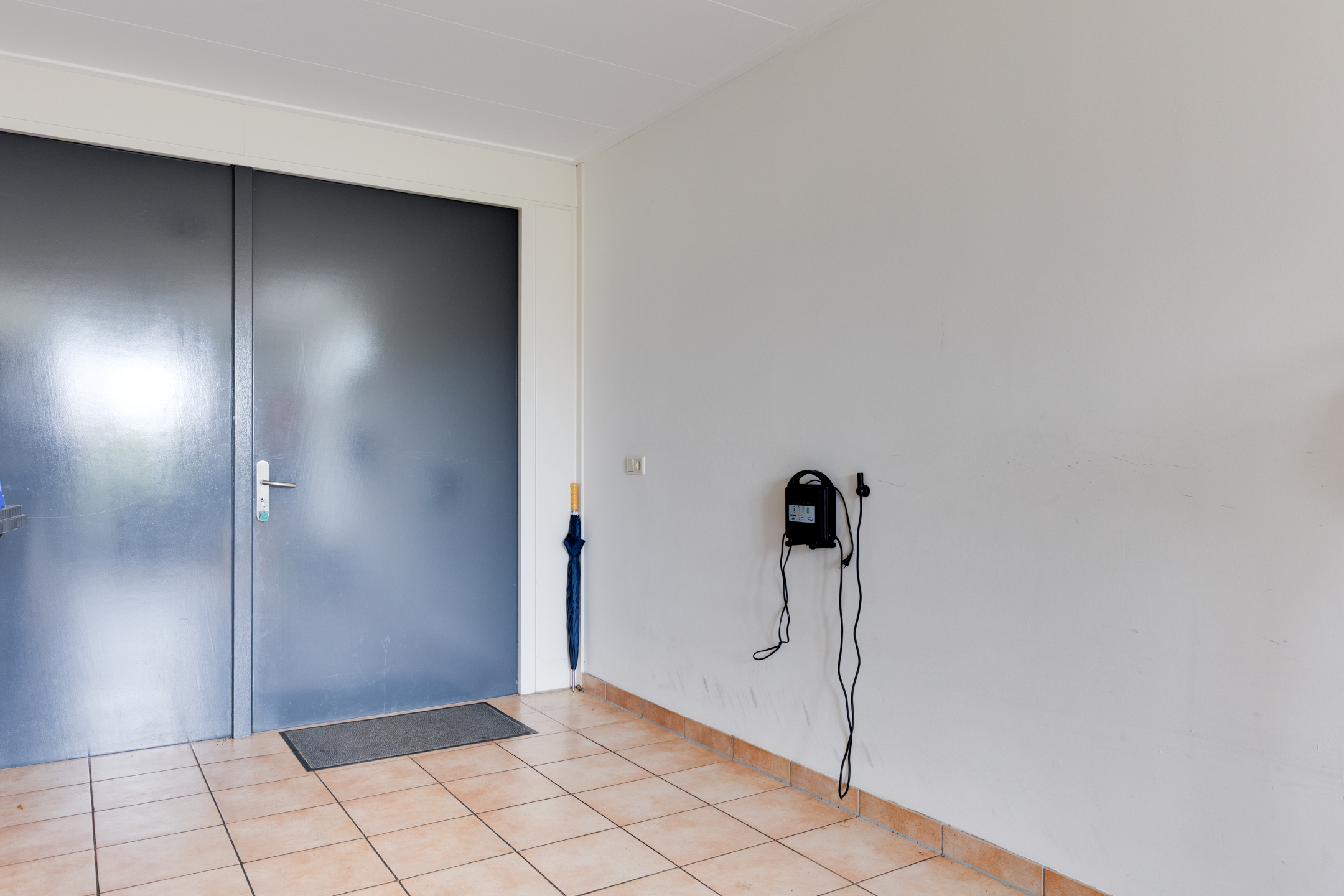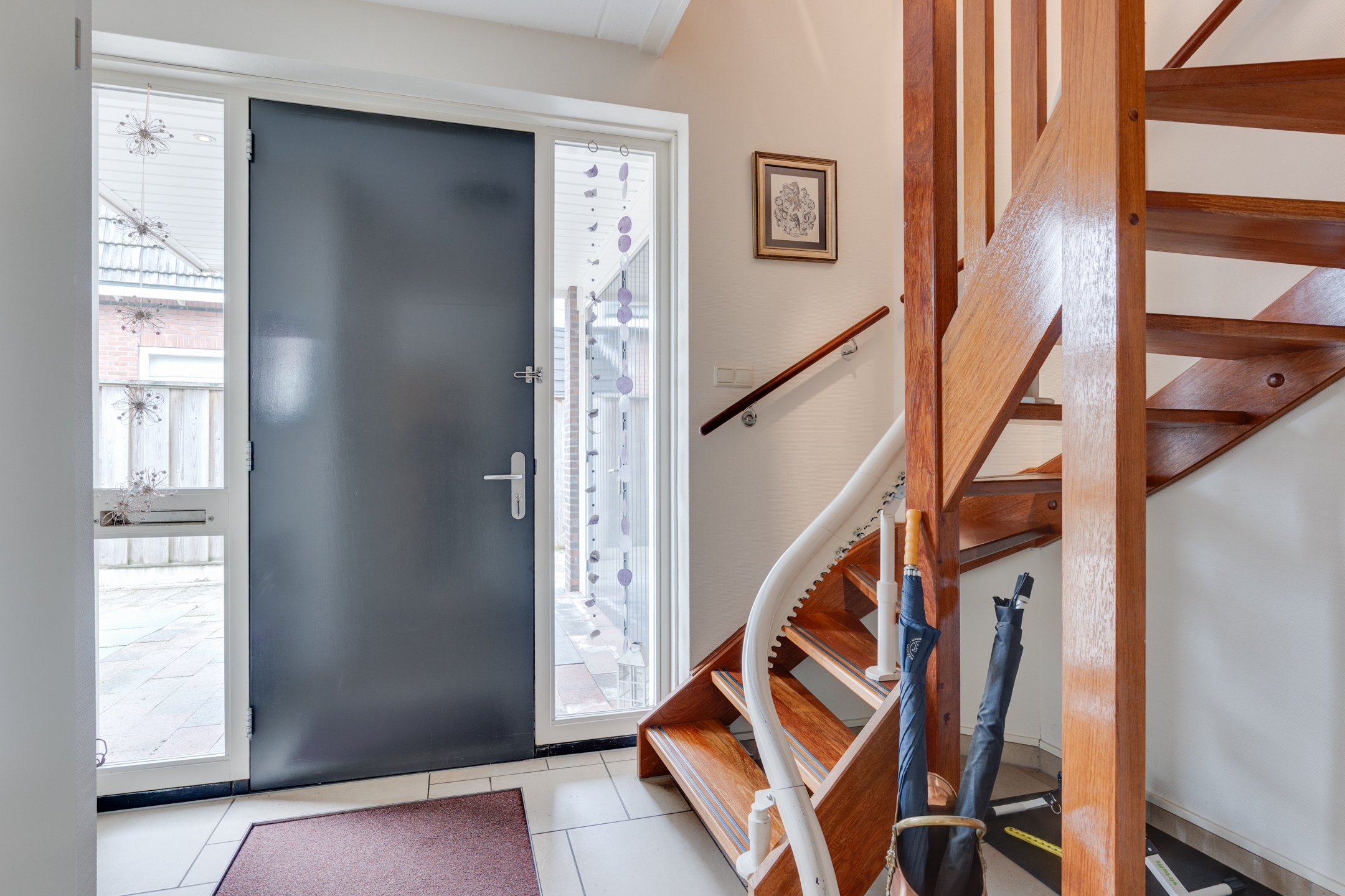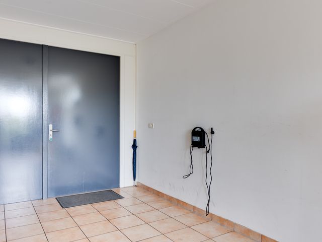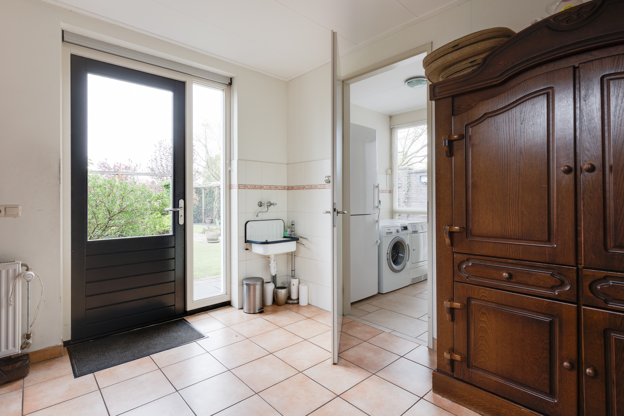 Begane grond: Via een overdekte entree is de woning via de voordeur toegankelijk. In de hal bevinden zich de trapopgang naar de eerste verdieping, de meterkast en de toiletruimte met wandcloset en fonteintje. Vanuit de hal is er toegang tot de ruime, L-vormige woon-/eetkamer. Aan de voorzijde is een sfeervolle erker gerealiseerd, terwijl aan de achterzijde openslaande deuren toegang bieden tot de achtertuin. De open keuken is voorzien van diverse inbouwapparatuur waaronder een vaatwasser, koelkast en oven. De keuken biedt toegang tot de bijkeuken met aansluitingen voor wasmachine en -droger. Vanuit de bijkeuken is er toegang tot zowel de achtertuin als de berging/garage. De berging/garage beschikt over openslaande deuren aan de voorzijde en een extra deur naar de achtertuin.