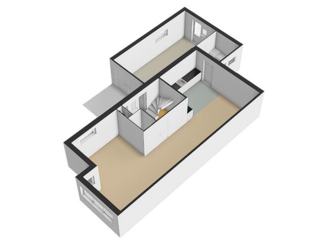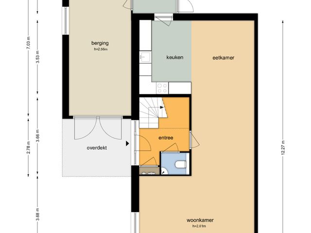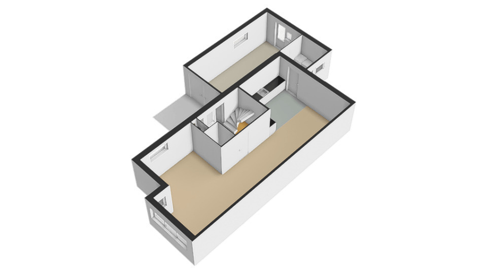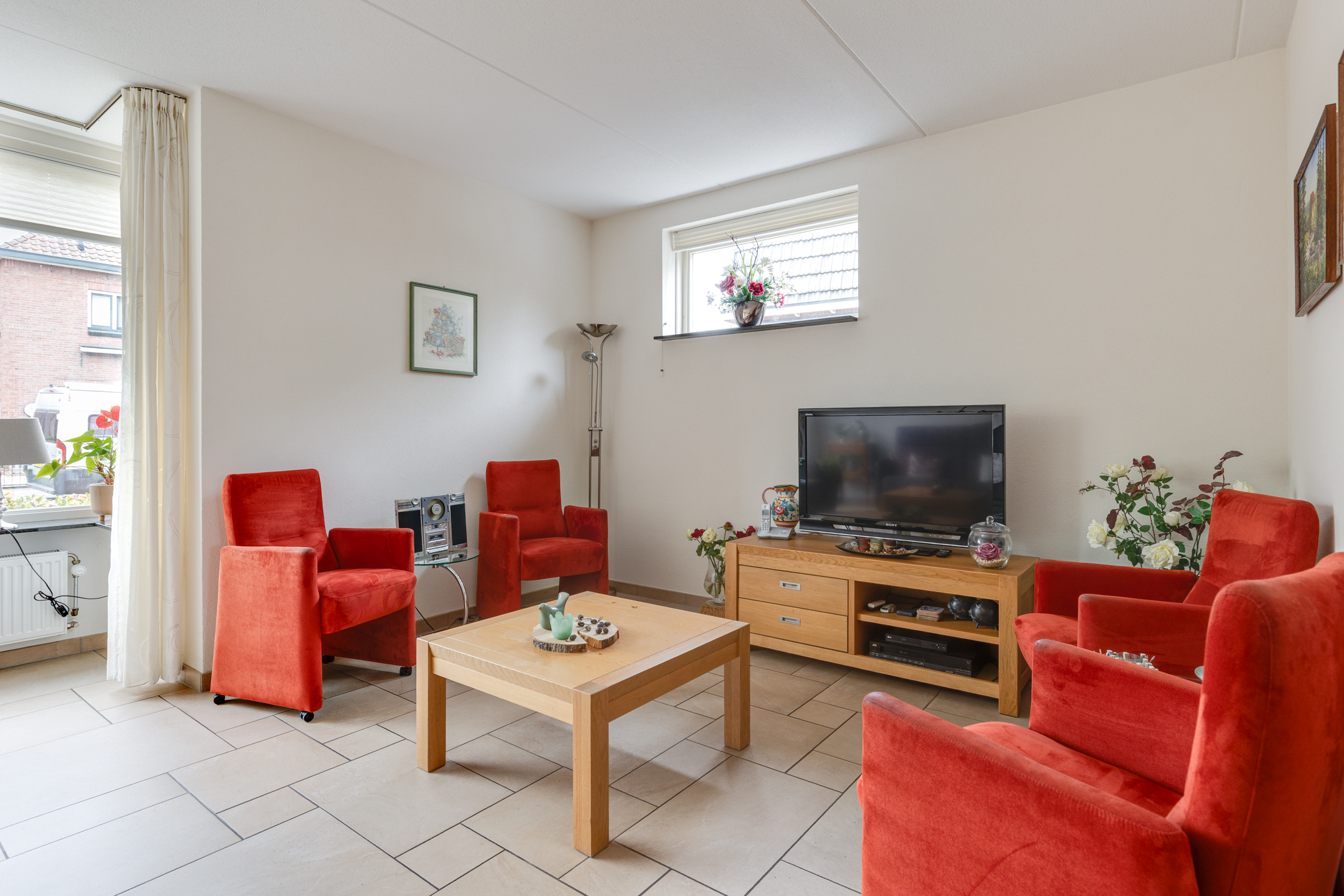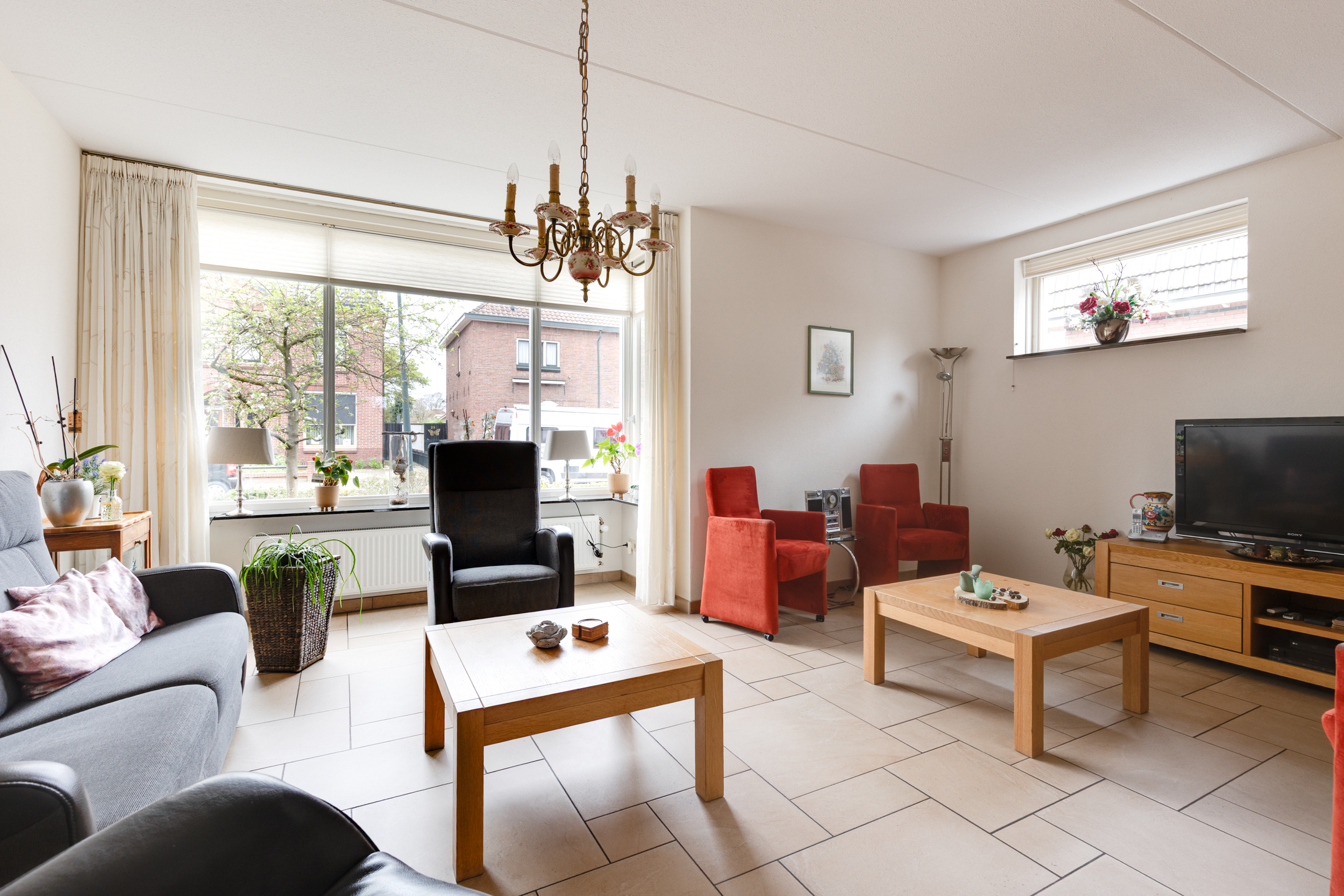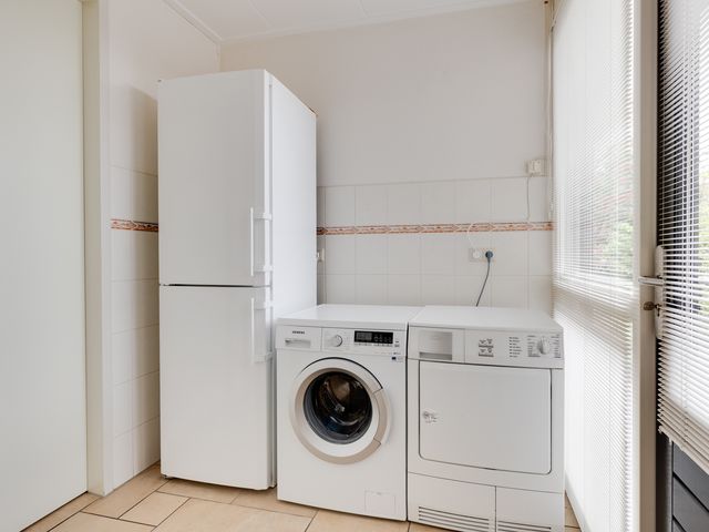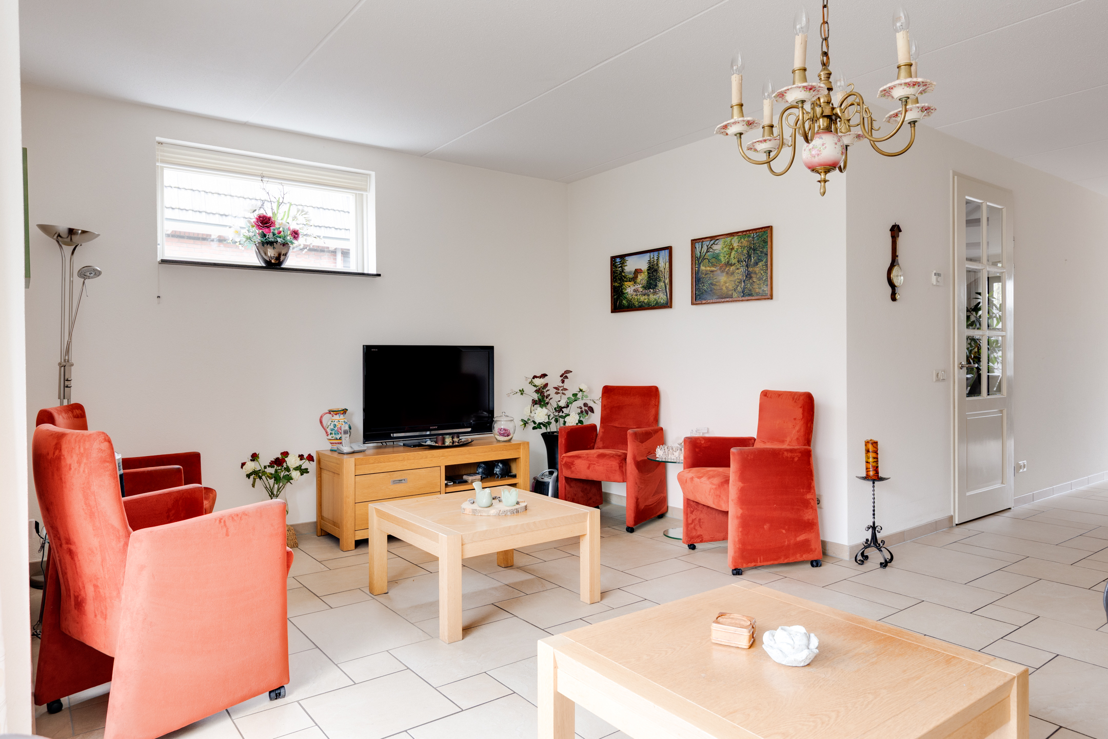 Begane grond: Via een overdekte entree is de woning via de voordeur toegankelijk. In de hal bevinden zich de trapopgang naar de eerste verdieping, de meterkast en de toiletruimte met wandcloset en fonteintje. Vanuit de hal is er toegang tot de ruime, L-vormige woon-/eetkamer. Aan de voorzijde is een sfeervolle erker gerealiseerd, terwijl aan de achterzijde openslaande deuren toegang bieden tot de achtertuin. De open keuken is voorzien van diverse inbouwapparatuur waaronder een vaatwasser, koelkast en oven. De keuken biedt toegang tot de bijkeuken met aansluitingen voor wasmachine en -droger. Vanuit de bijkeuken is er toegang tot zowel de achtertuin als de berging/garage. De berging/garage beschikt over openslaande deuren aan de voorzijde en een extra deur naar de achtertuin.