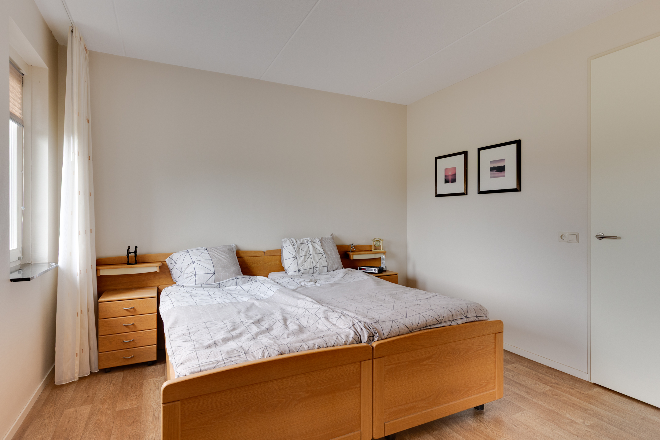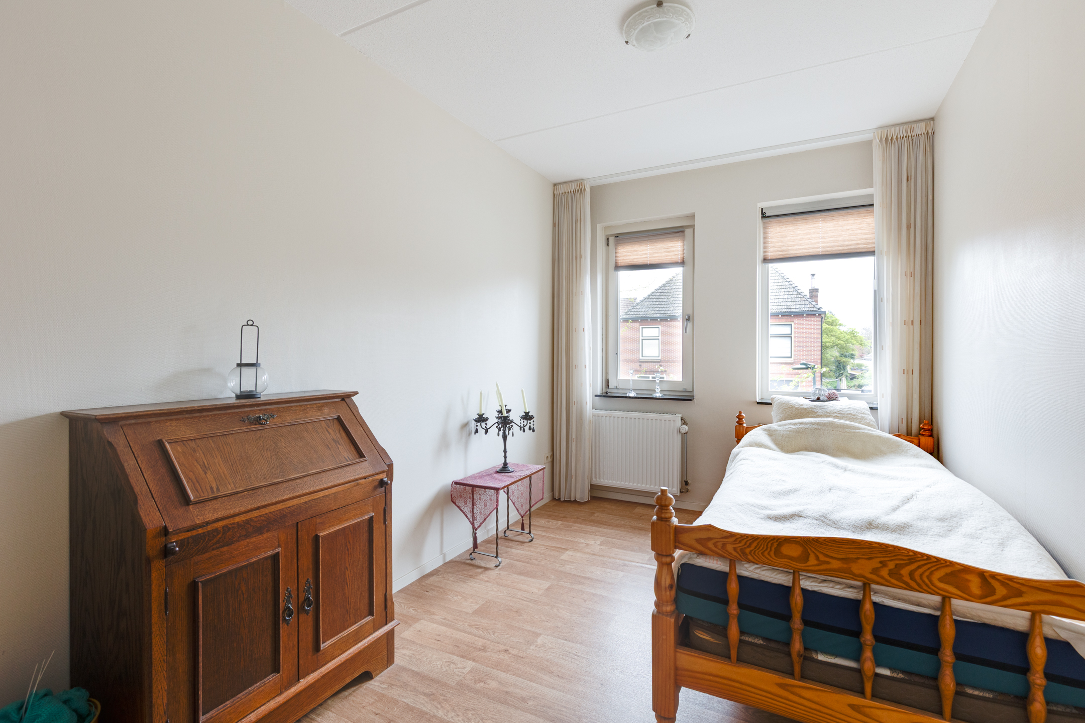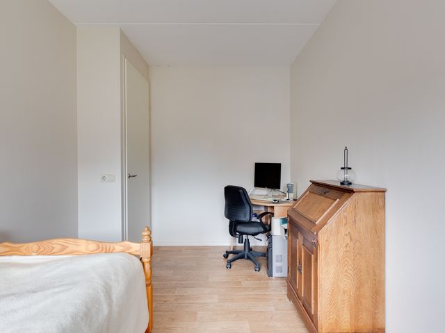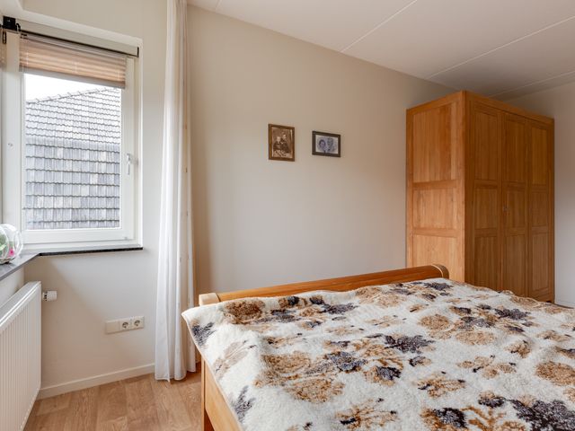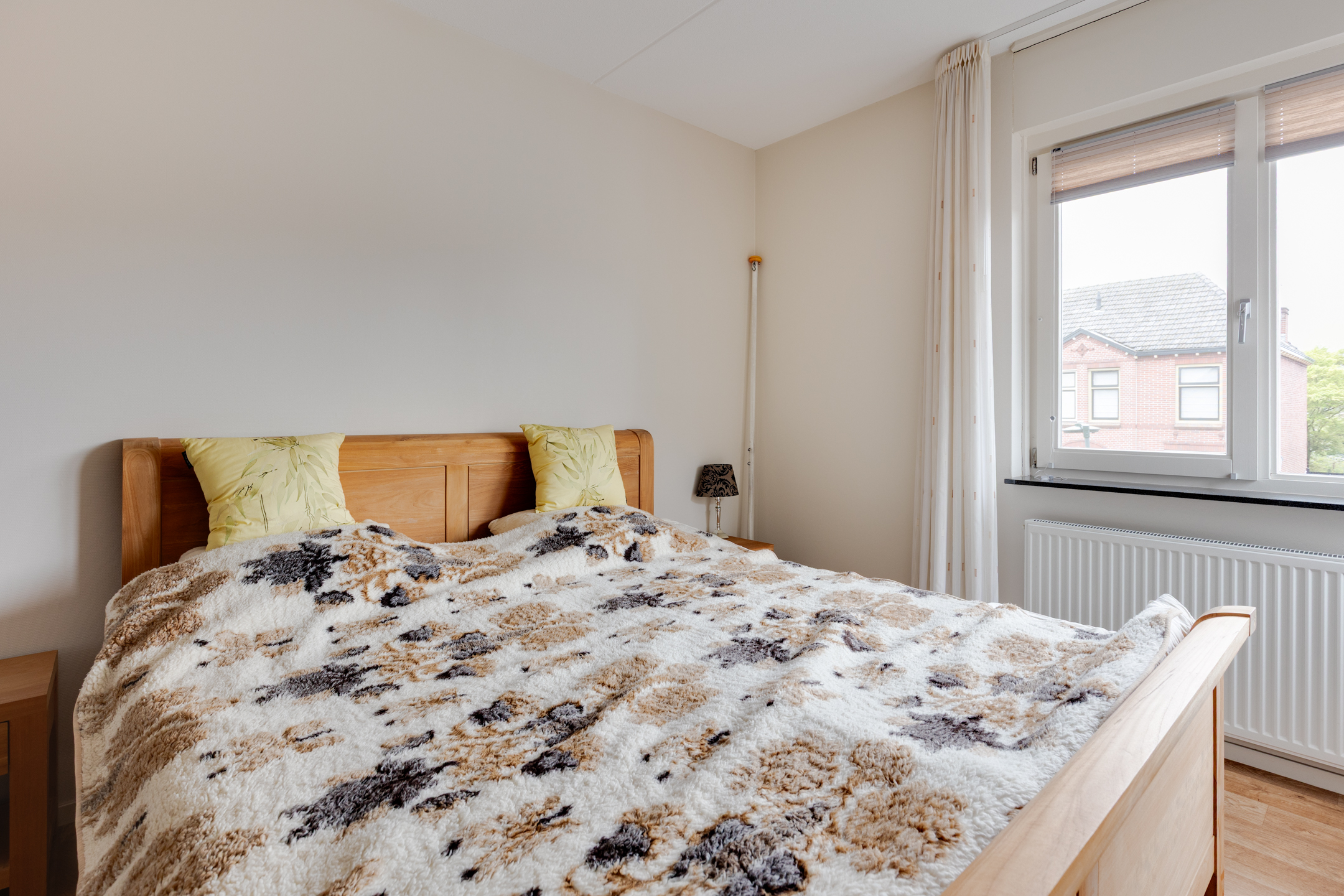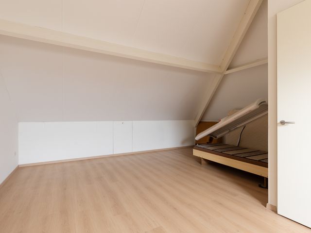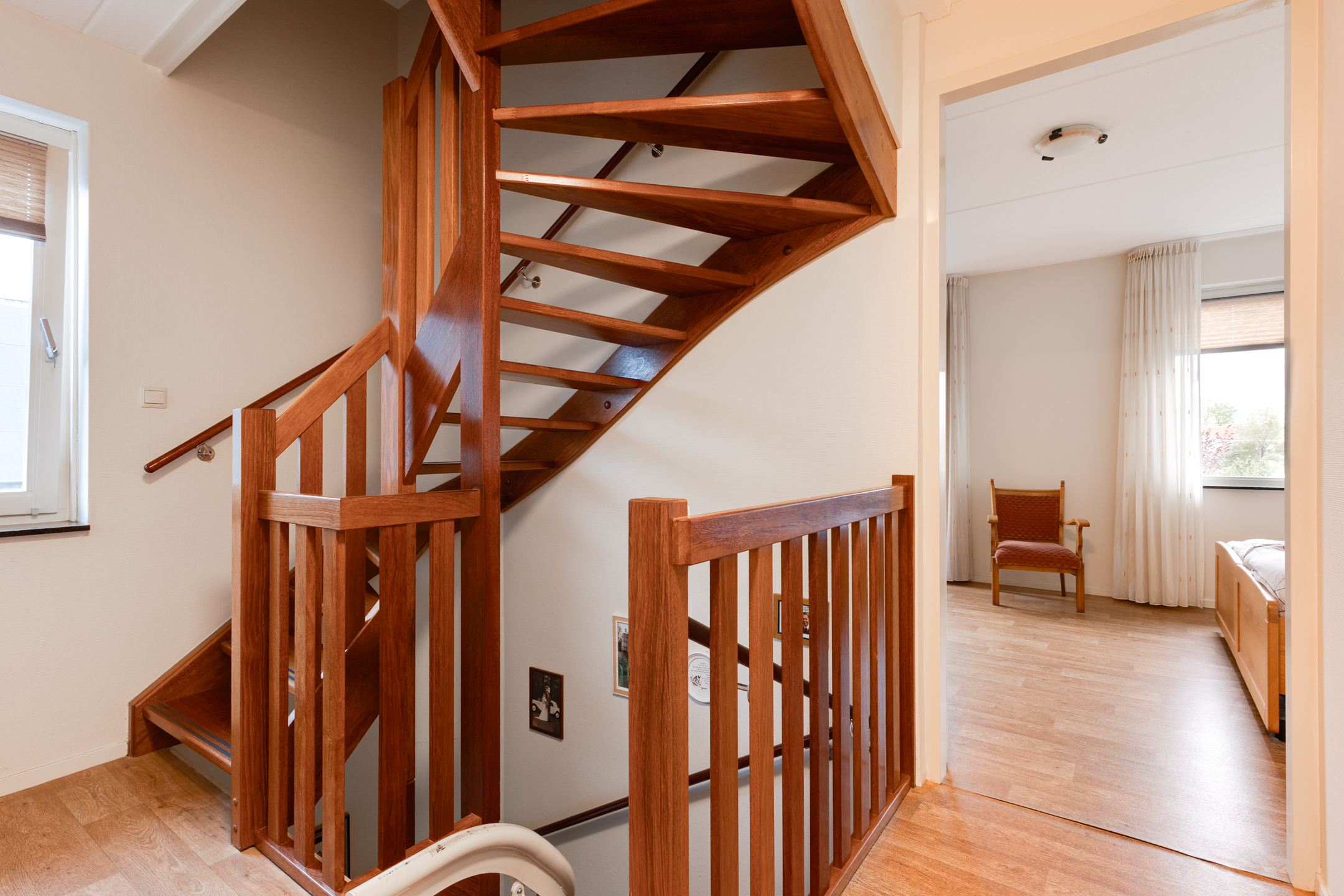 Eerste verdieping: Overloop met toegang tot 3 ruime slaapkamers en de badkamer. De overloop en slaapkamers zijn voorzien van een laminaatvloer. Zoals in de gehele woning blijft ook alle raamdecoratie in de slaapkamers achter. De badkamer beschikt over een ligbad, een inloopdouche, wandcloset en wastafelmeubel met spiegelkast.