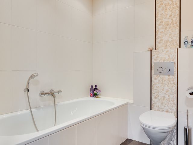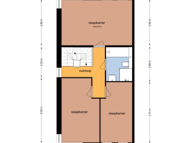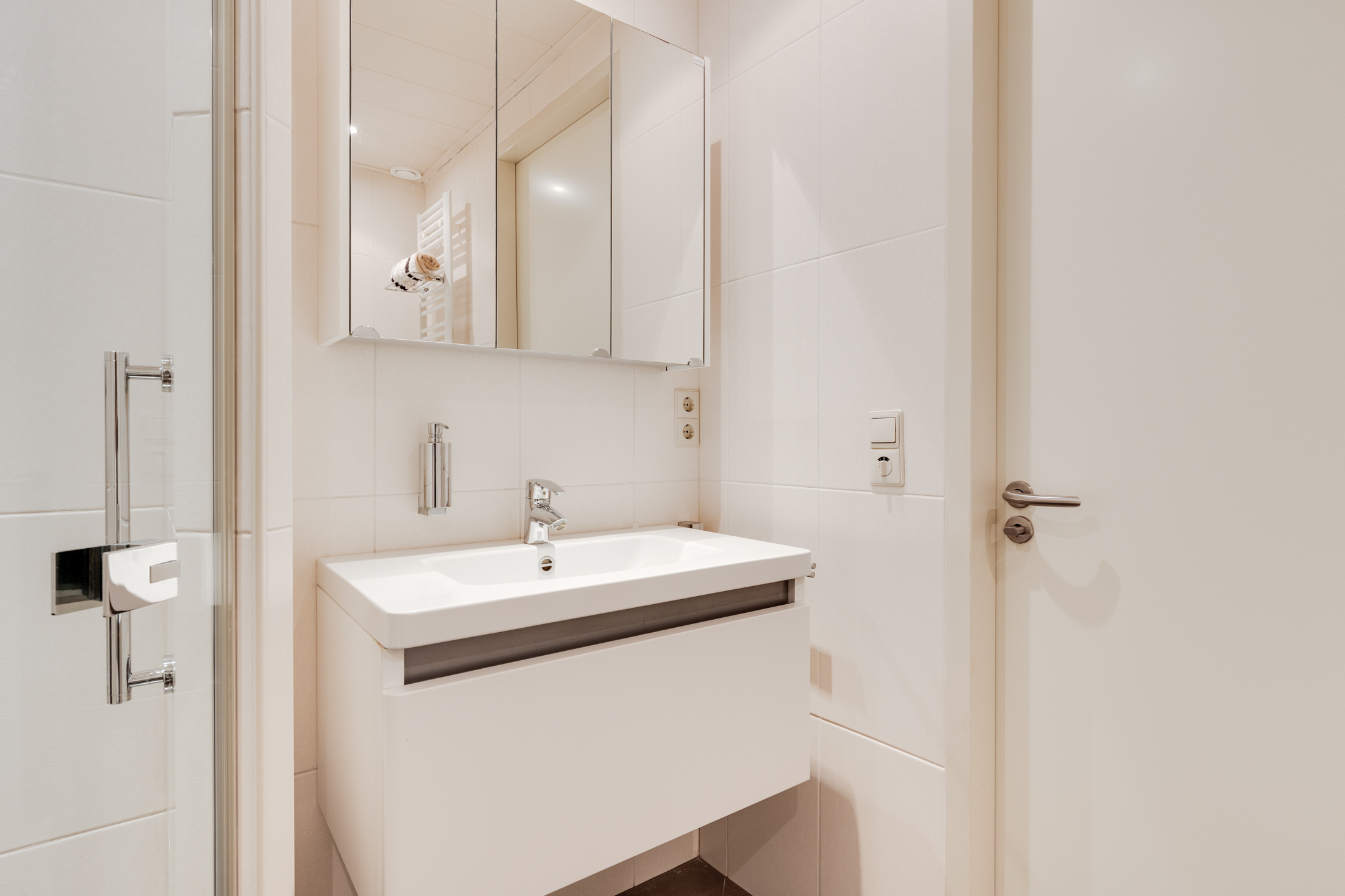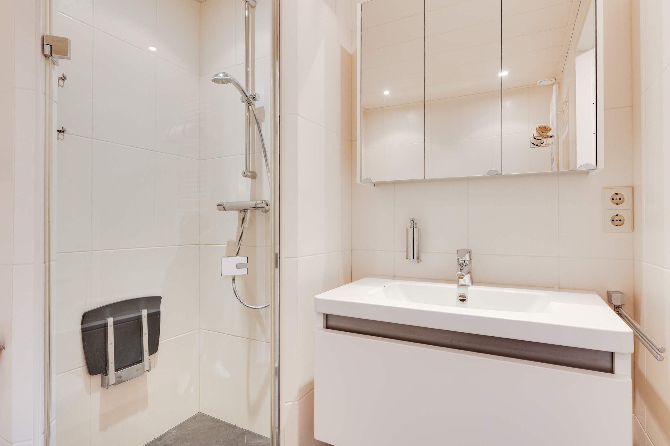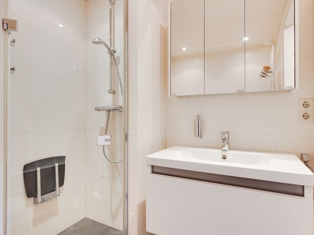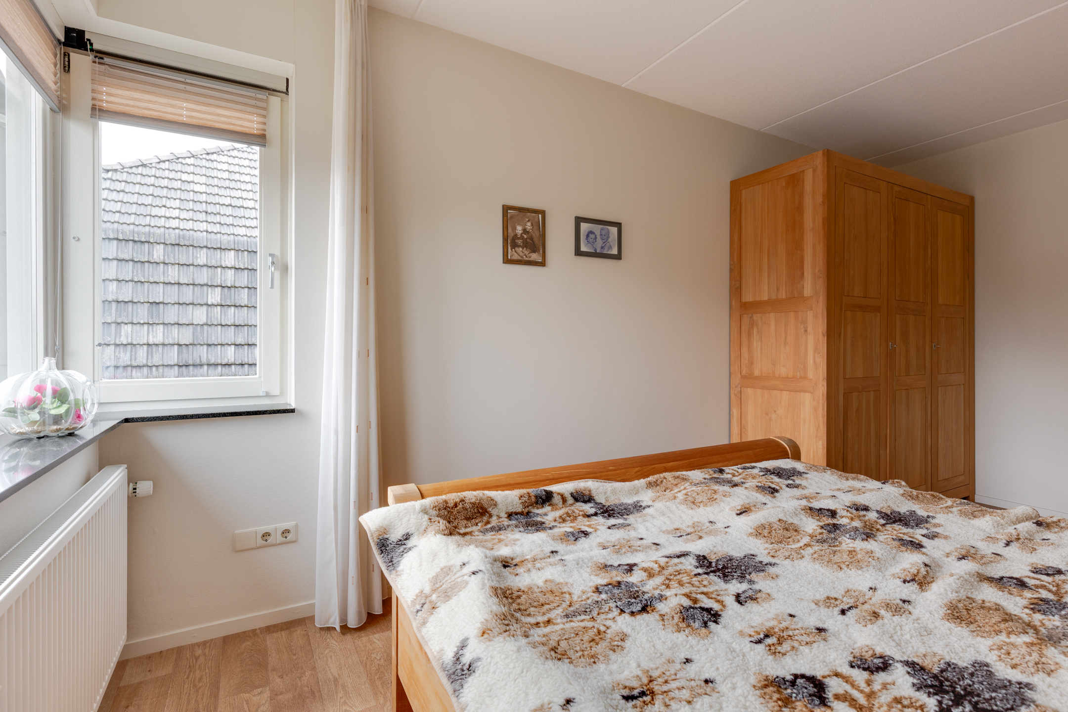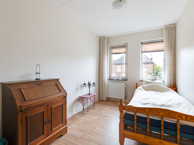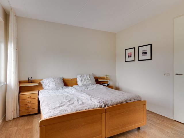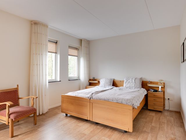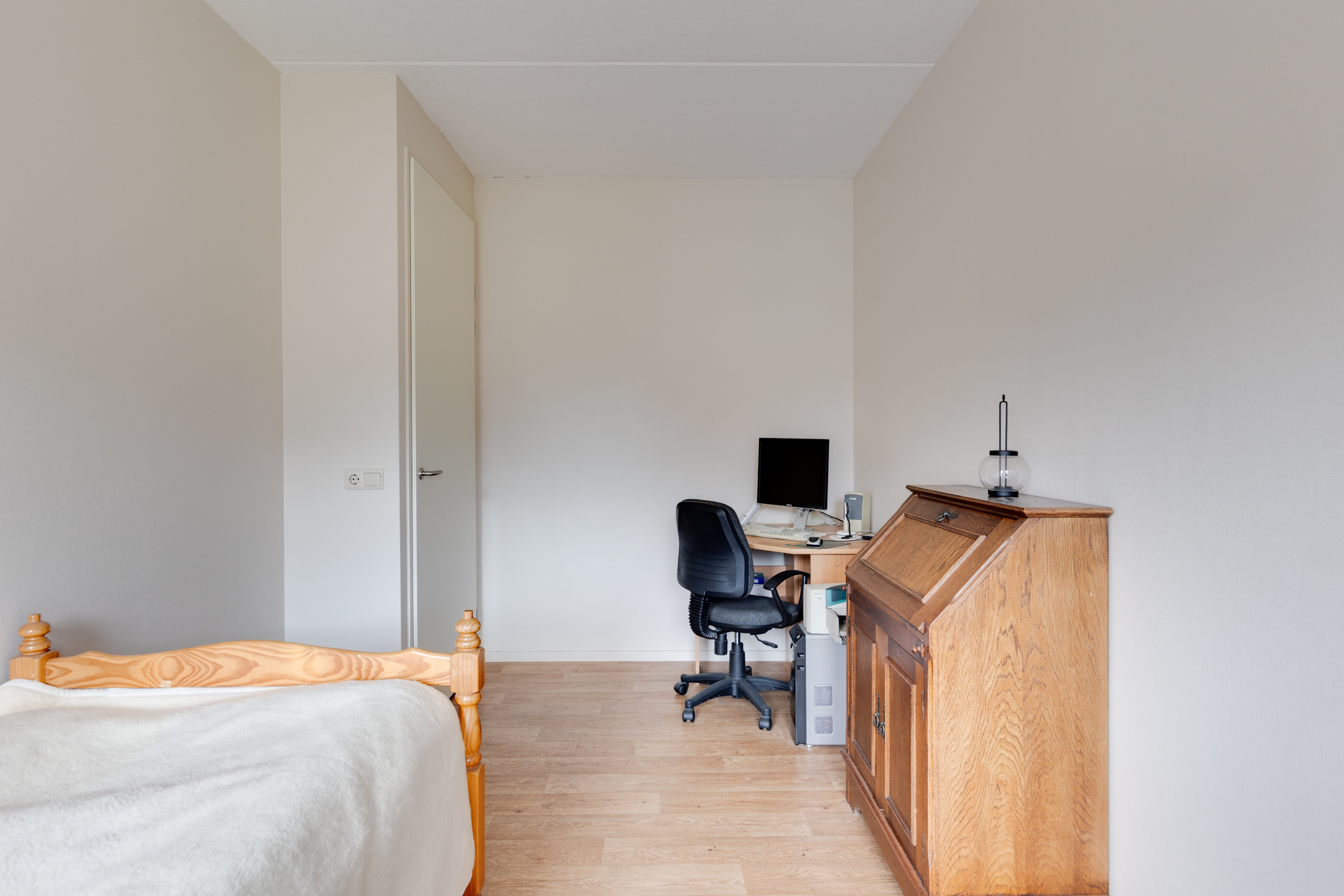 Eerste verdieping: Overloop met toegang tot 3 ruime slaapkamers en de badkamer. De overloop en slaapkamers zijn voorzien van een laminaatvloer. Zoals in de gehele woning blijft ook alle raamdecoratie in de slaapkamers achter. De badkamer beschikt over een ligbad, een inloopdouche, wandcloset en wastafelmeubel met spiegelkast.