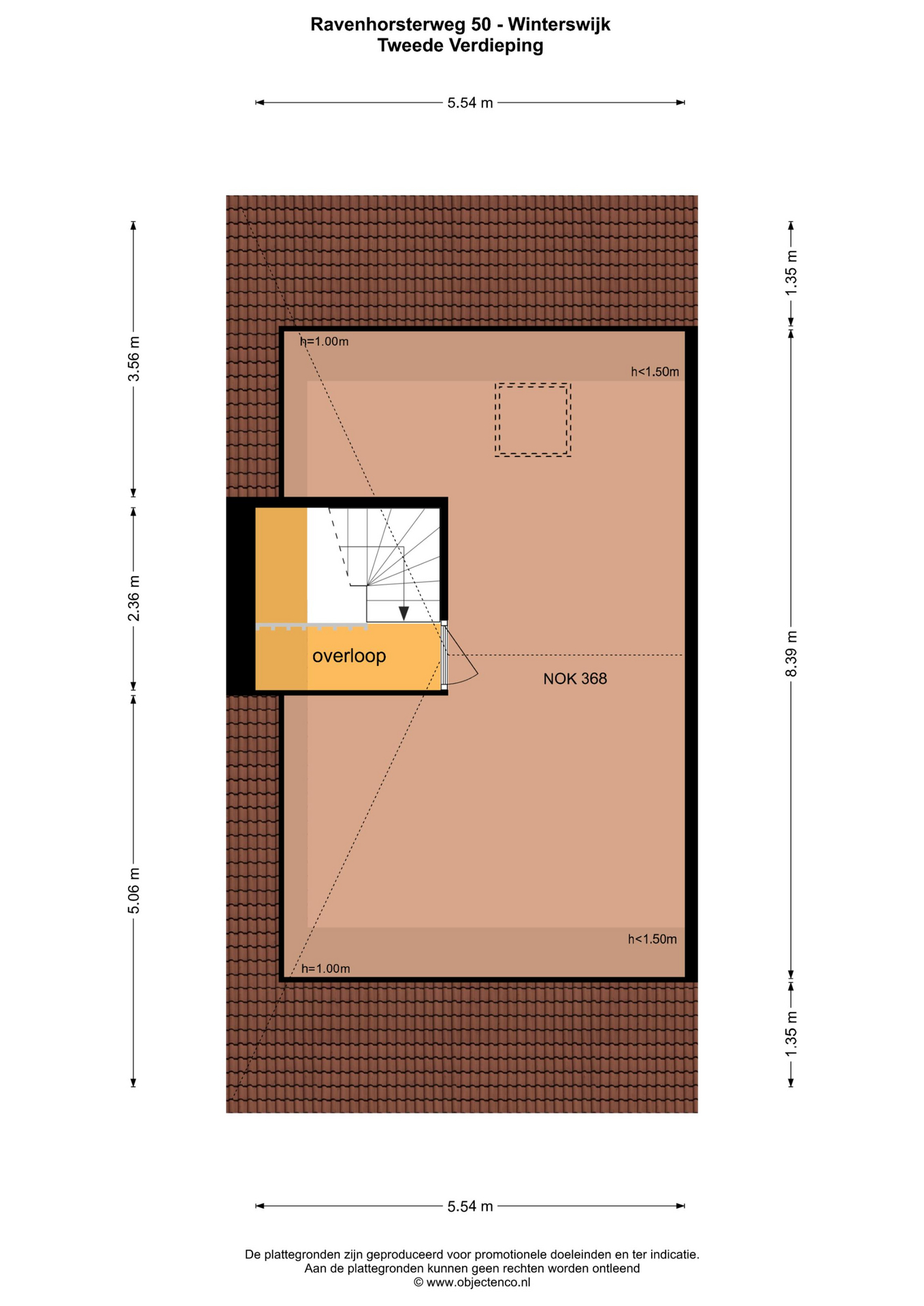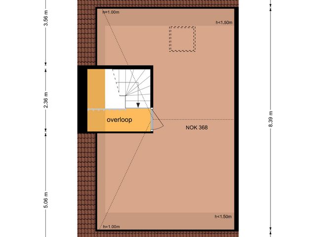 Tweede verdieping: Via een vaste trap te bereiken overloop met toegang tot de grote zolderruimte. Op deze verdieping kan een extra/4e slaapkamer worden gerealiseerd.