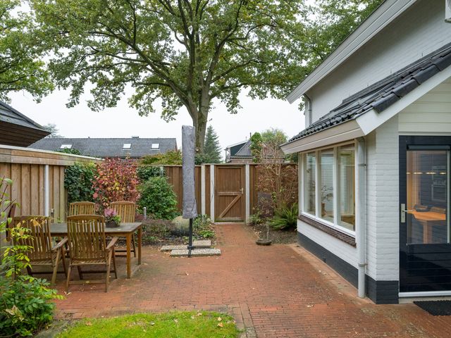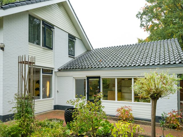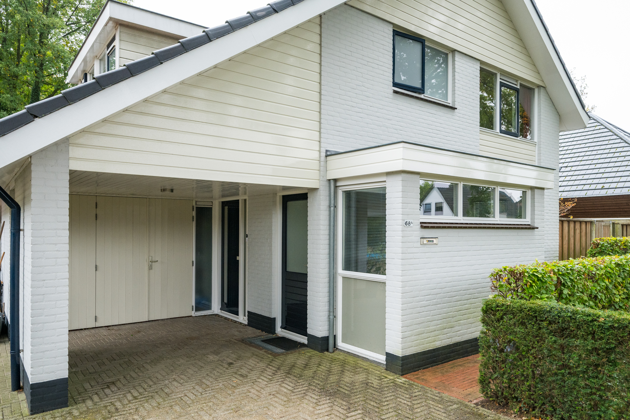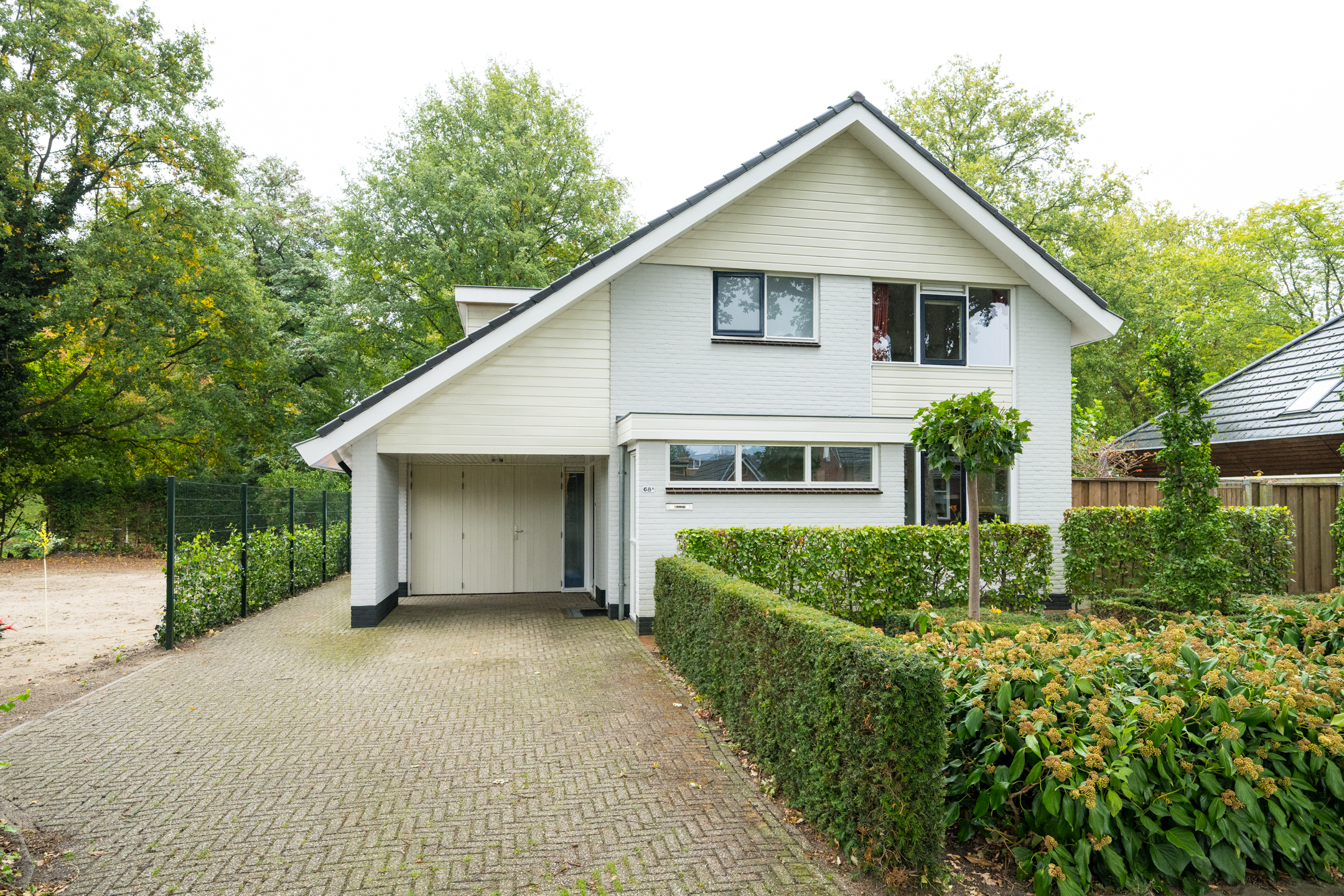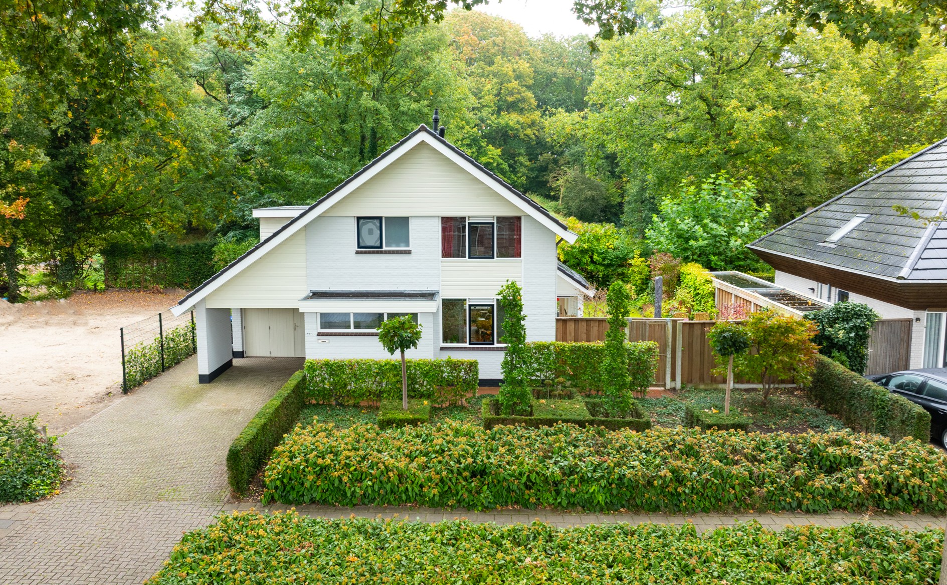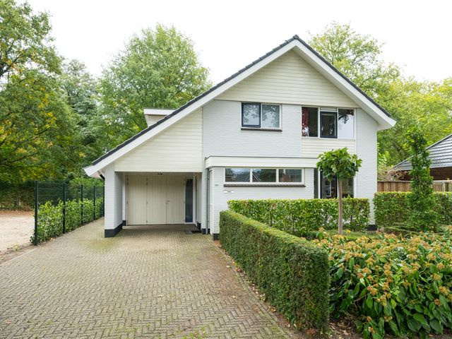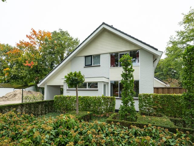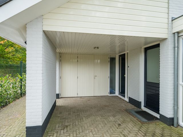 De woning beschikt aan de voorzijde over een royale oprit. Ook onder de carport of in de garage kan een auto gestald worden.