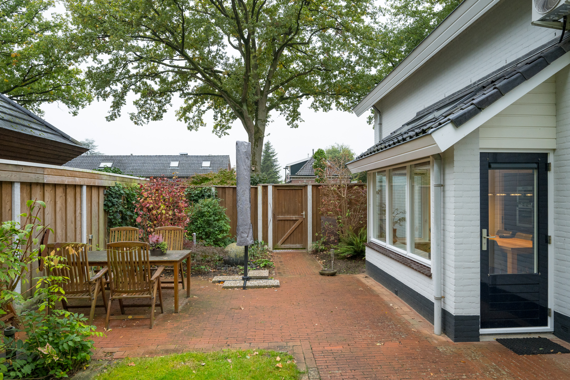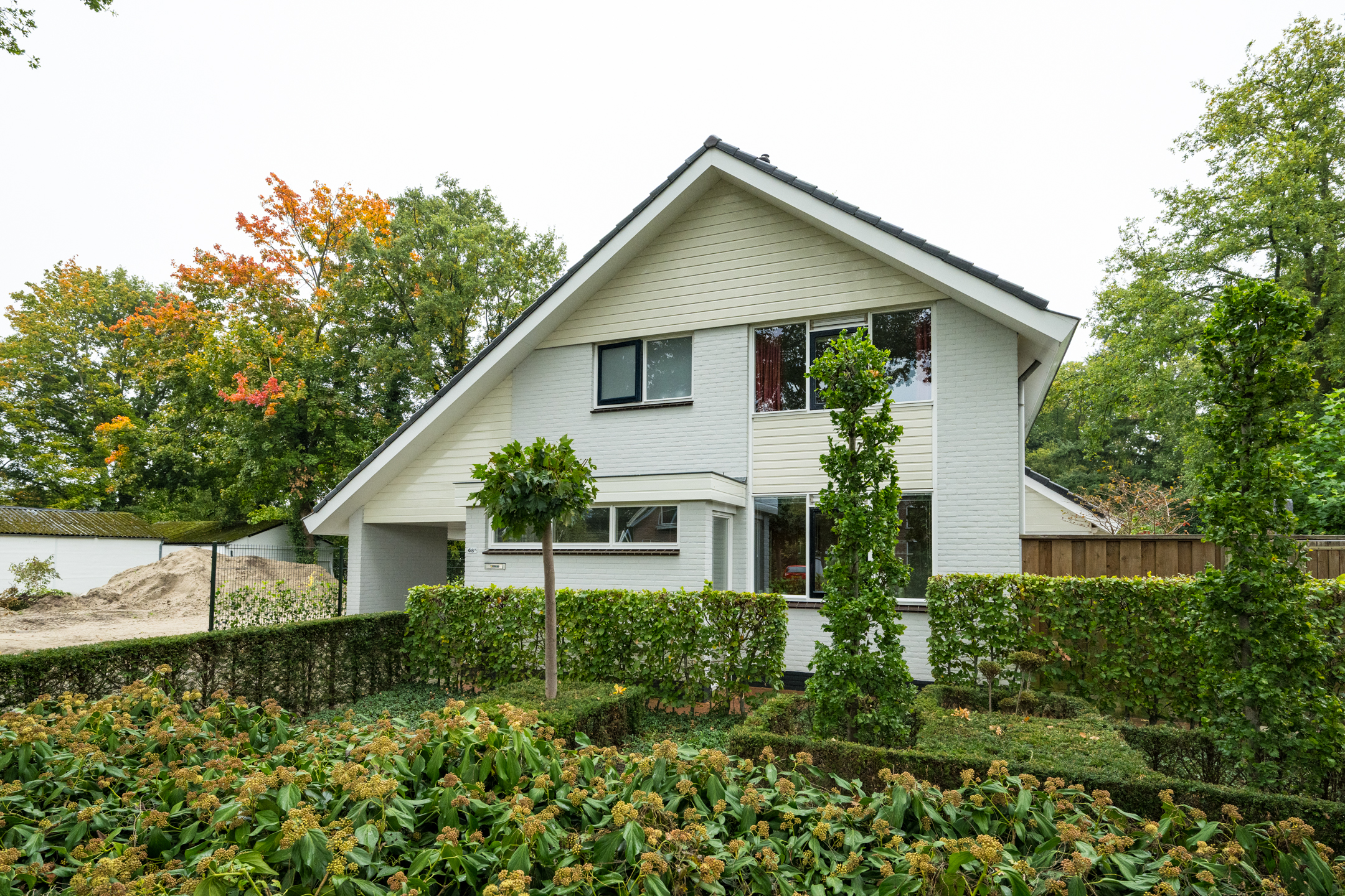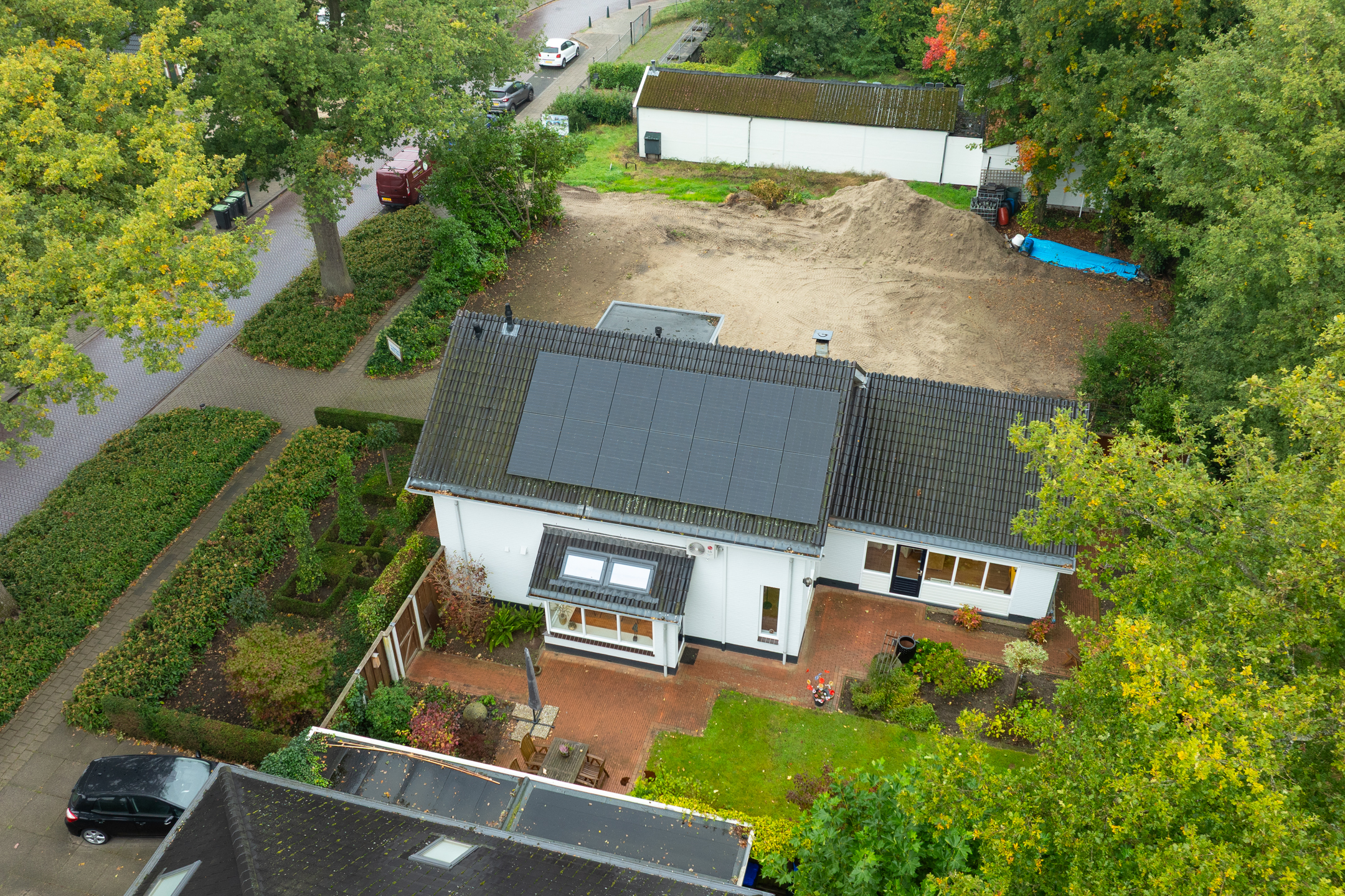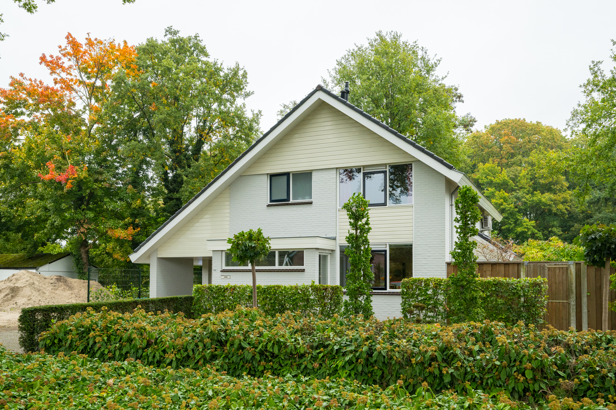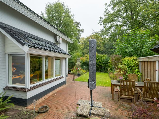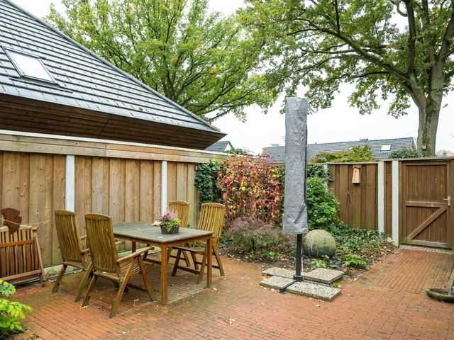 De woning beschikt aan de voorzijde over een royale oprit. Ook onder de carport of in de garage kan een auto gestald worden.