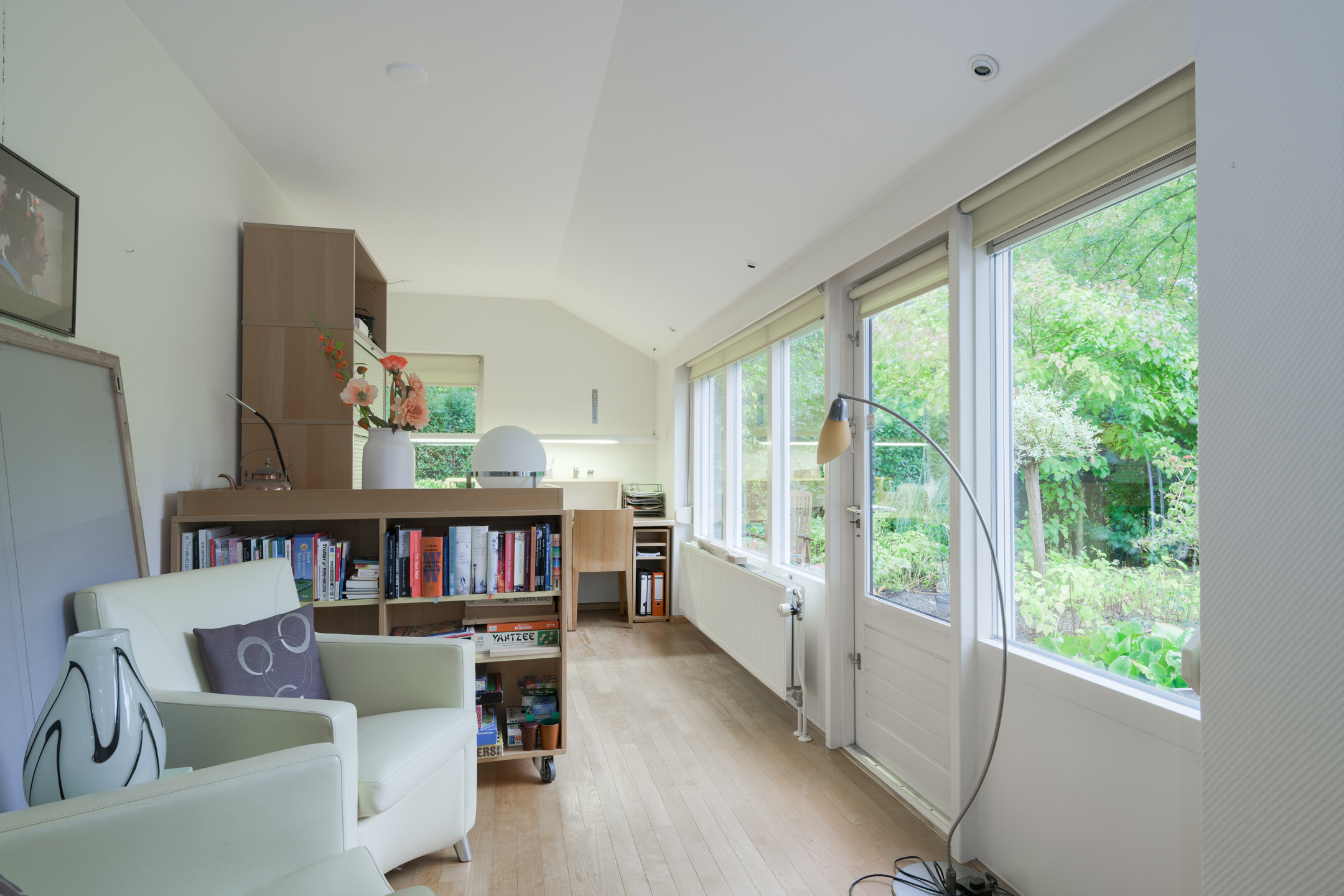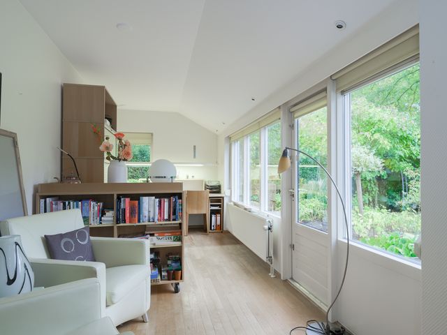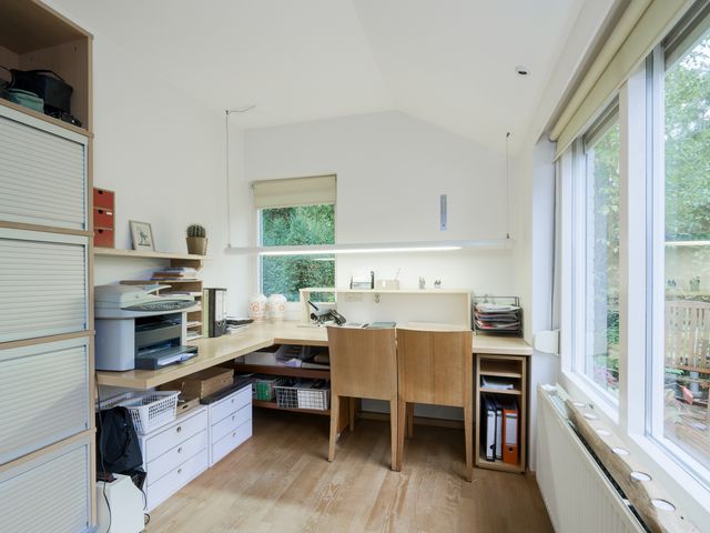 Aan de achterzijde van de woning bevindt zich een extra kamer, momenteel in gebruik als kantoor – ideaal voor thuiswerken, hobby- of speelkamer.