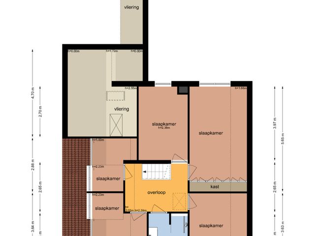 Via een luik en vlizotrap op de overloop is de grote vliering bereikbaar, waar ook de cv-ketel is opgesteld.