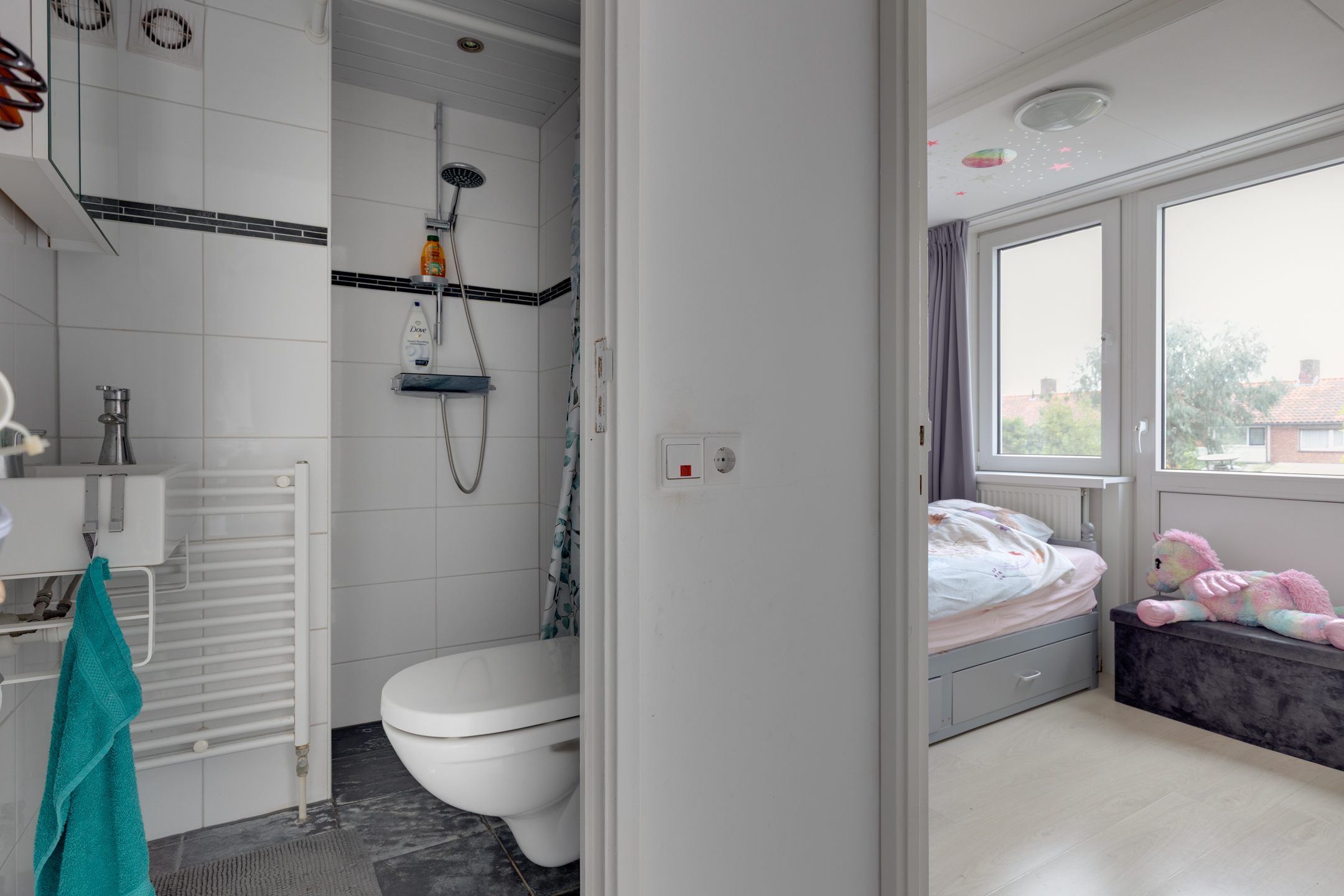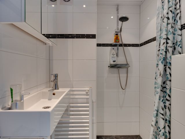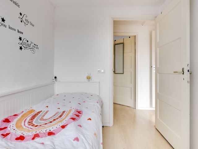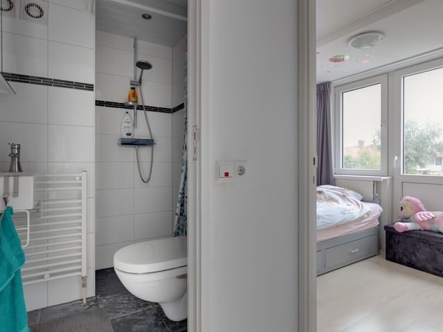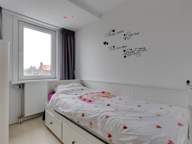 Eerste verdieping: Via de trap in de hal bereikt u de overloop die toegang biedt tot de 3 slaapkamers en de badkamer. De slaapkamer aan de voorzijde is voorzien van een dakkapel en vaste kastruimte. De slaapkamers aan de achterzijde zijn beide voorzien van een rolluik. Met een inloopdouche, wastafel, spiegelkast, wandcloset en designradiator biedt de badkamer alle voorzieningen voor dagelijks comfort.