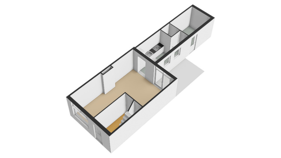 Begane grond: Entree/hal met trapopgang waaronder kelderkast en toegang tot de woonkamer. De L-vormige woonkamer biedt ruimte voor een zit- en eethoek en heeft openslaande deuren naar het overdekte terras. De aangrenzende halfopen keuken is voorzien van een inbouwkeuken met diverse apparatuur. Vanuit de keuken is er toegang tot de moderne toiletruimte met wandcloset en fonteintje en de bijkeuken met aansluiting voor wasmachine en -droger. De bijkeuken beschikt eveneens over een deur de achtertuin.