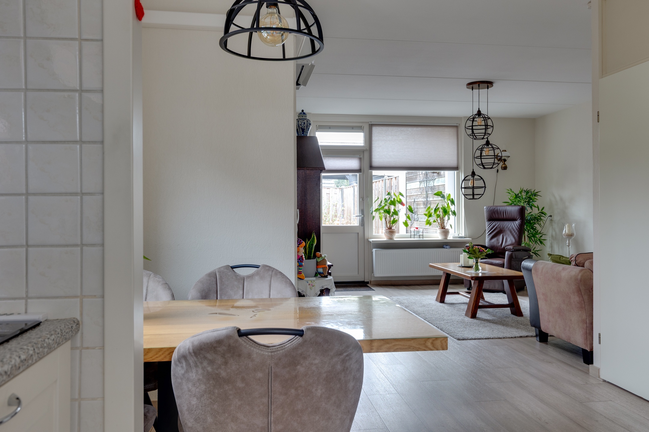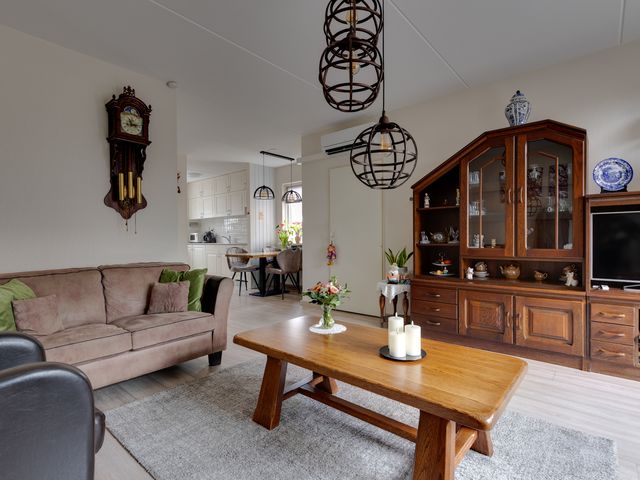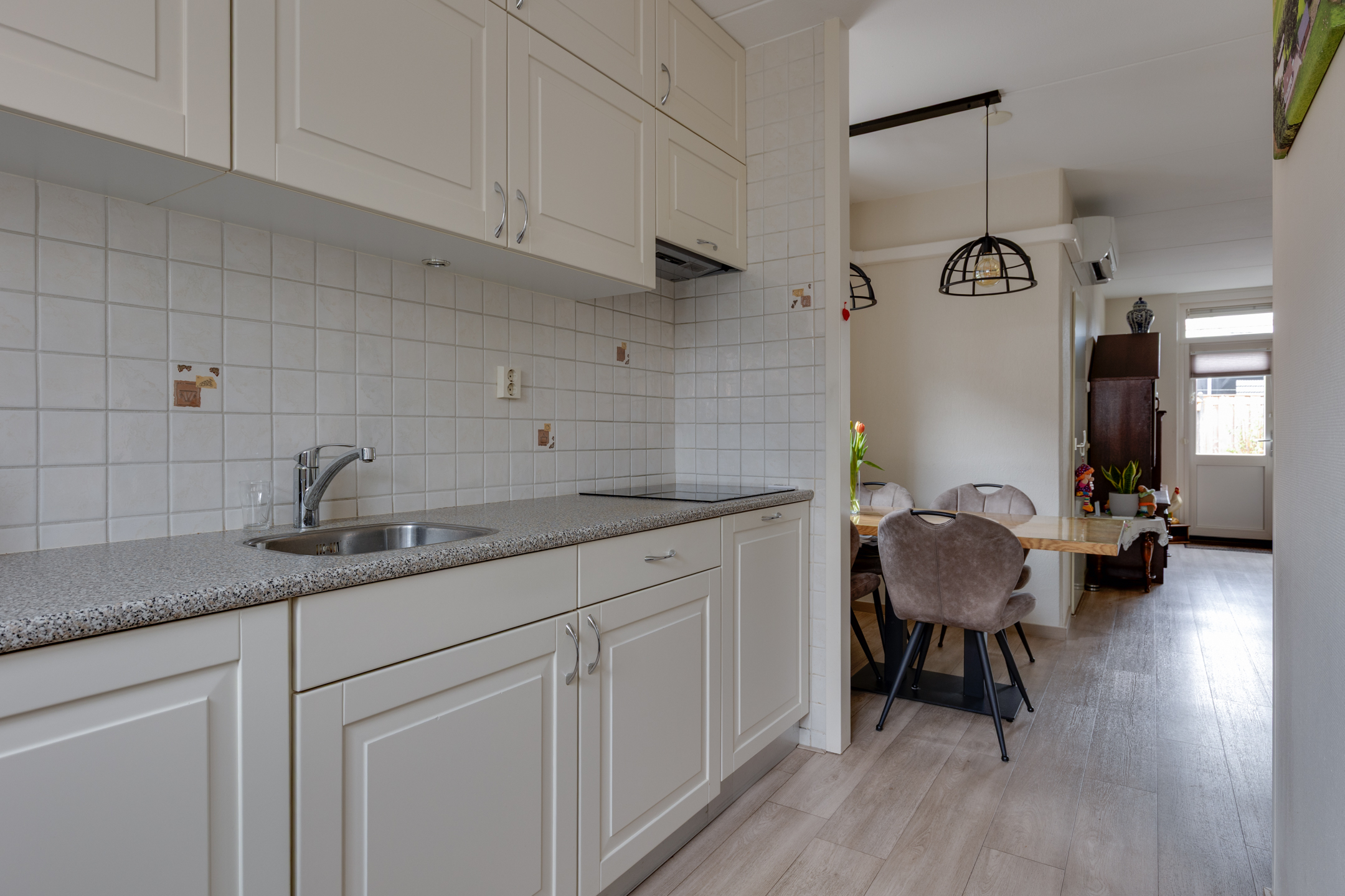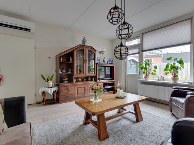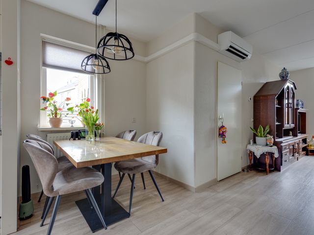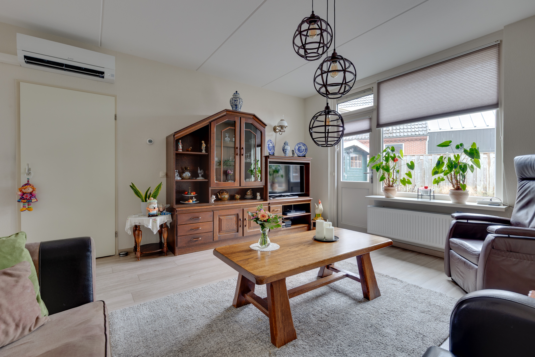 Begane grond: De entreedeur leidt naar een ruime hal, met een separate moderne toiletruimte, de meterkast en de trapopgang naar de eerste verdieping. Aan het uiteinde van de hal is er toegang tot de lichte woon-/eetkamer, afgewerkt met een keurige pvc-vloer. De woonkamer is voorzien van een airconditioning-unit (2023) die zowel kan koelen als verwarmen. Aan de voorzijde bevindt zich de open keuken die onder andere is voorzien van een moderne inductiekookplaat en een vaatwasser. De achterzijde van de woonkamer geeft via een deur toegang tot de zonnige achtertuin. Vanuit de woonkamer is ook de slaap- en badkamer op de begane grond bereikbaar, compleet met douche, wastafelmeubel en een tweede toilet. De woning is geheel voorzien van kunststof kozijnen en daarmee onderhoudsvrij.