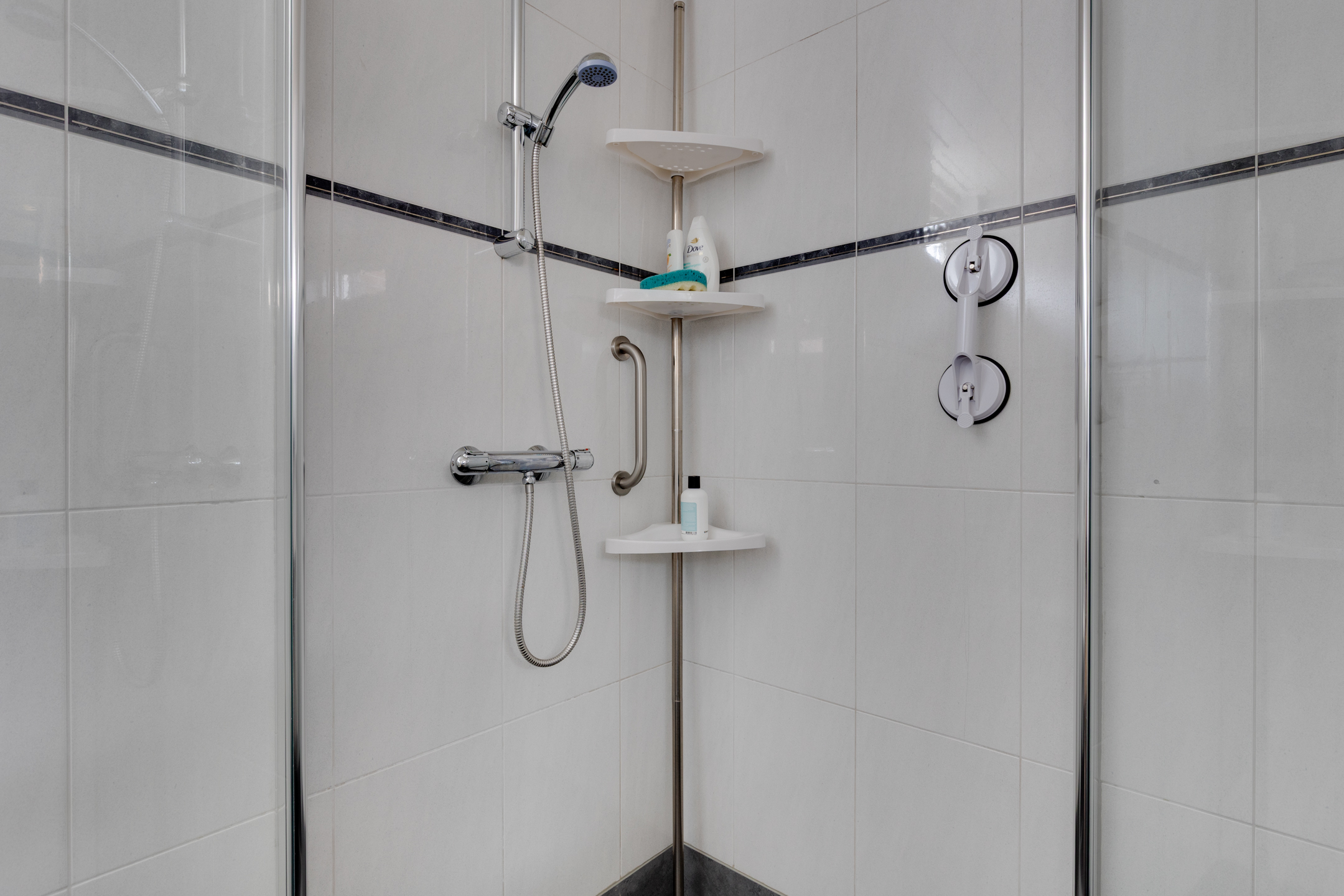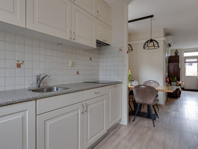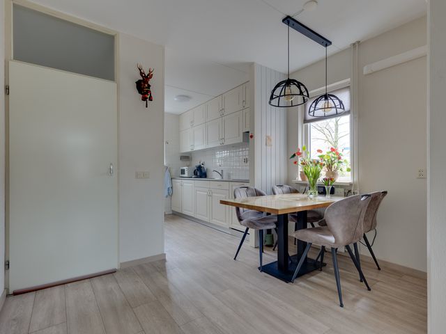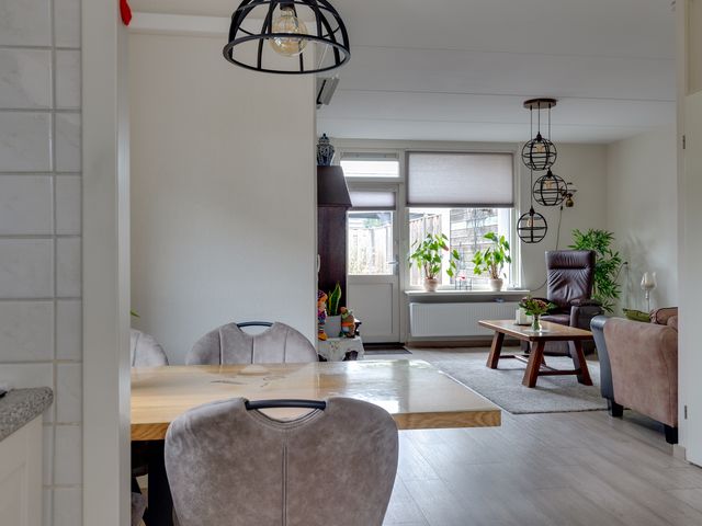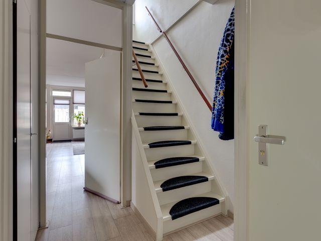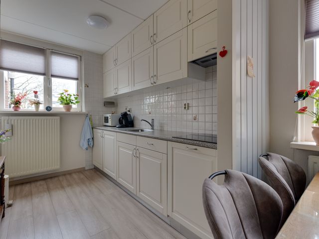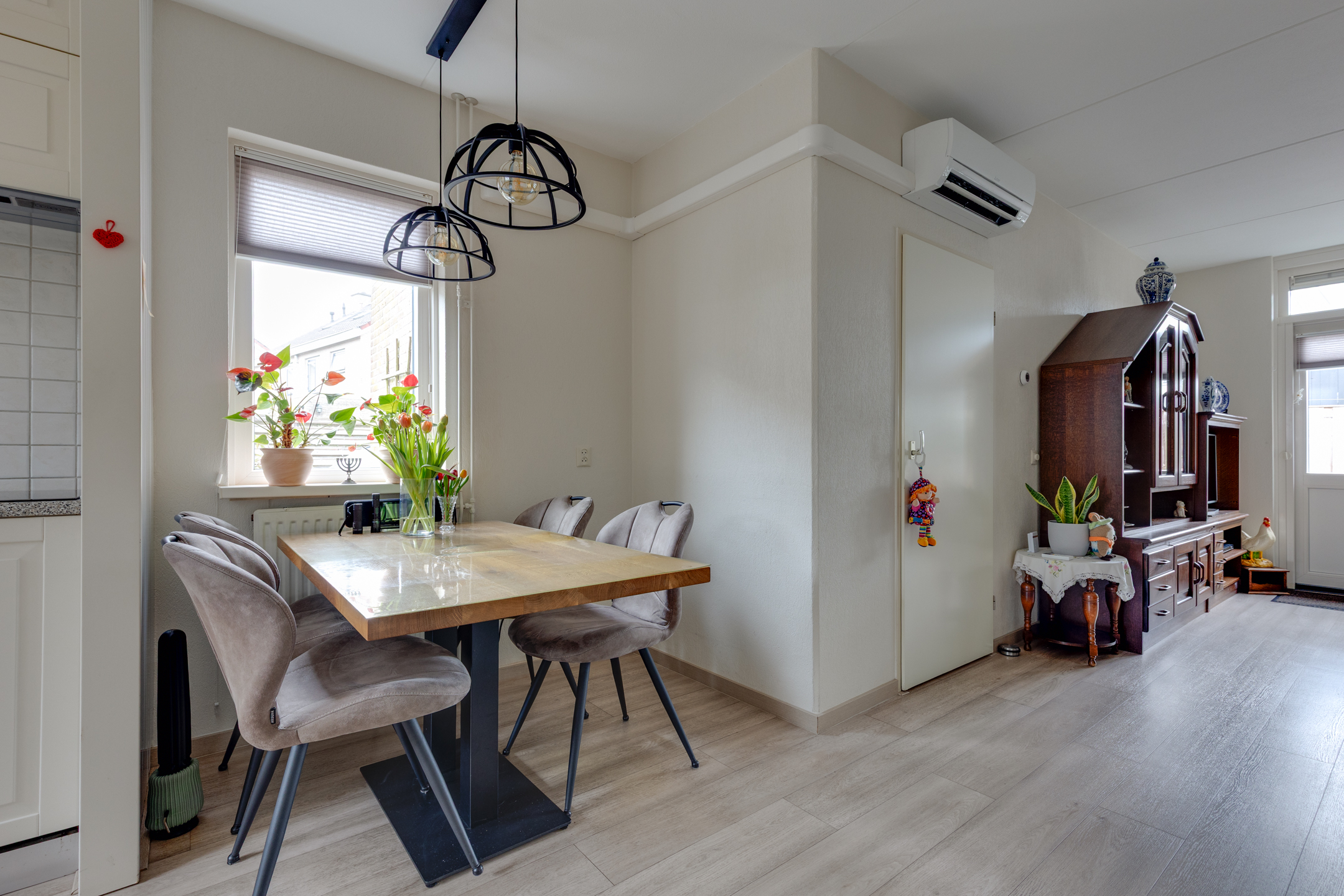 Begane grond: De entreedeur leidt naar een ruime hal, met een separate moderne toiletruimte, de meterkast en de trapopgang naar de eerste verdieping. Aan het uiteinde van de hal is er toegang tot de lichte woon-/eetkamer, afgewerkt met een keurige pvc-vloer. De woonkamer is voorzien van een airconditioning-unit (2023) die zowel kan koelen als verwarmen. Aan de voorzijde bevindt zich de open keuken die onder andere is voorzien van een moderne inductiekookplaat en een vaatwasser. De achterzijde van de woonkamer geeft via een deur toegang tot de zonnige achtertuin. Vanuit de woonkamer is ook de slaap- en badkamer op de begane grond bereikbaar, compleet met douche, wastafelmeubel en een tweede toilet. De woning is geheel voorzien van kunststof kozijnen en daarmee onderhoudsvrij.