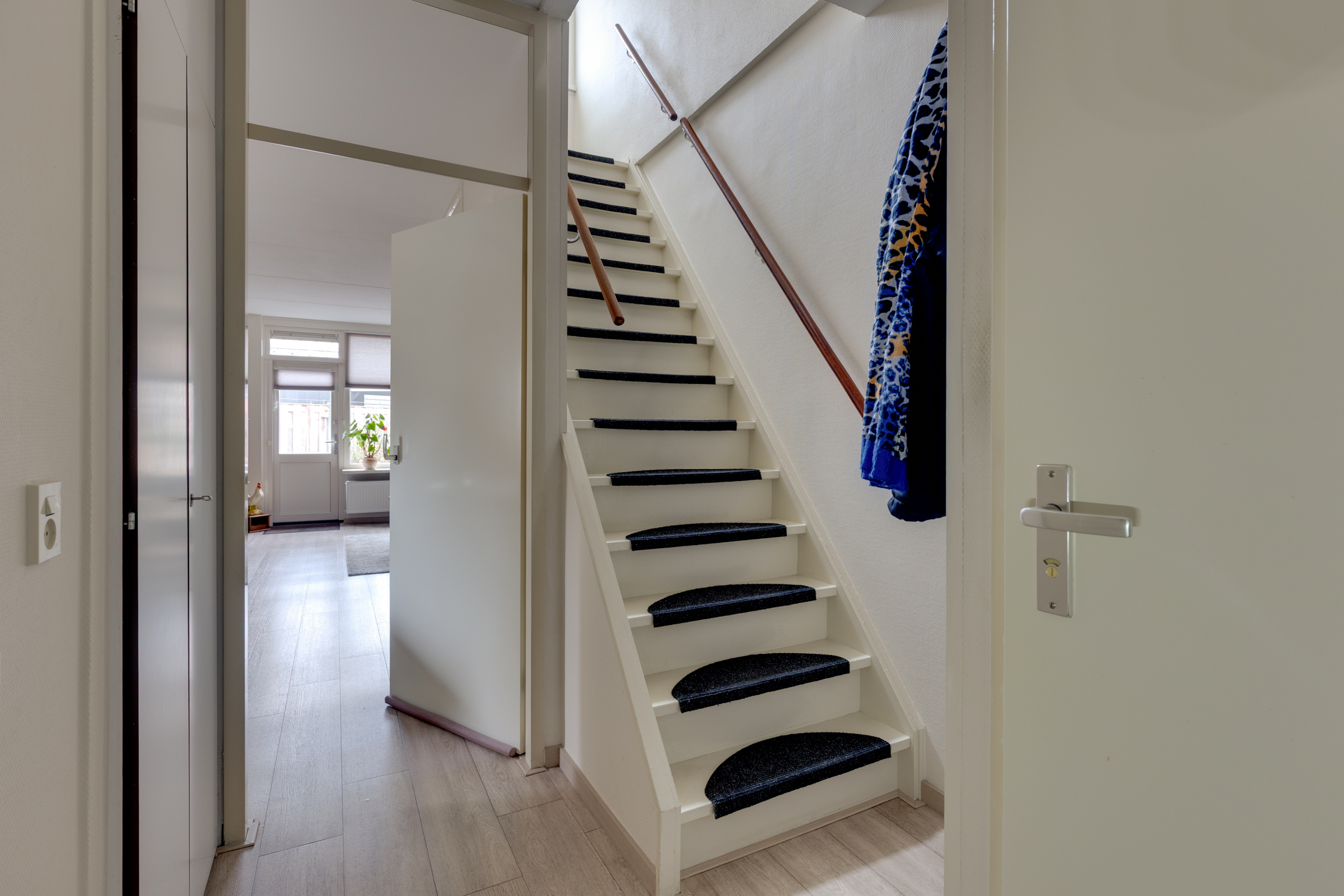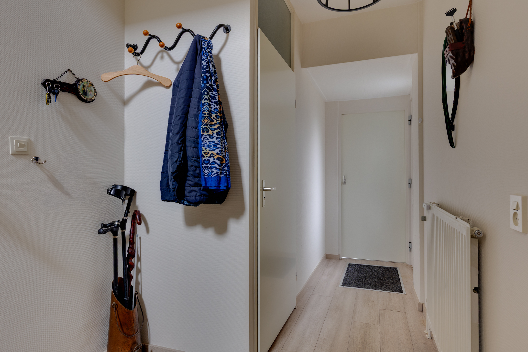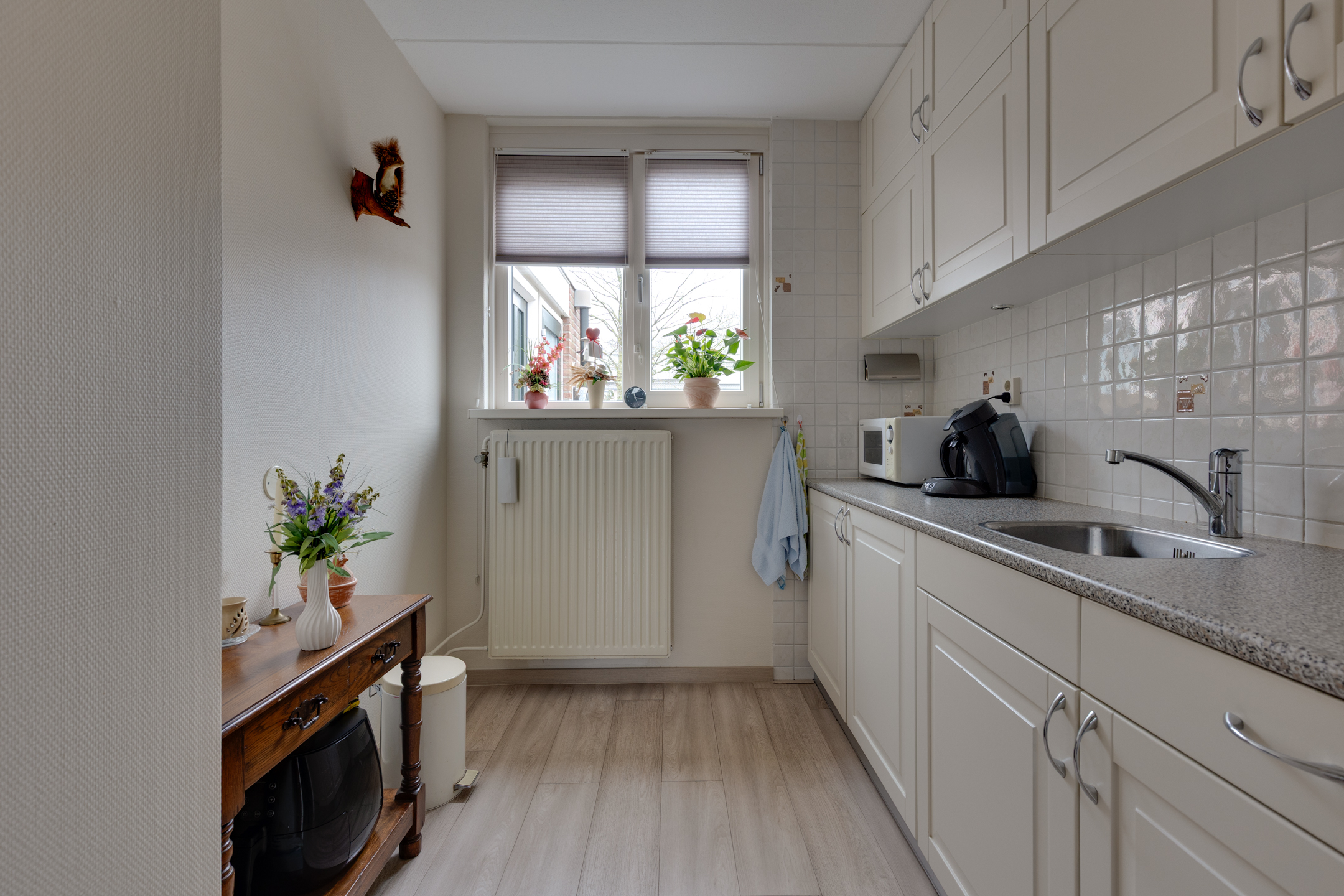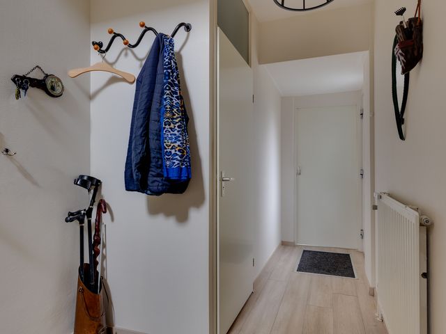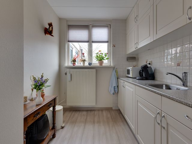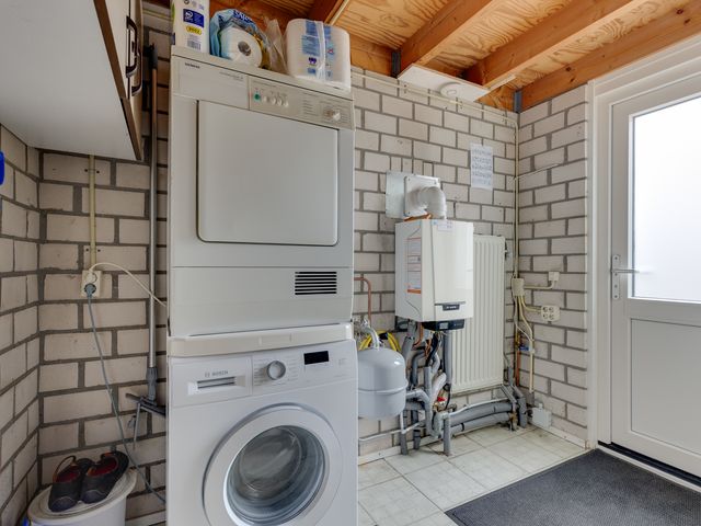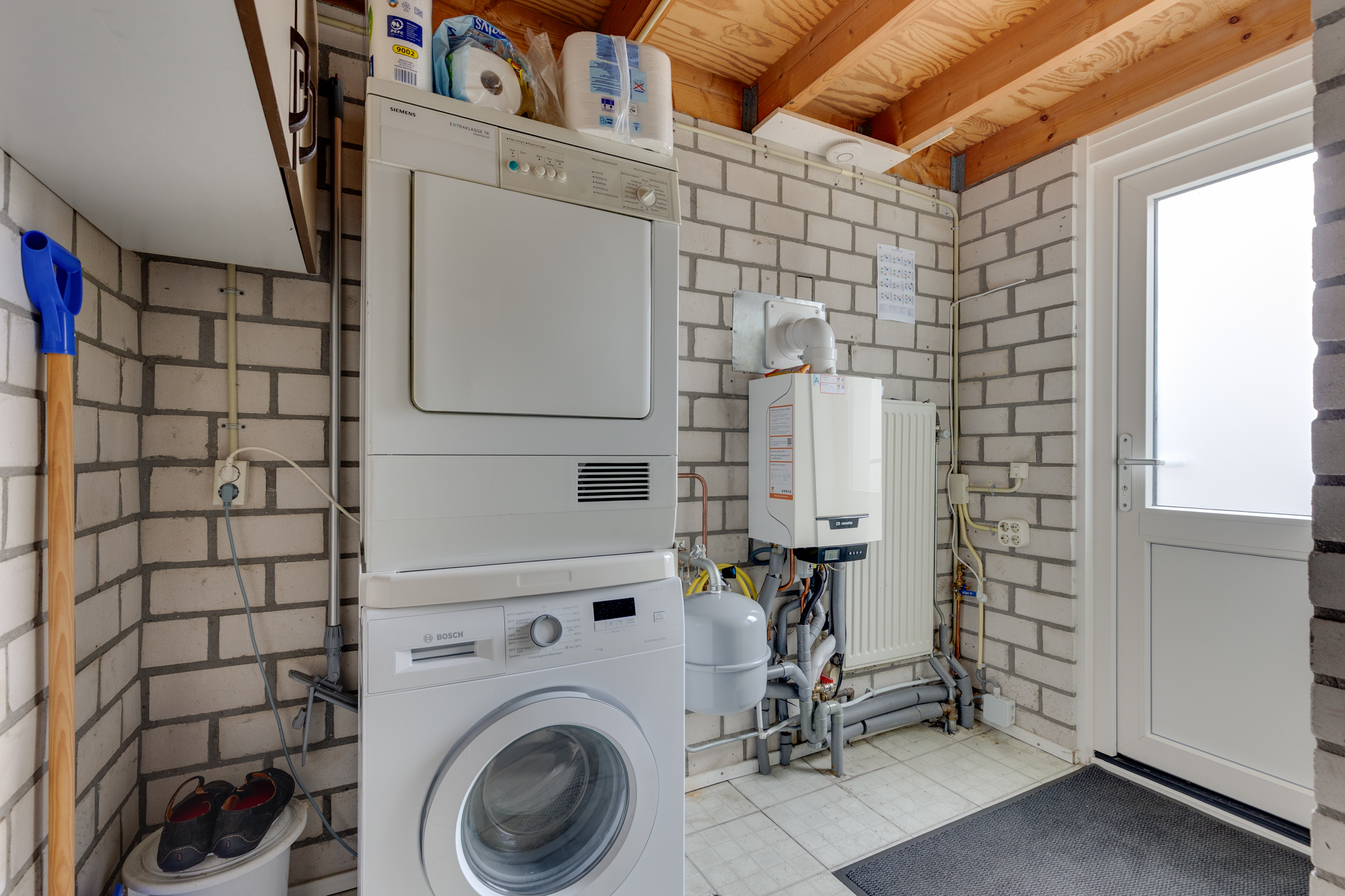 Naast de entreedeur ligt de aangebouwde bijkeuken, voorzien van de cv-opstelling en aansluitingen voor wasmachine en droger. Deze bijkeuken is ook rechtstreeks vanaf de hal bereikbaar.