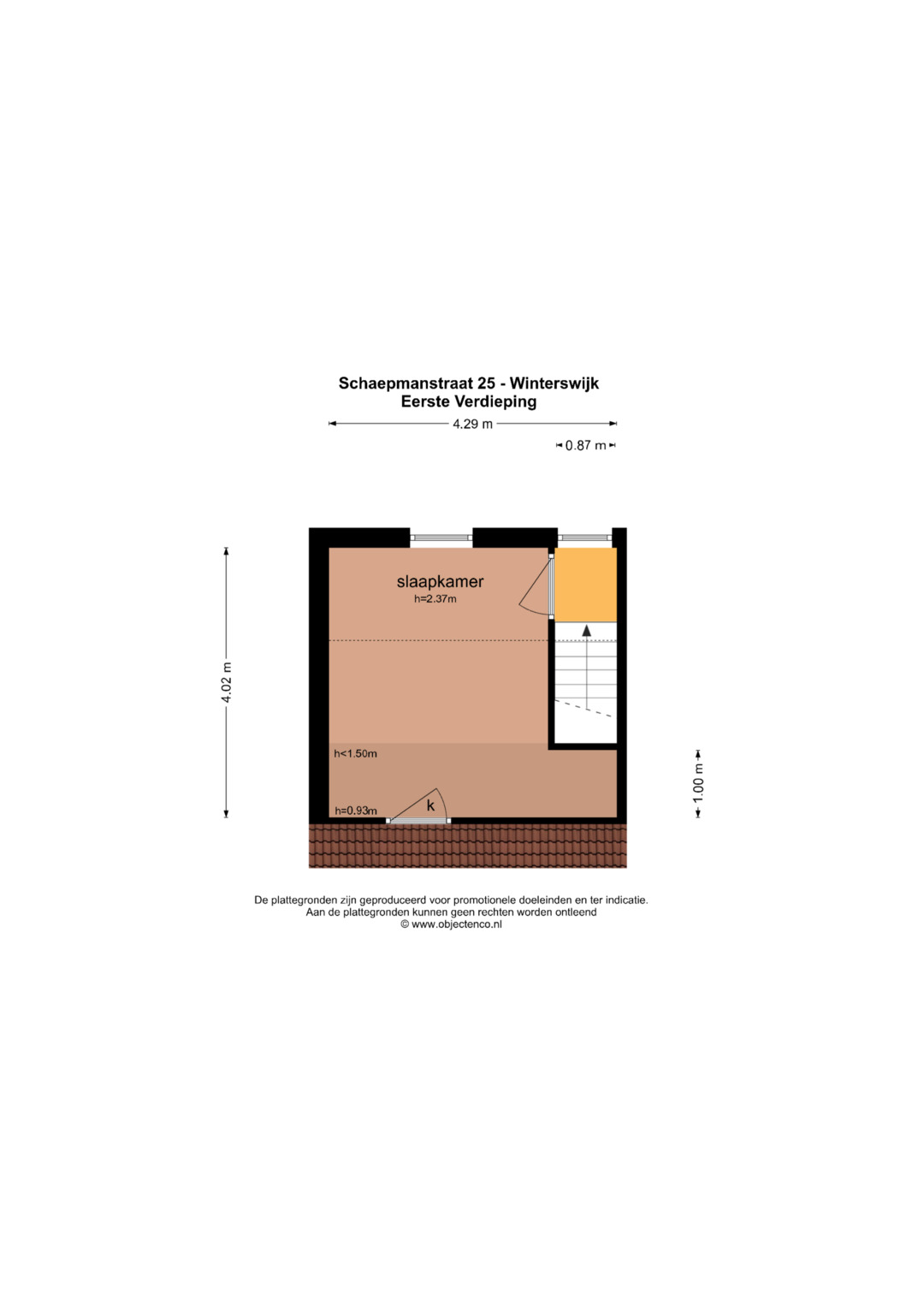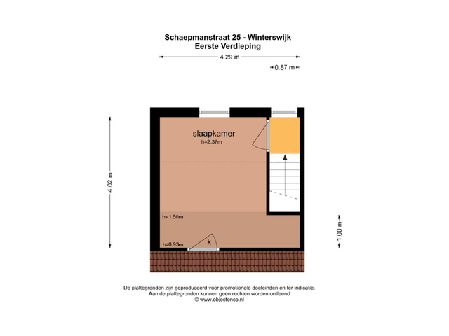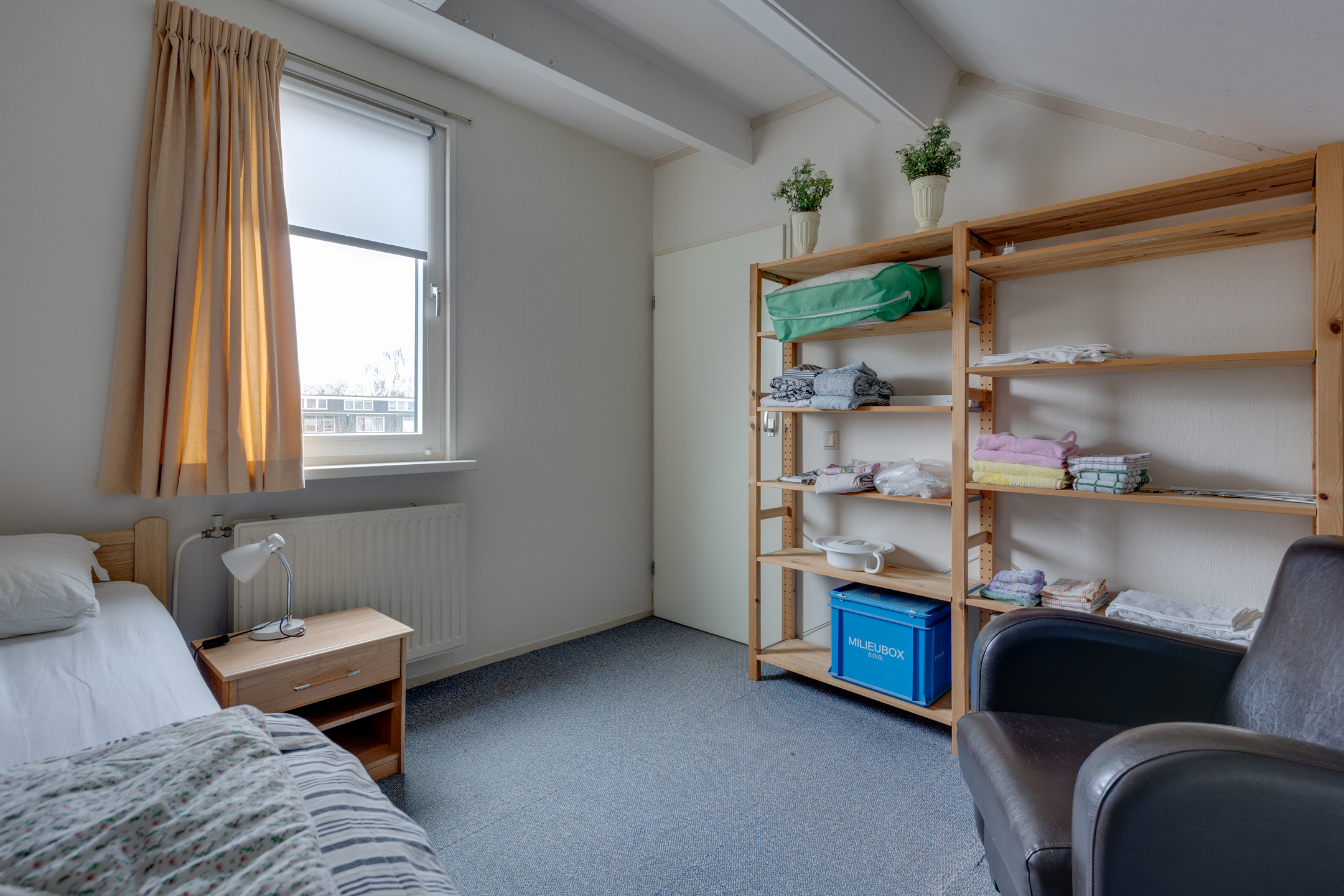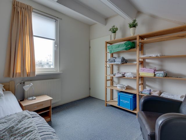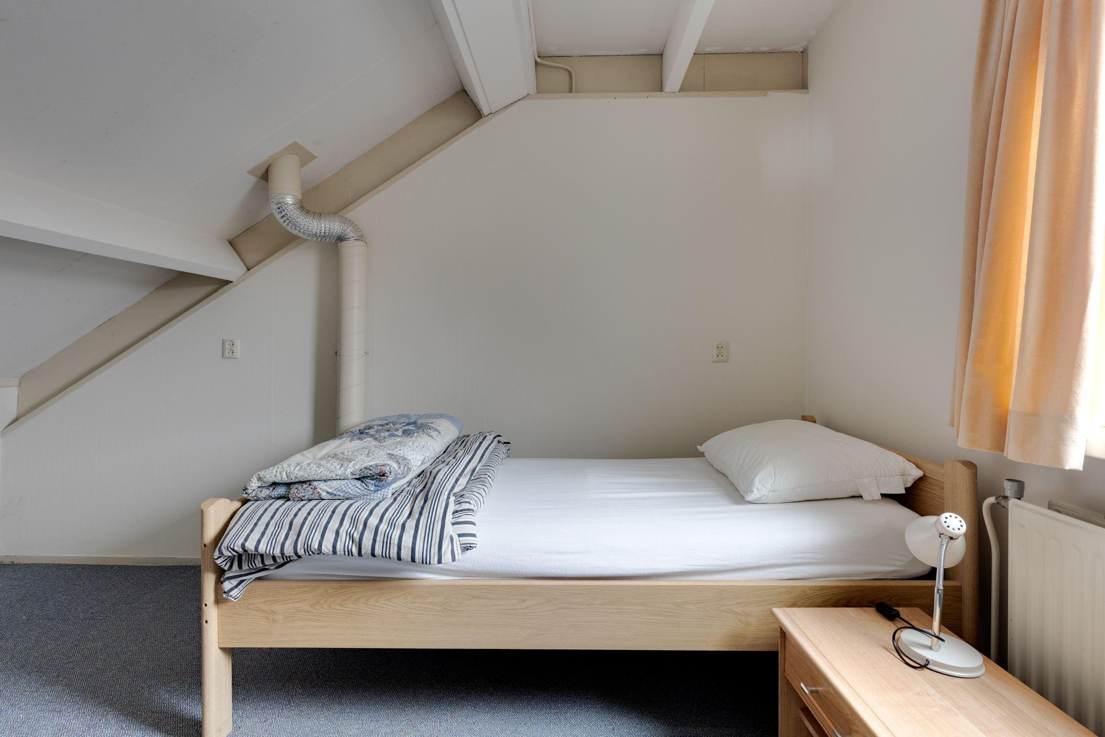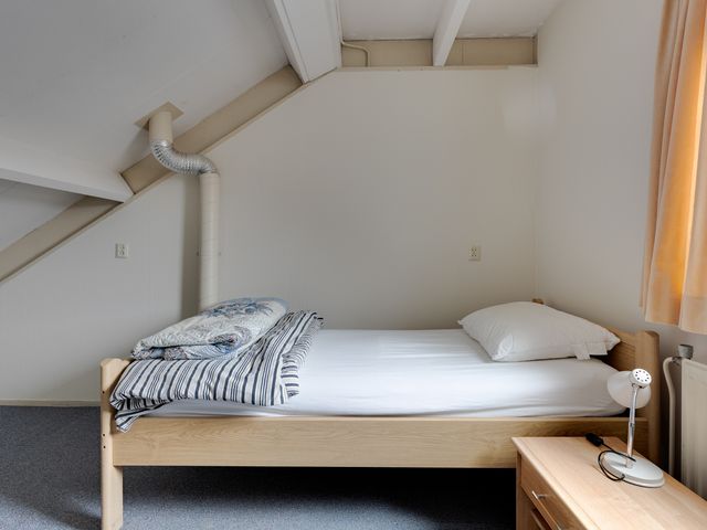 Eerste verdieping: Via de vaste trap is de overloop bereikbaar met een deur naar de slaapkamer. Deze kamer is ook uitstekend te gebruiken als hobbyruimte, werkkamer of logeerkamer.