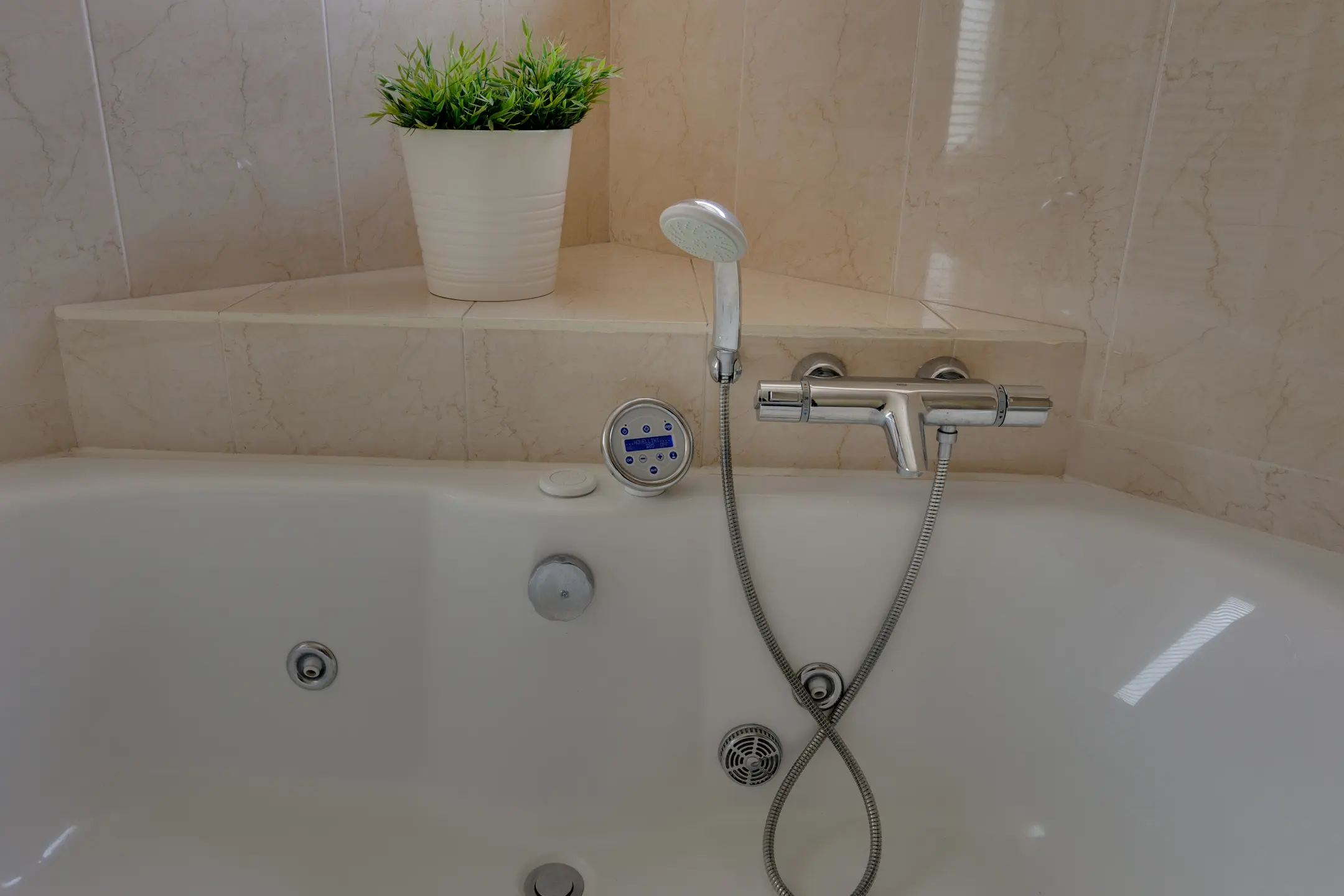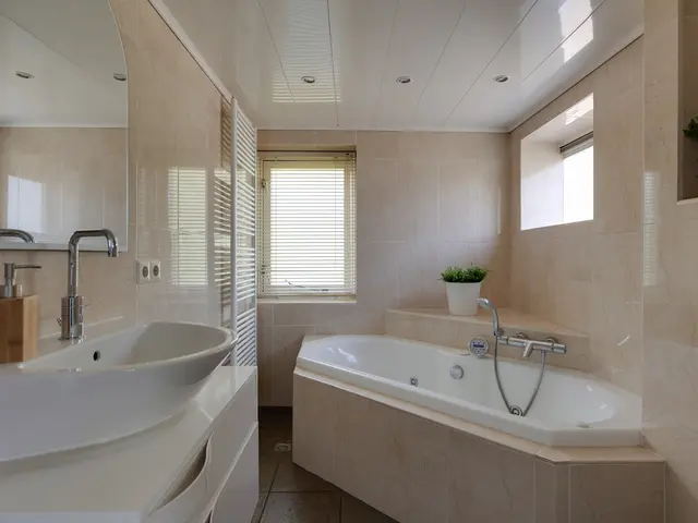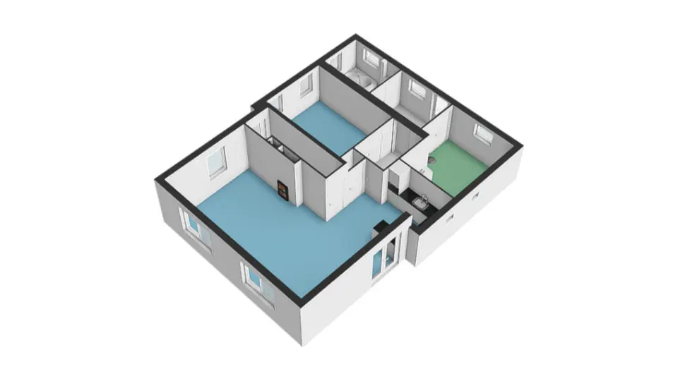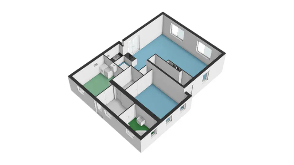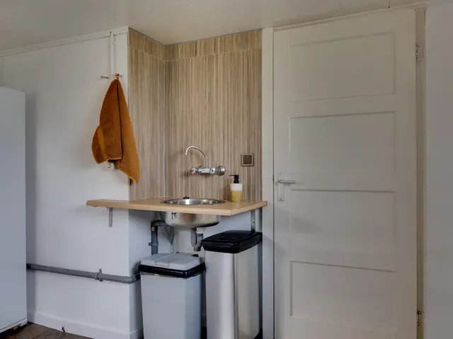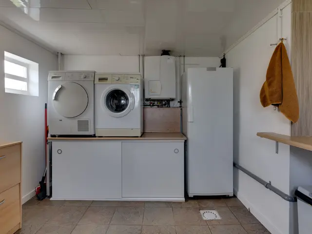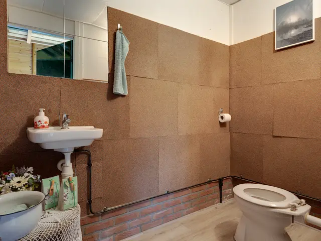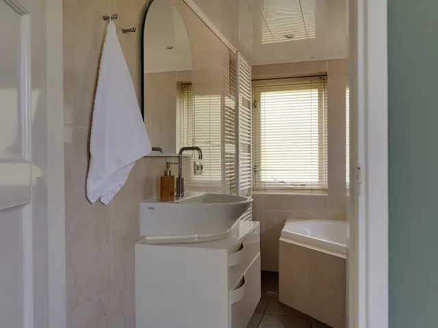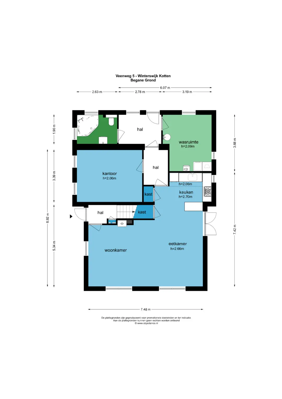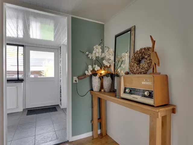 Via een tussendeur bereikt u de tussenhal, die toegang biedt tot een kantoorruimte. Deze ruimte is tevens uitstekend geschikt als slaapkamer op de begane grond. Vanuit de hal bereikt u de goed onderhouden badkamer, voorzien van een ligbad, toilet, handdoekradiator en wastafelmeubel. Aan de andere zijde van de hal bevindt zich de wasruimte met aansluitingen voor wasmachine en droger. Hier zijn tevens de cv-ketel en een praktische wastafel.