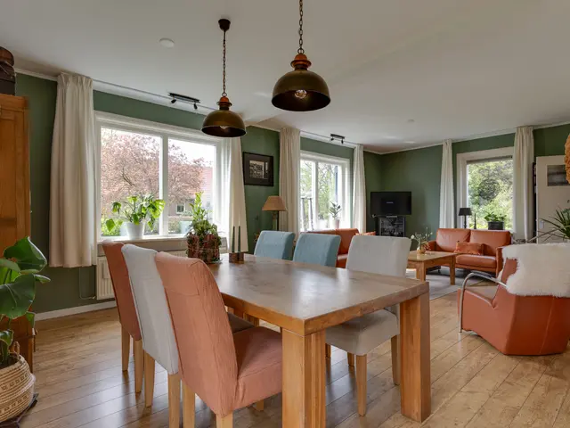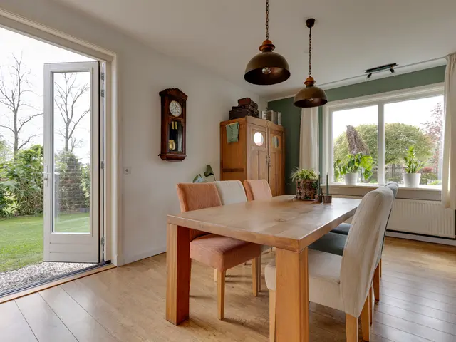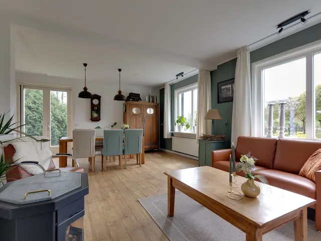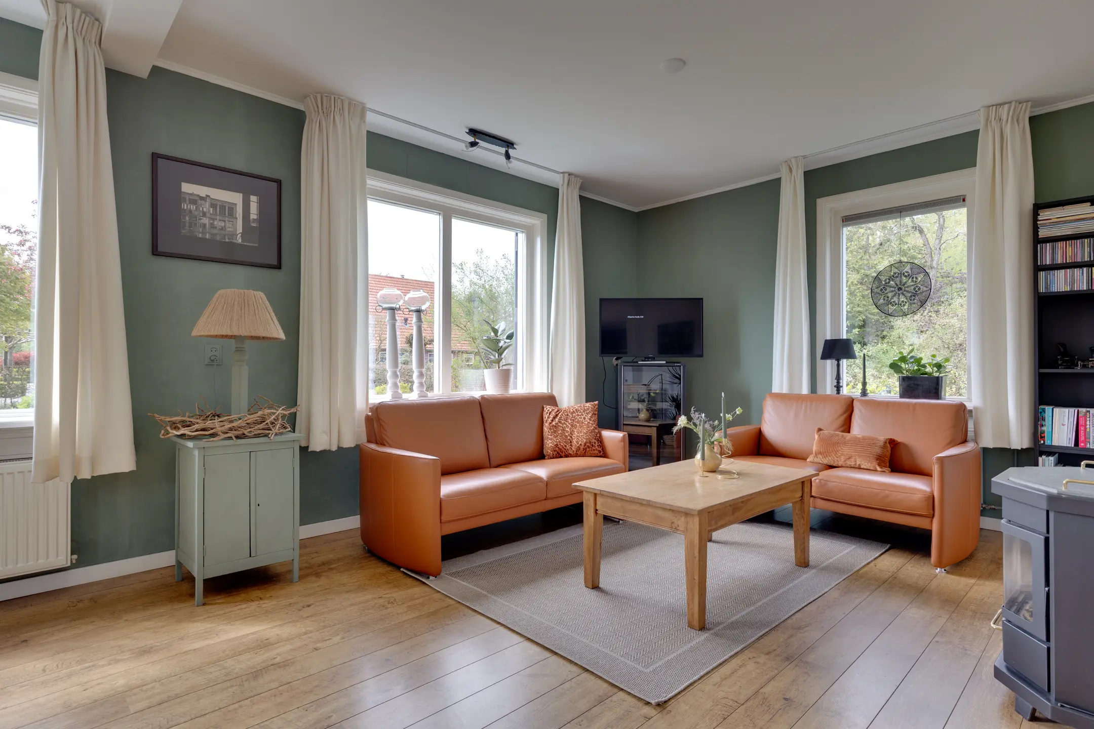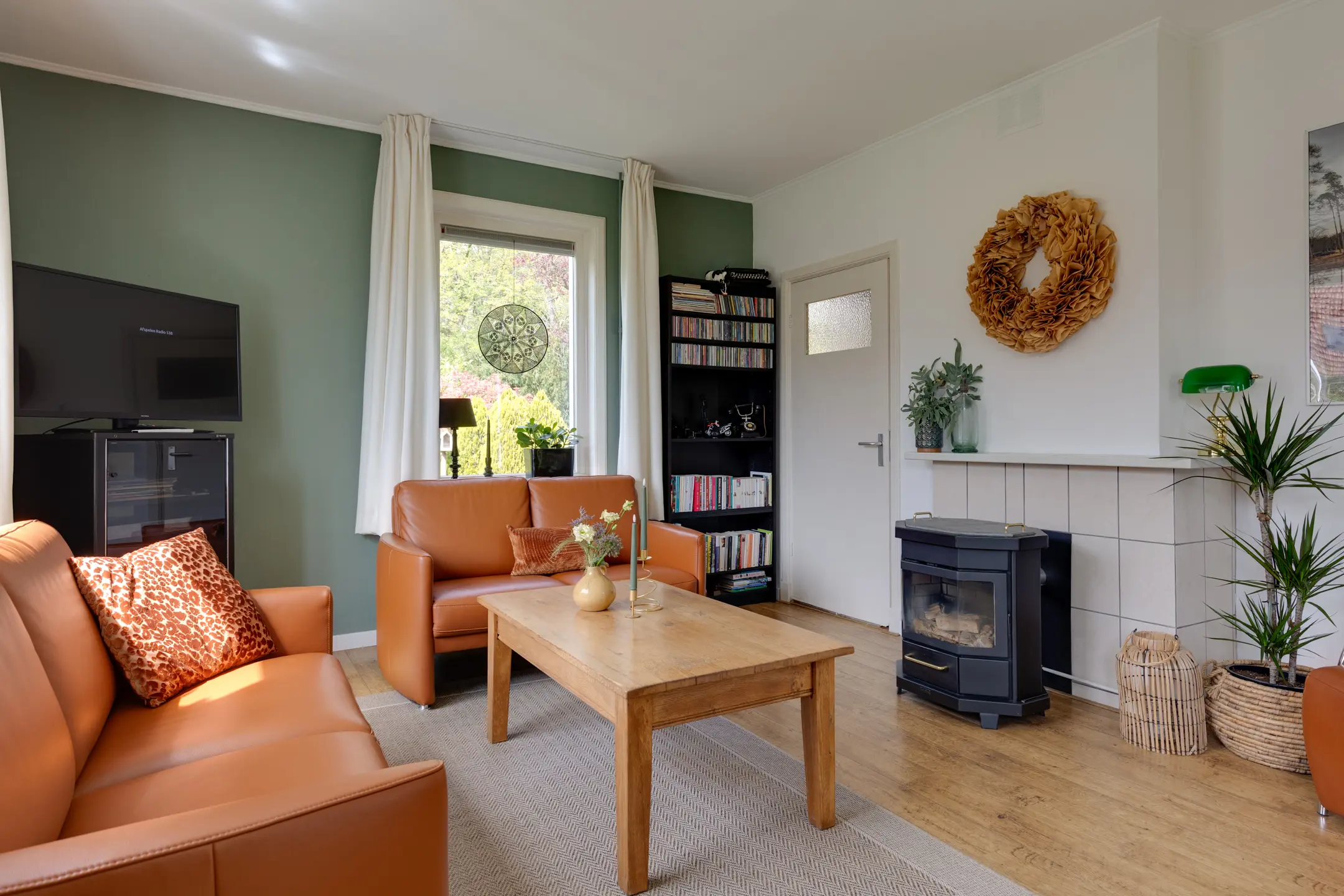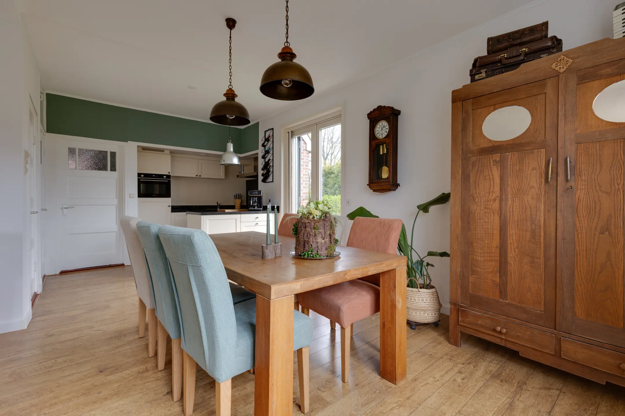 Binnenkomst via de voordeur in de hal met meterkast en trapopgang naar de eerste verdieping. Vanuit de hal is er toegang tot de L-vormige woon- en eetkamer. Dankzij de raampartijen aan meerdere zijden geniet de woonkamer van veel natuurlijk licht. De ruimte is voorzien van een sfeervolle gaskachel en openslaande deuren naar de tuin.
