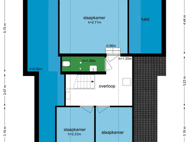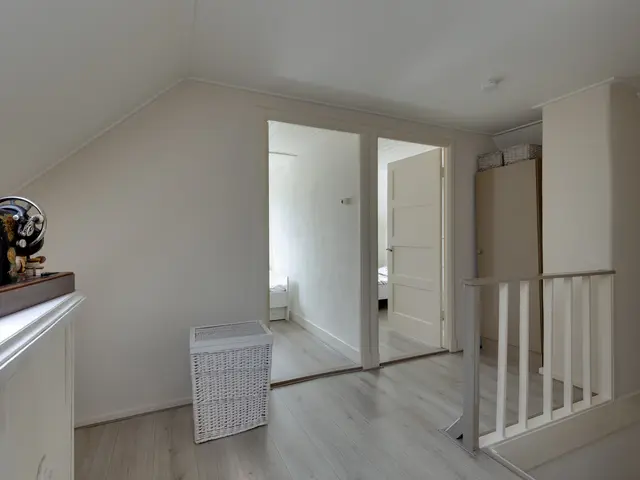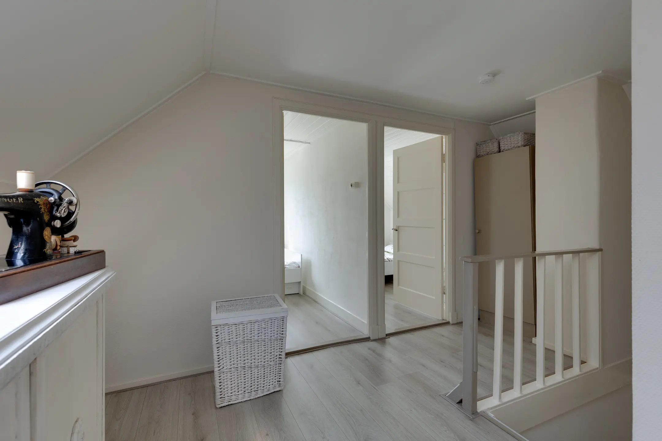 Ruime overloop met toegang tot de tweede badkamer, voorzien van een douche, tweede toilet en wastafel. Daarnaast zijn er drie slaapkamers, waarvan twee aan de voorzijde en één ruime slaapkamer aan de achterzijde. De grote slaapkamer heeft toegang tot 2 ruime kastruimtes.