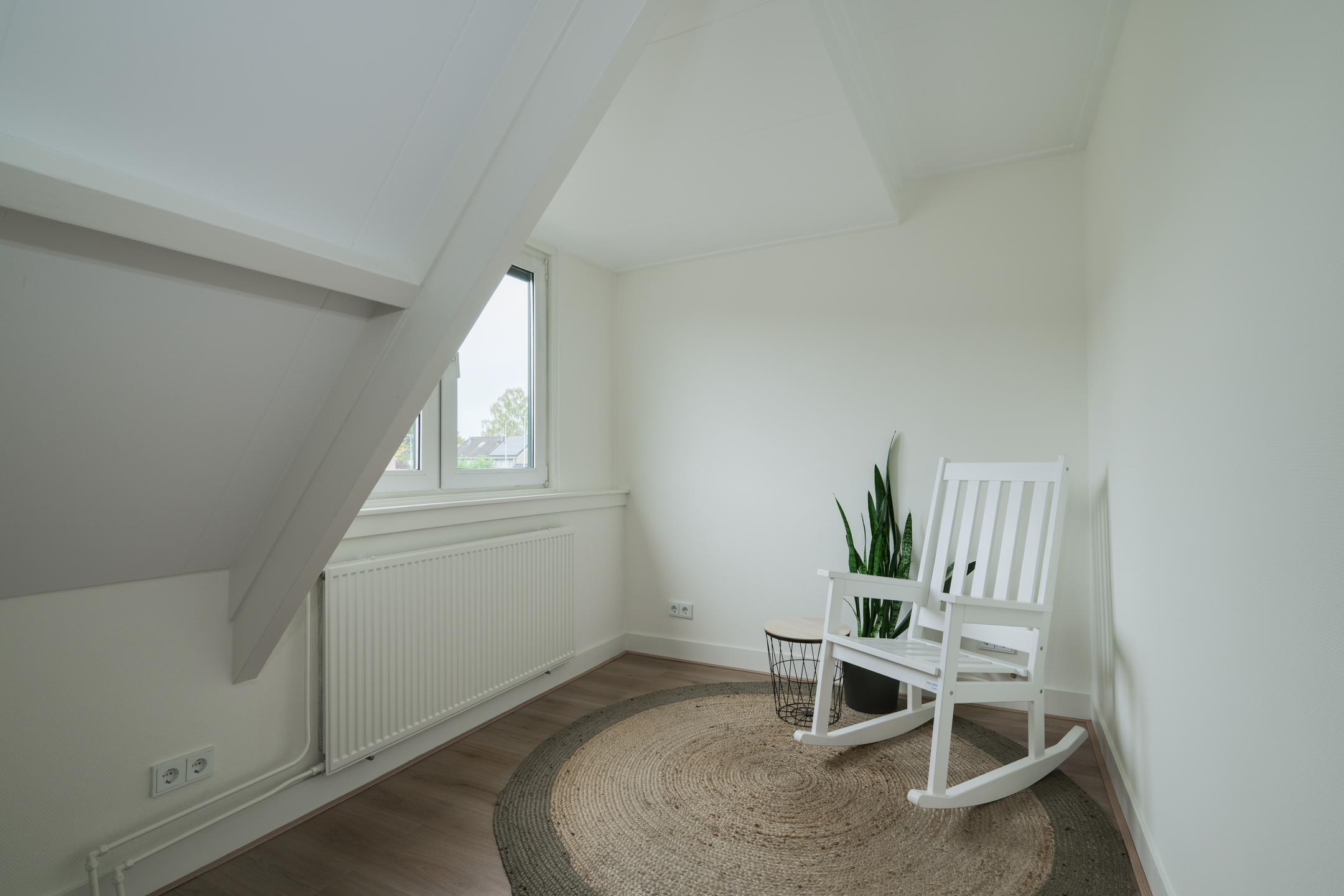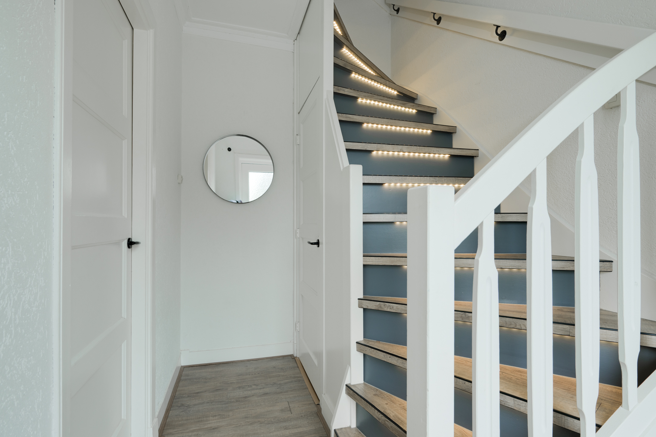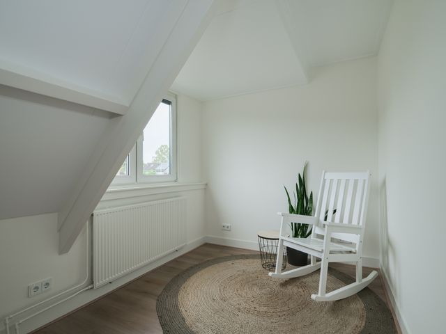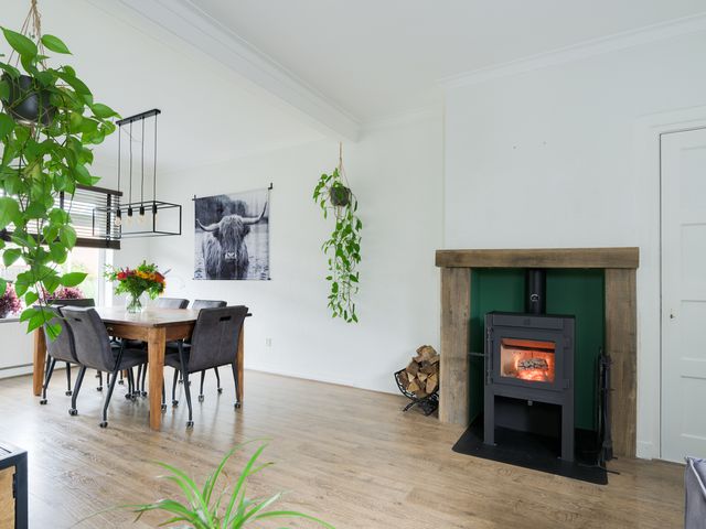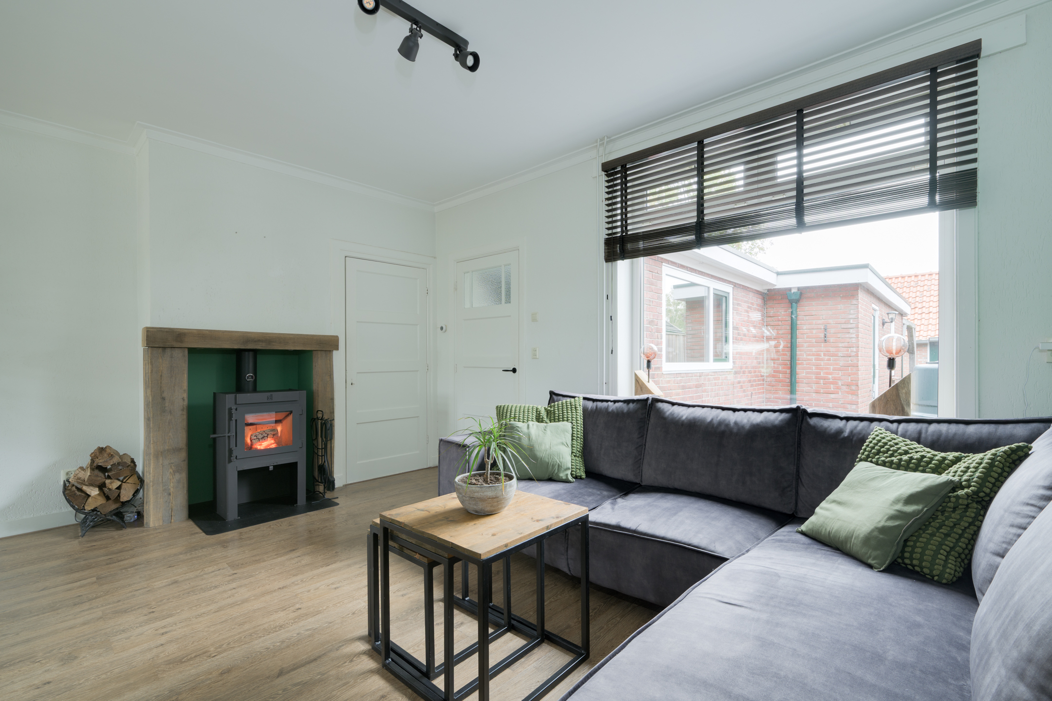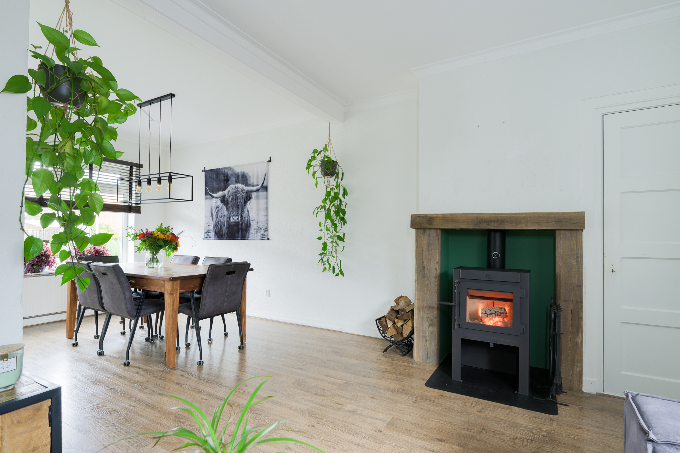 Begane grond: De woning is modern afgewerkt en verwelkomt u met een entreehal voorzien van meterkast, trapkast en trapopgang naar de eerste verdieping, waarbij de ingebouwde trapverlichting direct een stijlvolle indruk geeft. Vanuit de hal bereikt u de lichte L-vormige woon-/eetkamer met een sfeervolle houtkachel, veel natuurlijk licht aan zowel de voor- als achterzijde en een inbouwkast. Aansluitend bevindt zich de keuken, voorzien van inbouwapparatuur. De aangrenzende bijkeuken beschikt over een wastafel, toiletruimte, verhoogd plateau voor wasmachine en droger en een doorgang naar de achtertuin. Vanuit de bijkeuken is tevens de badkamer bereikbaar, uitgerust met douche, ligbad, wastafel en een tweede toilet. Zowel de bijkeuken als de badkamer worden verwarmd middels vloerverwarming.