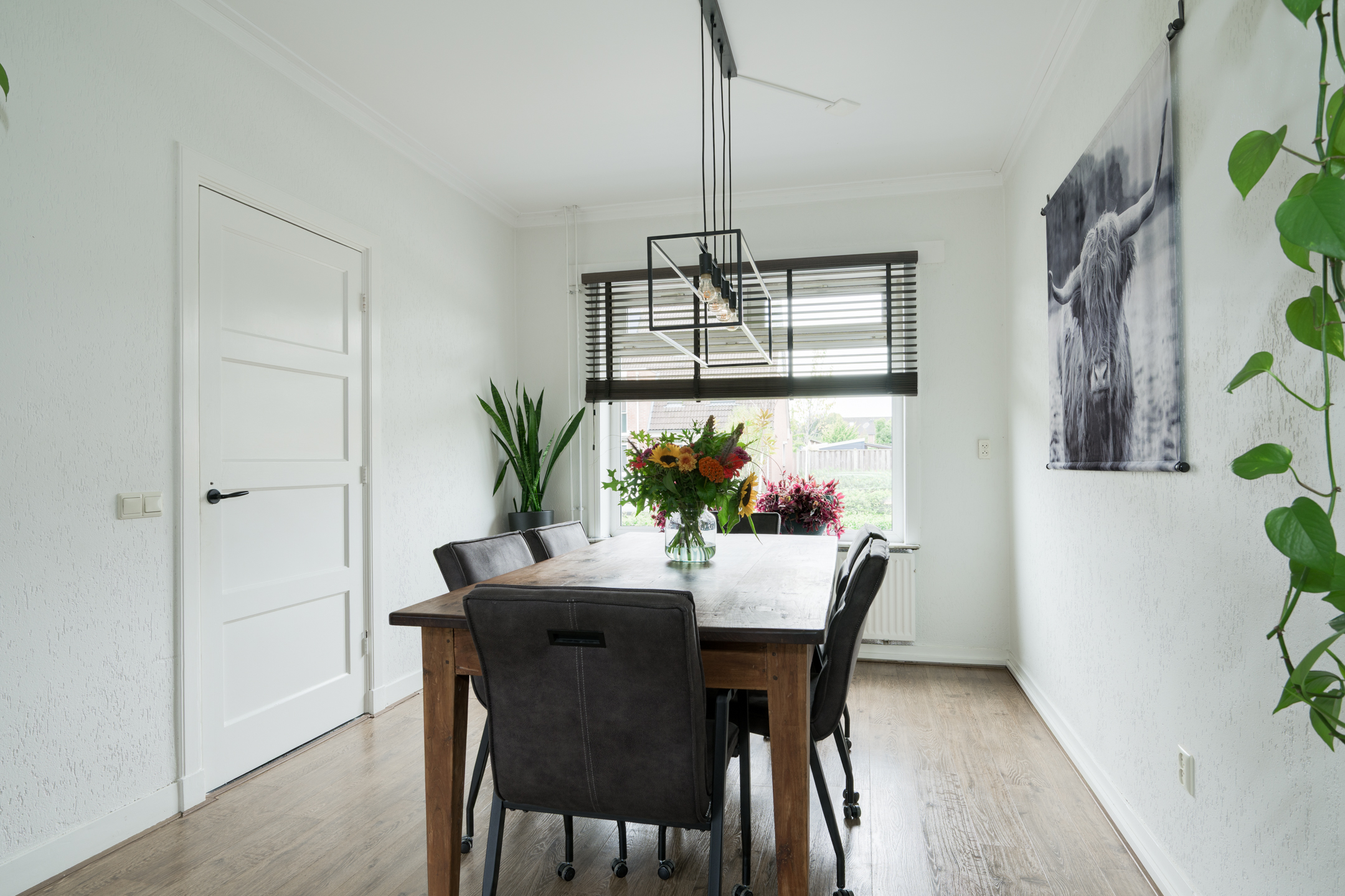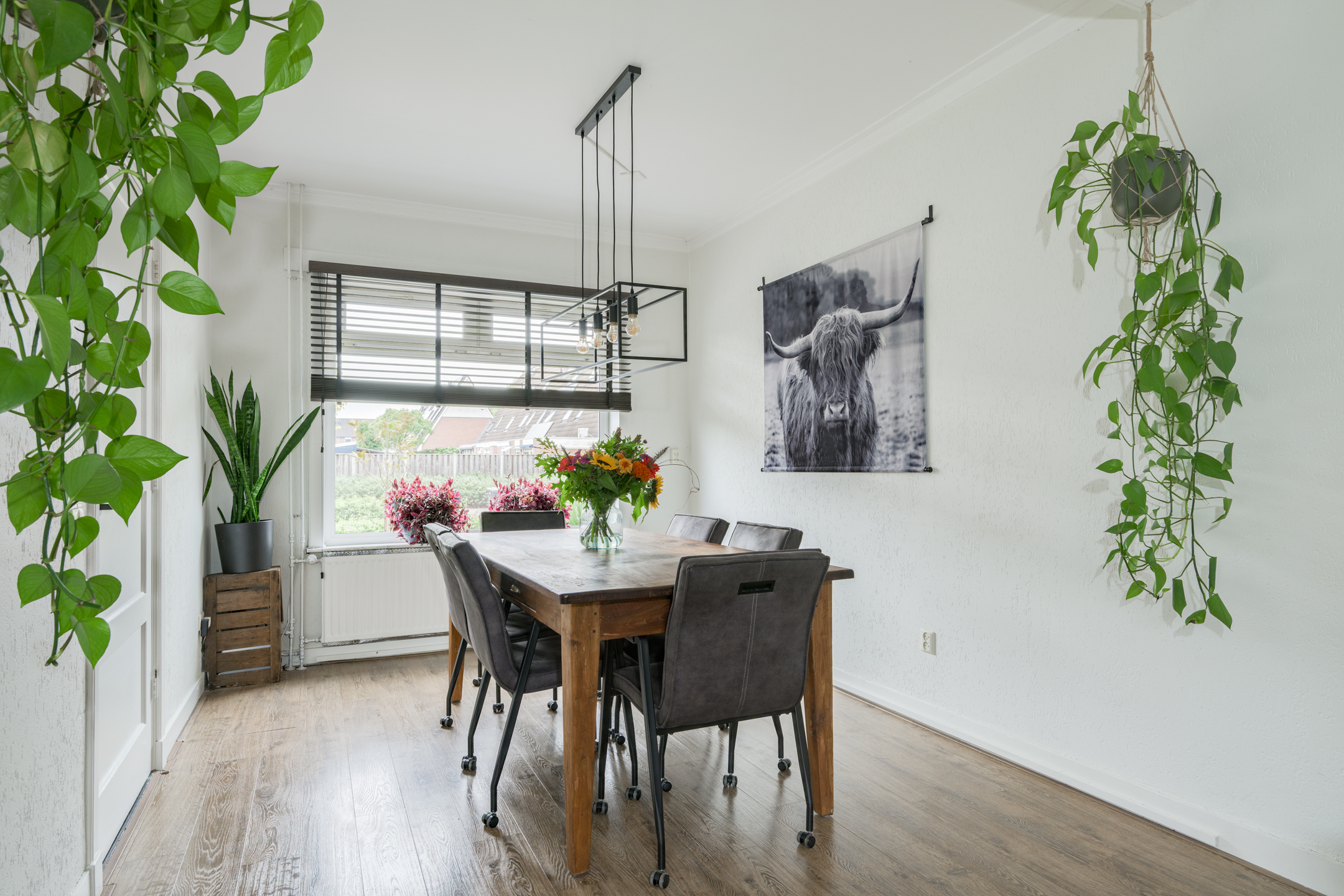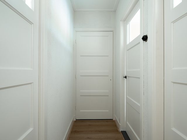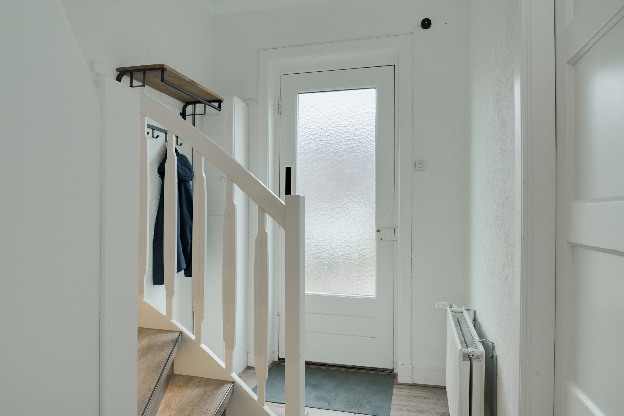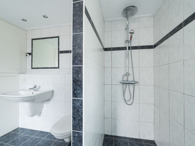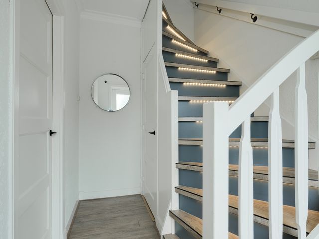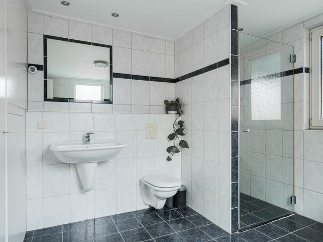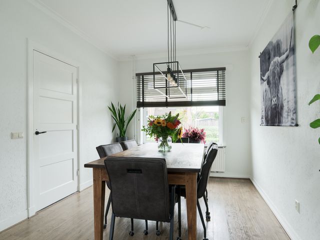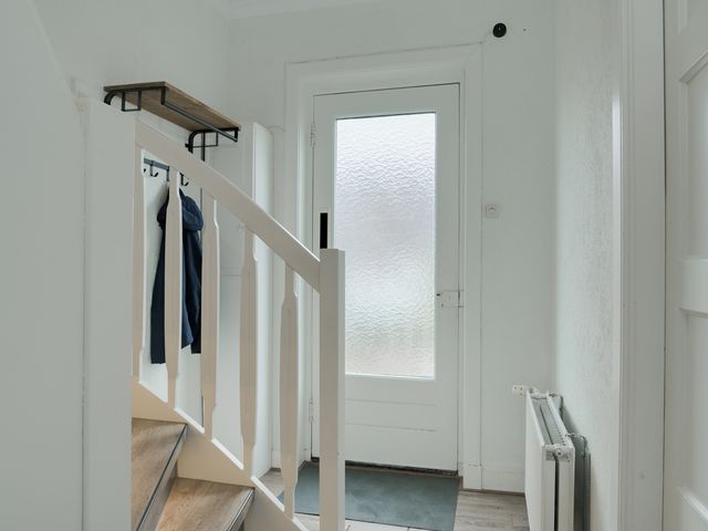 Begane grond: De woning is modern afgewerkt en verwelkomt u met een entreehal voorzien van meterkast, trapkast en trapopgang naar de eerste verdieping, waarbij de ingebouwde trapverlichting direct een stijlvolle indruk geeft. Vanuit de hal bereikt u de lichte L-vormige woon-/eetkamer met een sfeervolle houtkachel, veel natuurlijk licht aan zowel de voor- als achterzijde en een inbouwkast. Aansluitend bevindt zich de keuken, voorzien van inbouwapparatuur. De aangrenzende bijkeuken beschikt over een wastafel, toiletruimte, verhoogd plateau voor wasmachine en droger en een doorgang naar de achtertuin. Vanuit de bijkeuken is tevens de badkamer bereikbaar, uitgerust met douche, ligbad, wastafel en een tweede toilet. Zowel de bijkeuken als de badkamer worden verwarmd middels vloerverwarming.