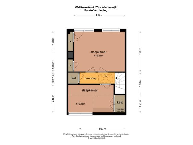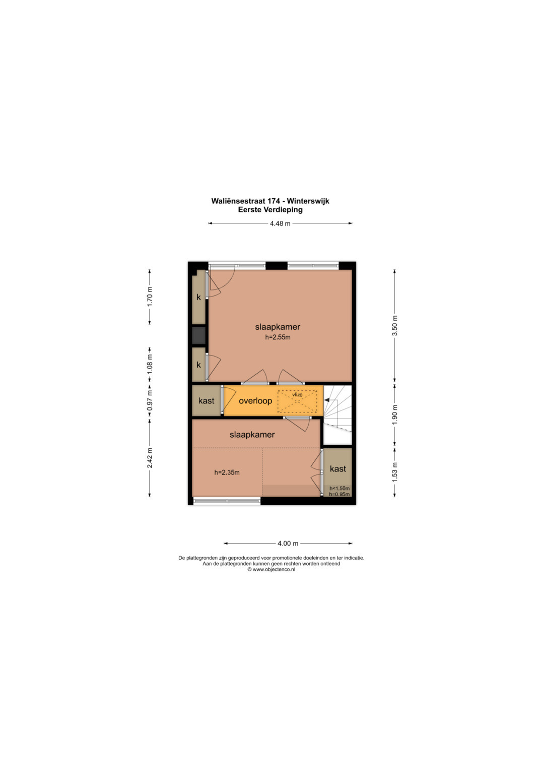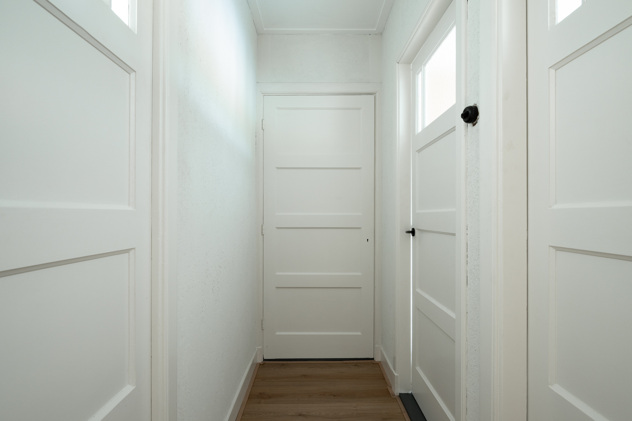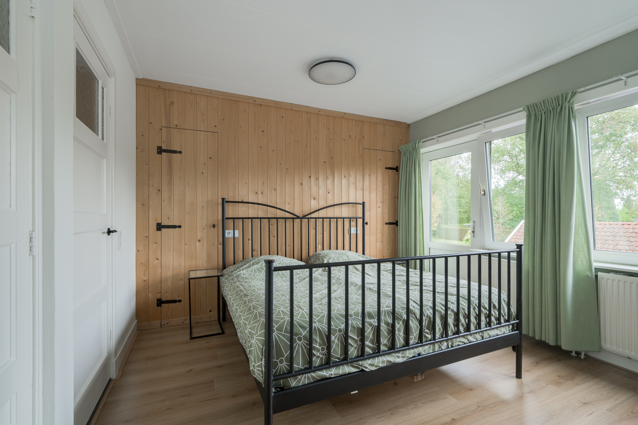 Eerste verdieping: Via de overloop, voorzien van een kastruimte (waar mogelijkerwijs een tweede toilet gerealiseerd kan worden), zijn twee slaapkamers bereikbaar. Beide kamers beschikken over praktische inbouwkasten en genieten van een prettige lichtinval. Indien gewenst kan er met een eenvoudige aanpassing, bijvoorbeeld door het plaatsen van een tussenwand, een derde slaapkamer worden gecreëerd.