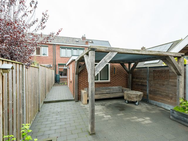 Goed onderhouden tussenwoning (vier-onder-een-kap) in een fijne leefomgeving. De woning beschikt over een vrijstaande stenen schuur, een zonnige achtertuin op het oosten met overdekt terras en een eigen oprit met carport aan de achterzijde. De woning is voorzien van rolluiken, badkamer op de begane grond en een lichte woonkamer met een sfeervolle houtkachel.