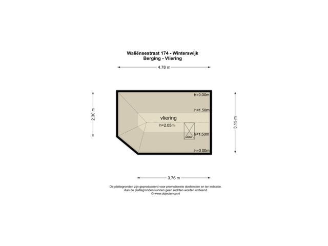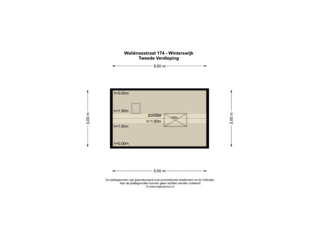 Tweede verdieping: Via een vlizotrap bereikbare vliering