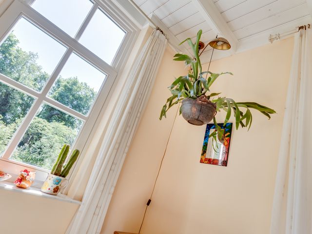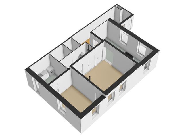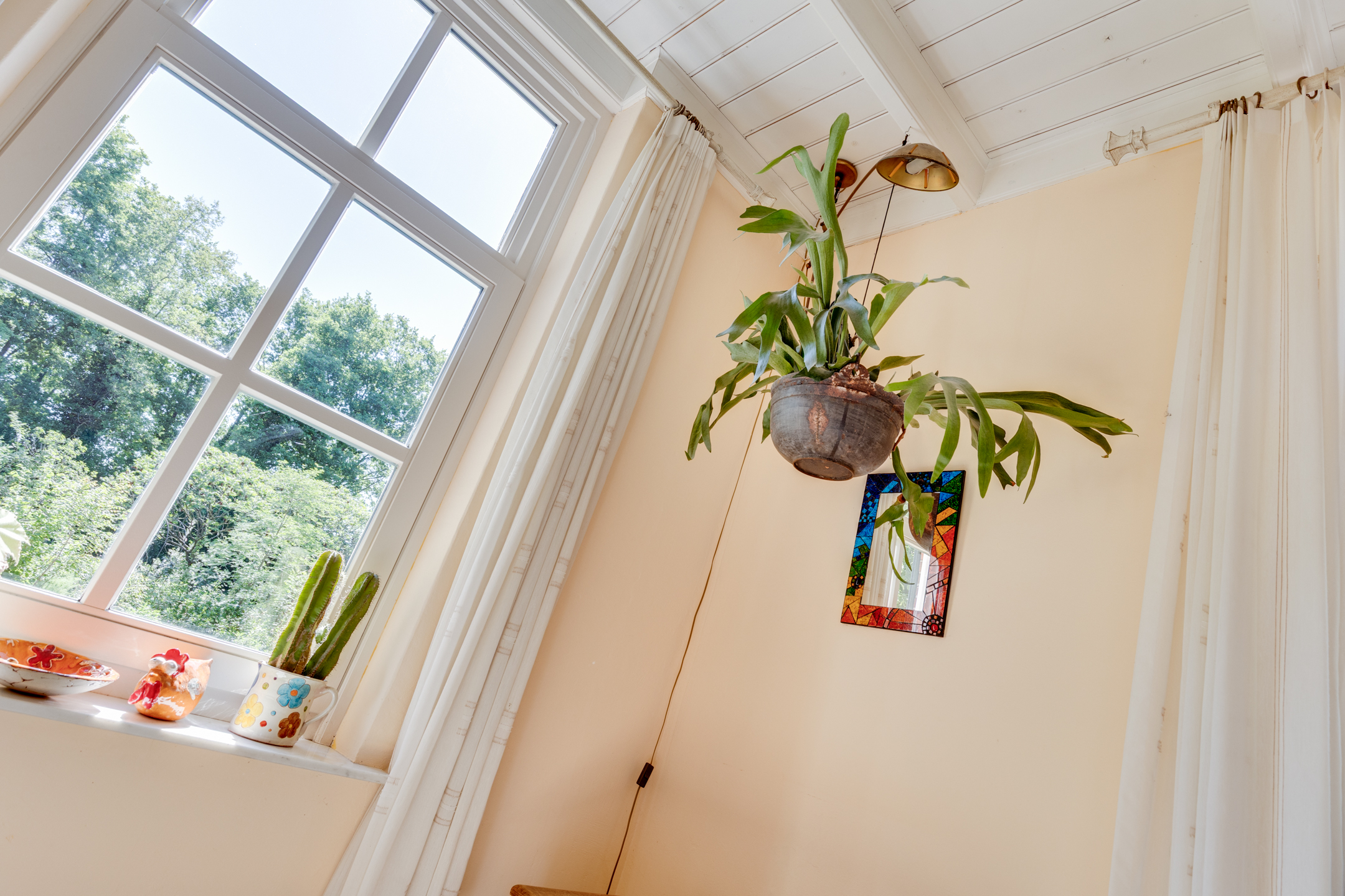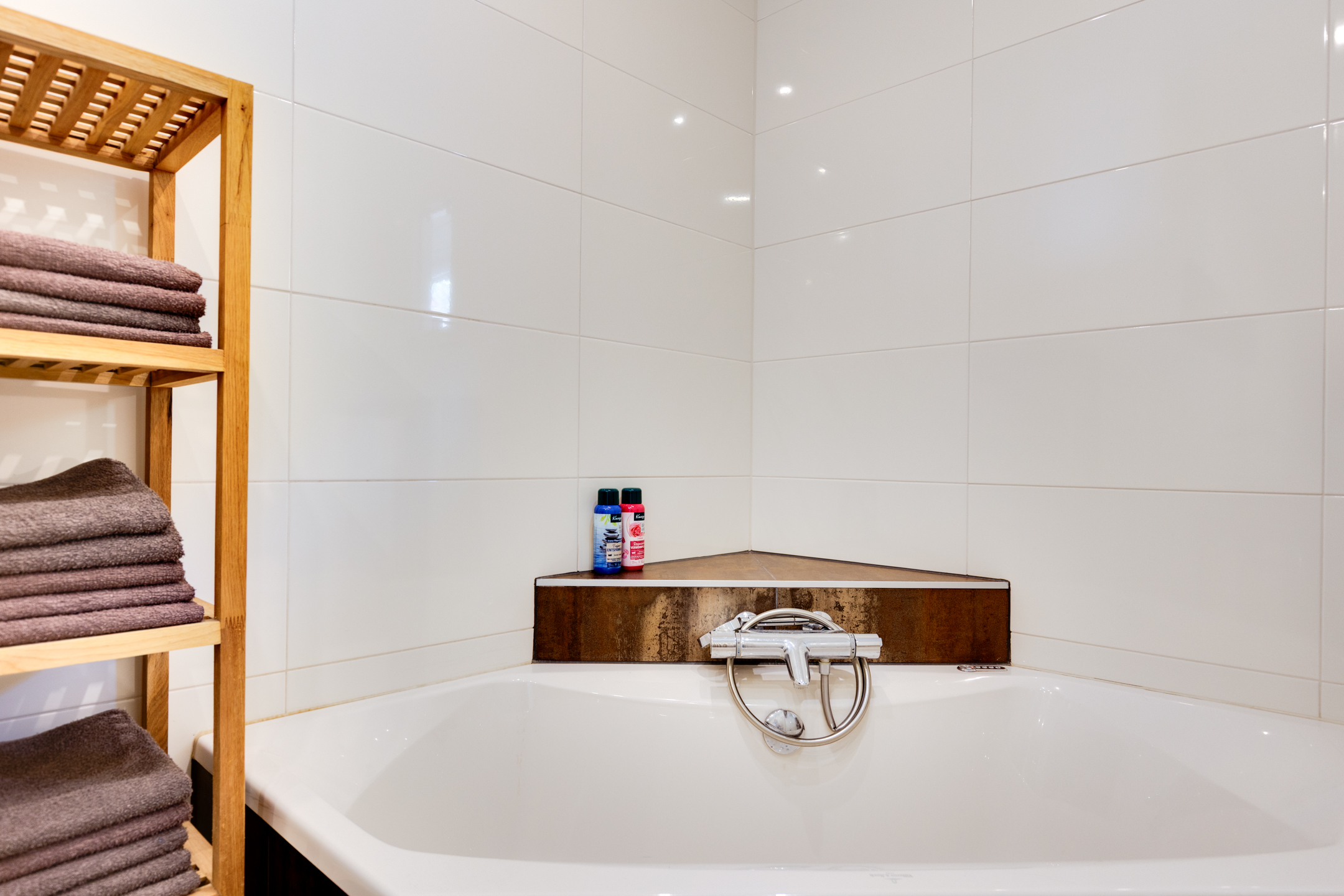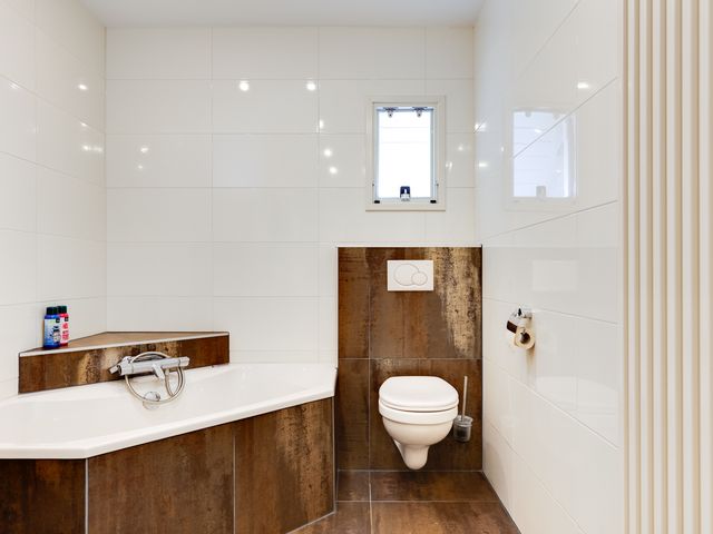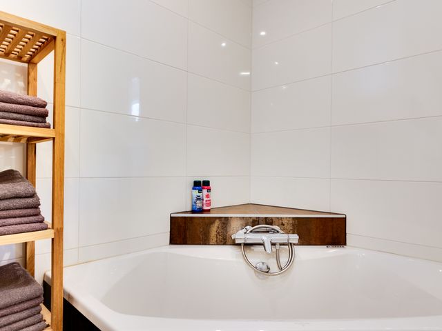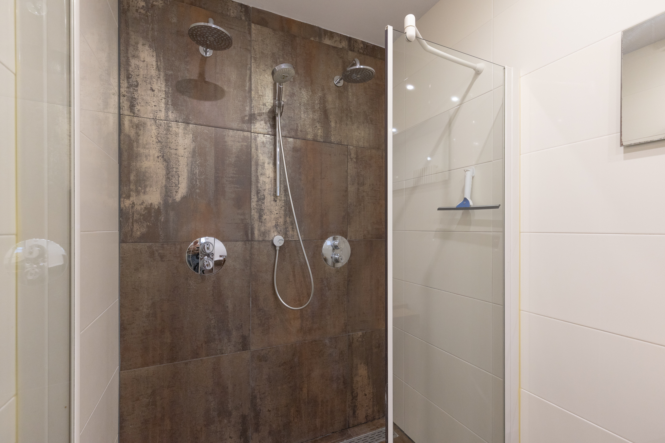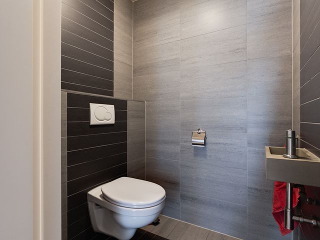 Eerste verdieping: Vanuit de overloop is er toegang tot 2 slaapkamers, de badkamer, de kantoorruimte en de grote zolderruimte. De beide ruimtes die als slaapkamer in gebruik zijn liggen aan de voorzijde. Beide zijn voorzien van een groot draai-/kiepraam. De badkamer is modern en voorzien van een ruime inloopdouche met dubbele regendouche, wastafel/-kom, hoekligbad en wandcloset. De kantoorruimte bevindt zich boven de aanbouw en is net als de overloop voorzien van een dakraam. De cv-ketel hangt op de grote zolderruimte op deze verdieping.