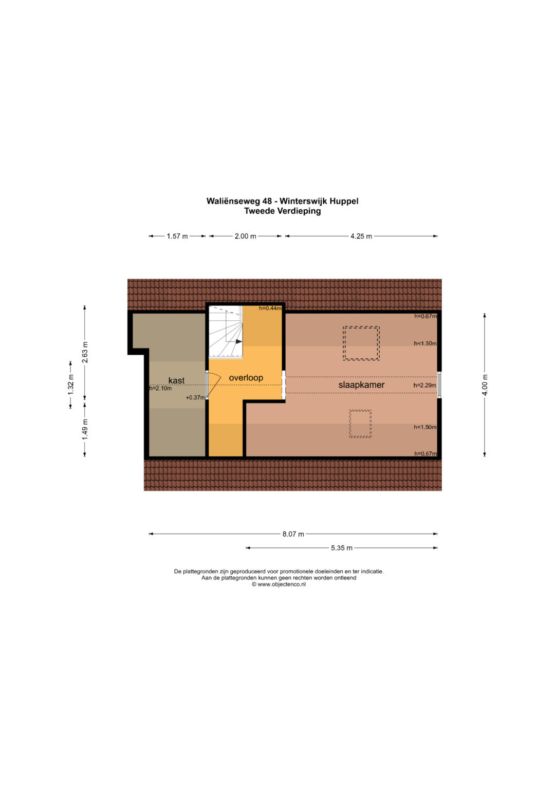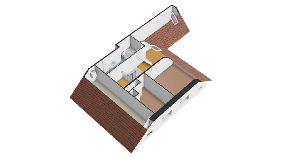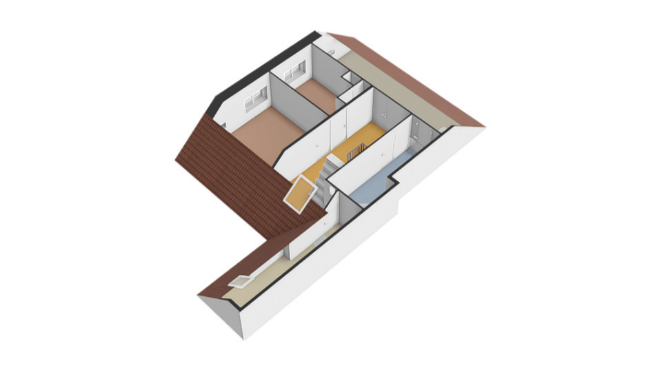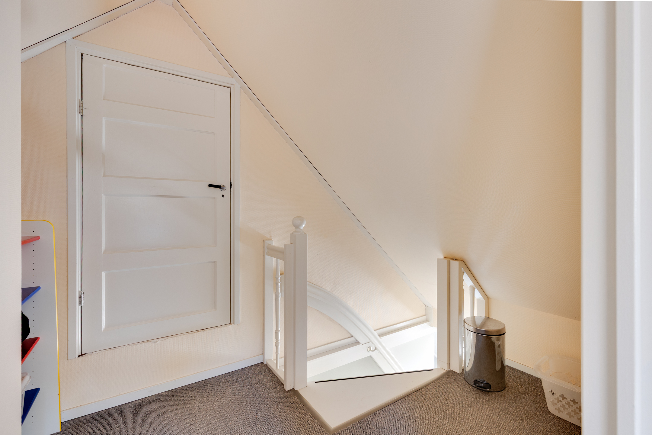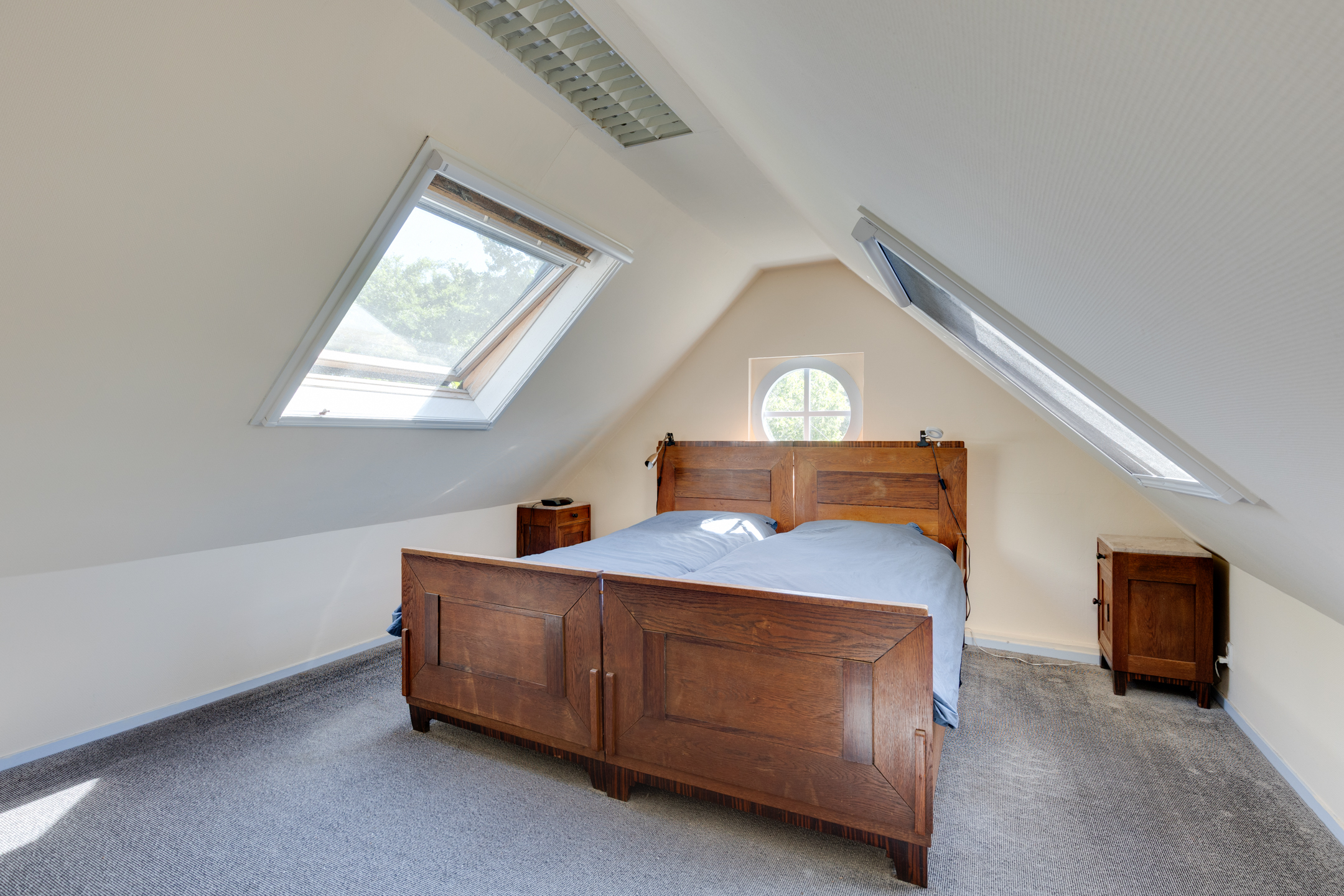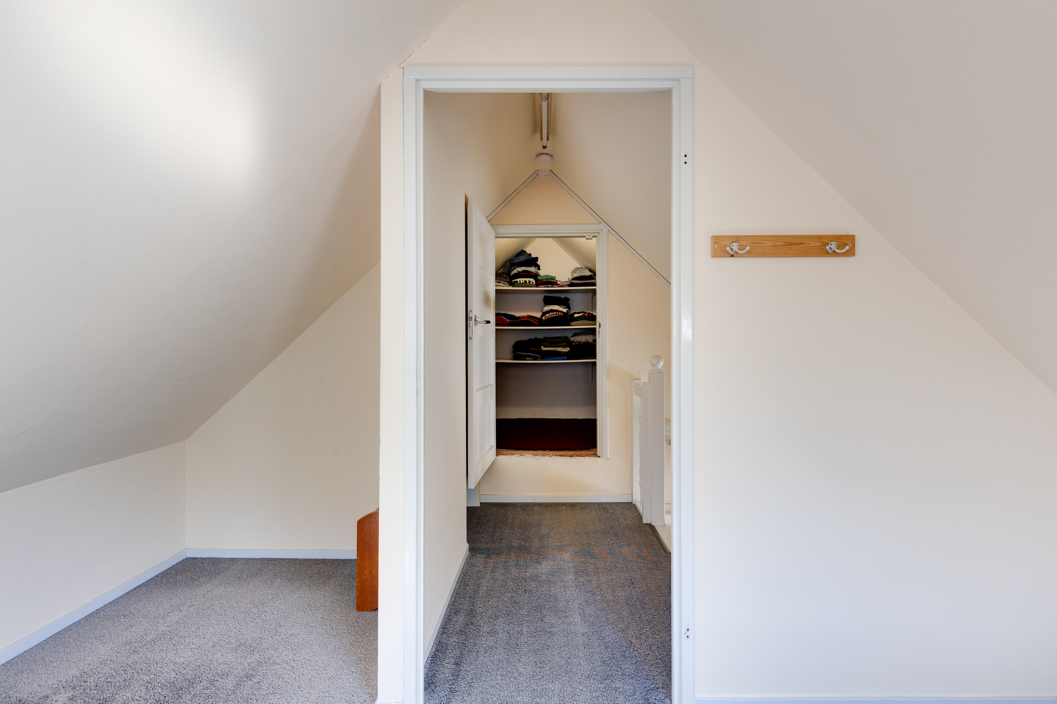 Tweede verdieping: Via een vaste trap bereikbare overloop met toegang tot 3e slaapkamer in de nok van de woning en grote kastruimte. De slaapkamer is voorzien van 2 dakramen.