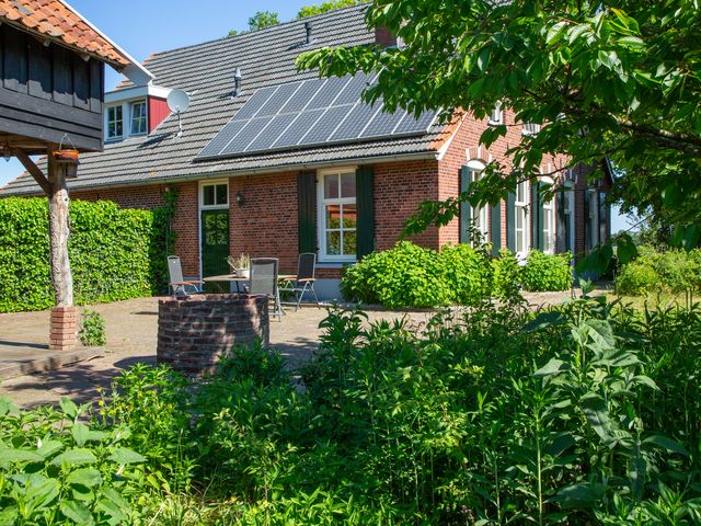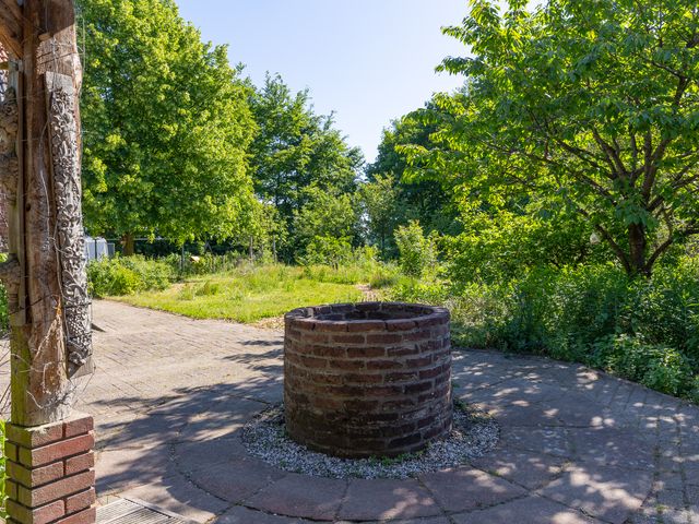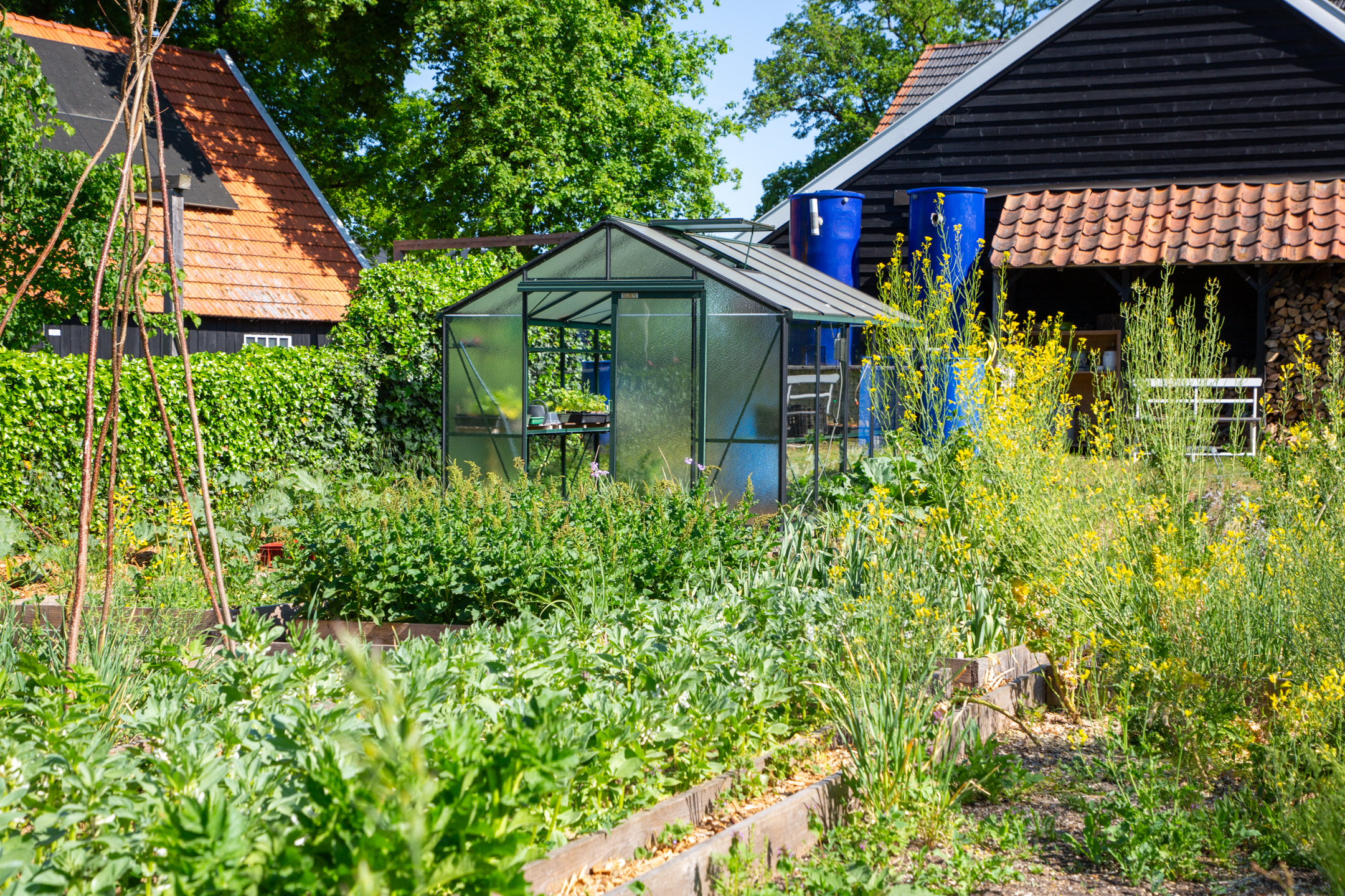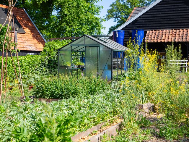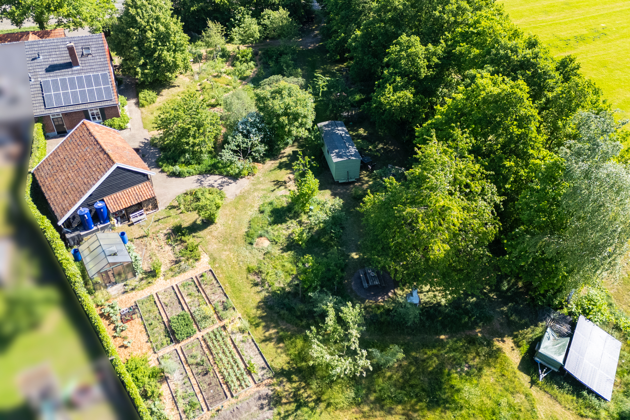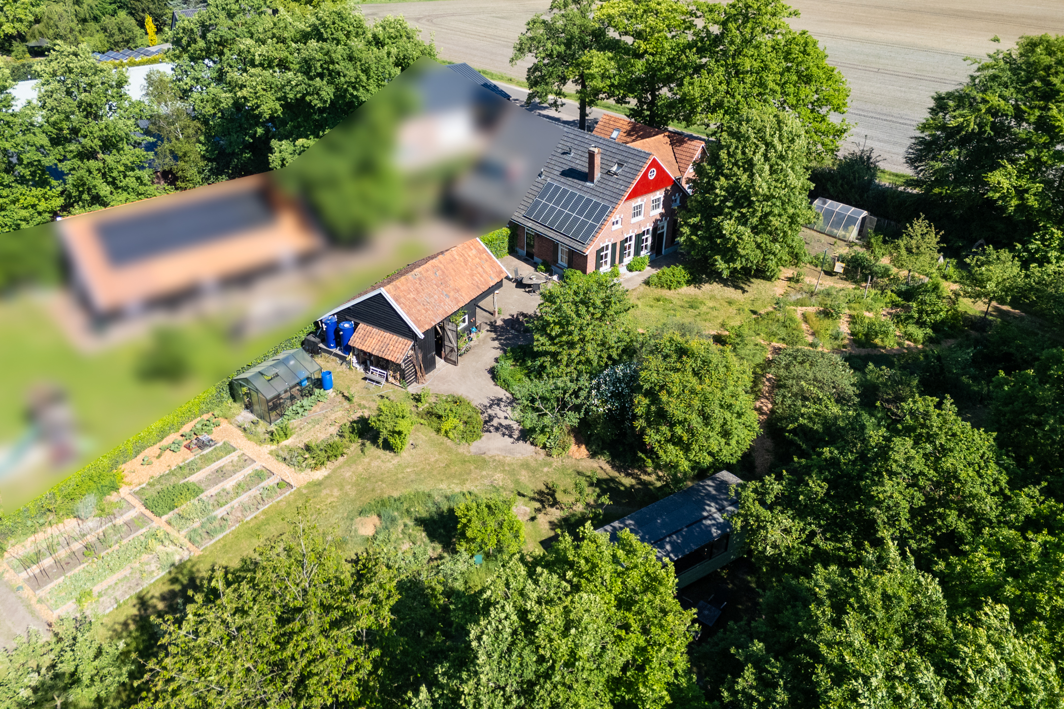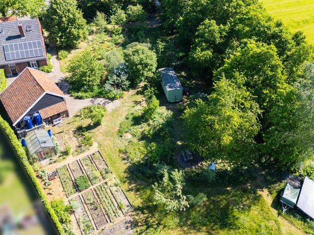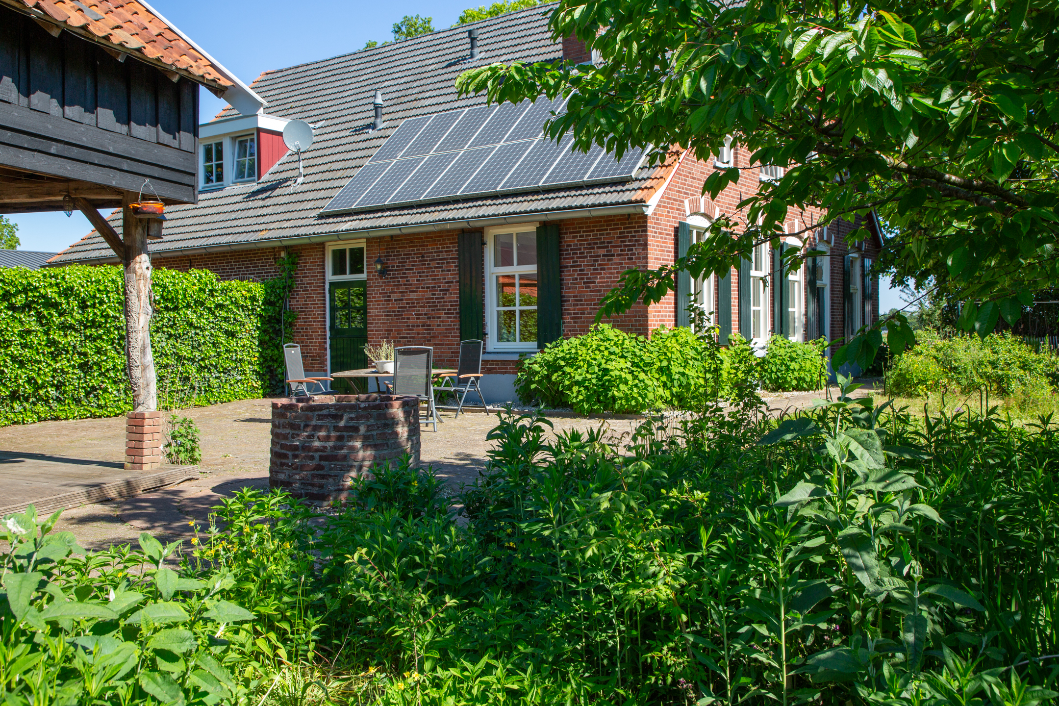 In totaal zijn er 25 zonnepanelen geplaatst waarvan 16 op het dak van de woning en nog eens 9 stuks aan de achterzijde op het perceel. Het regenwater wordt opgevangen en gebruikt voor de beregening van de tuin.