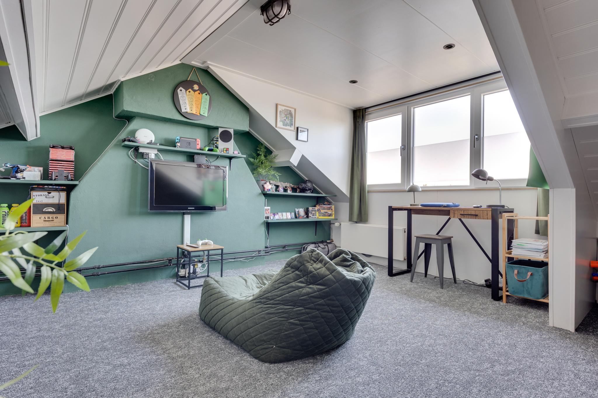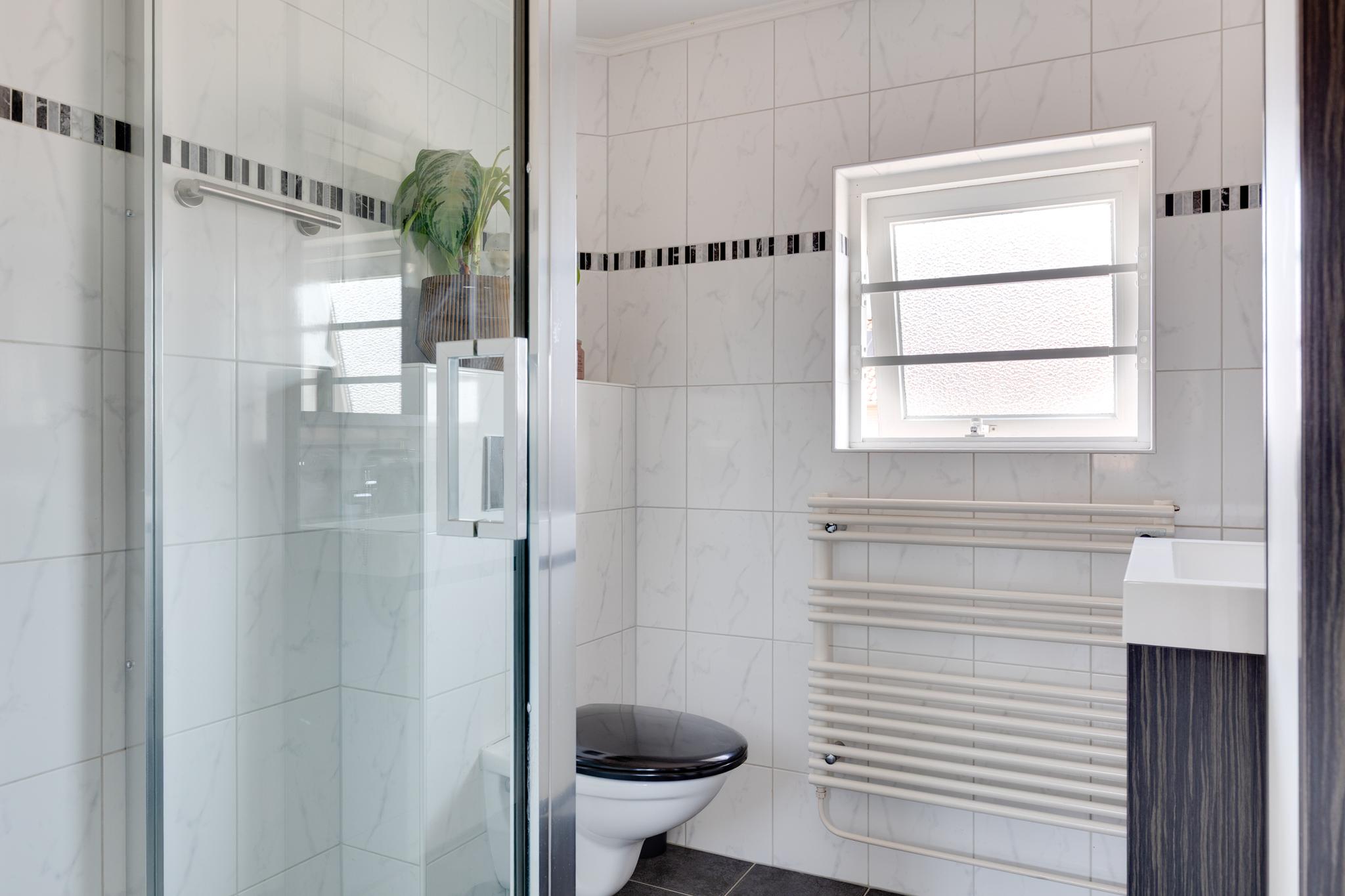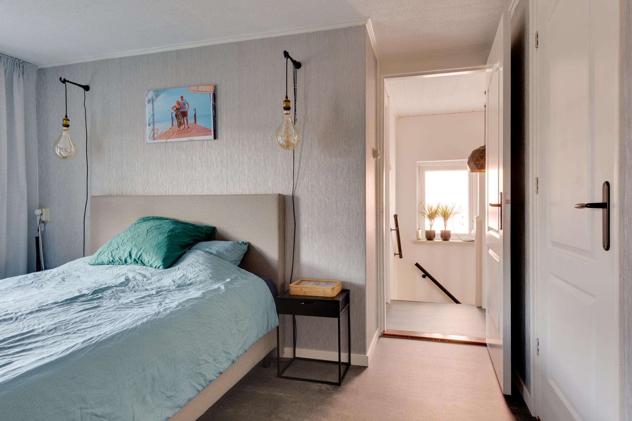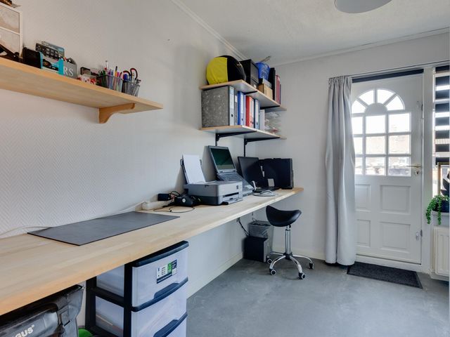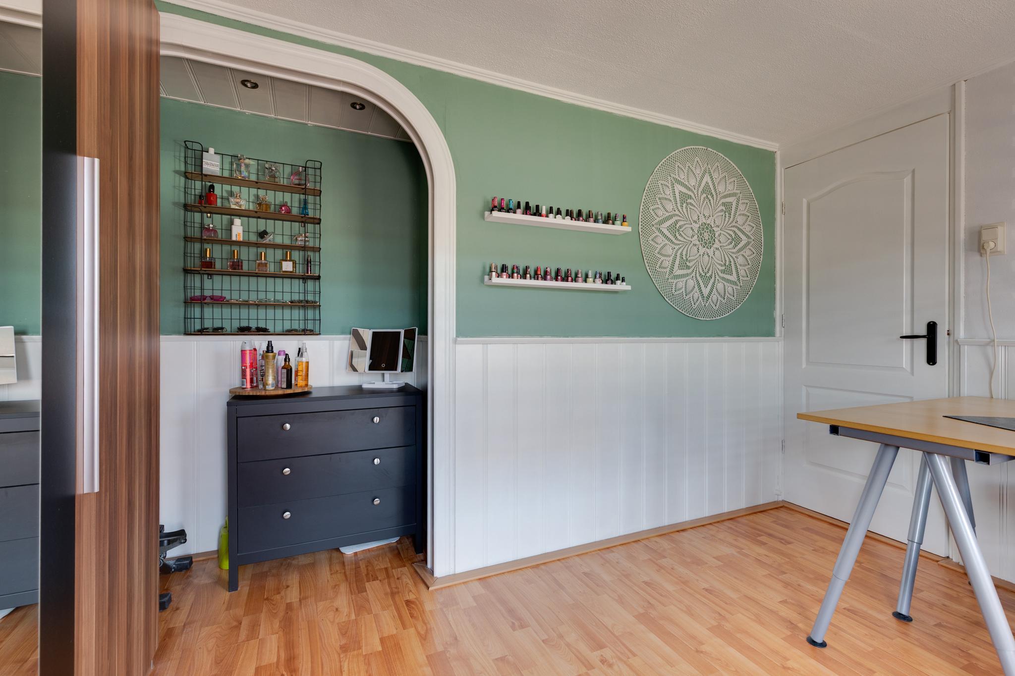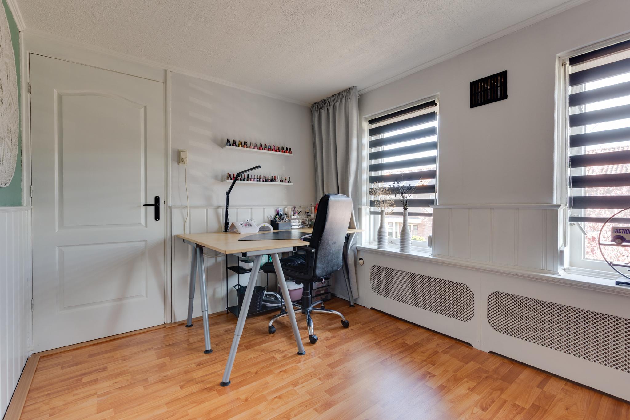 Overloop met inbouwkast en toegang tot de 3 slaapkamers en badkamer. De kleinste van de 3 slaapkamers op deze verdieping is thans in gebruik als kantoortje/werkkamer. Alle 3 slaapkamers zijn voorzien van een inbouwkast. De badkamer beschikt over een inloopdouche, wastafelmeubel, toilet en designradiator. De kantoorruimte/werkkamer biedt toegang tot het dakterras en beschikt ook over een vaste trap naar de tweede verdieping.