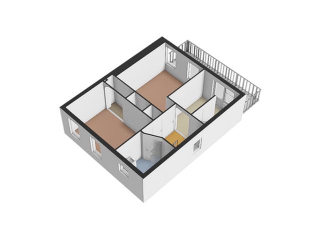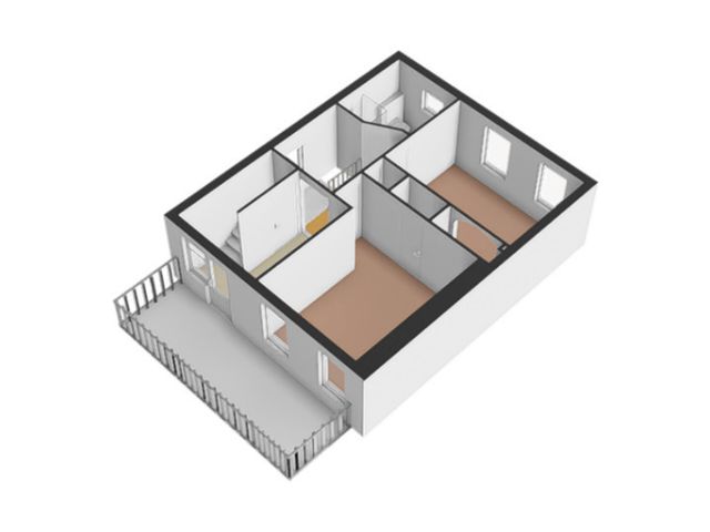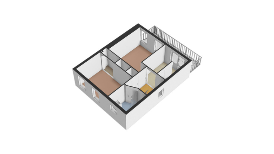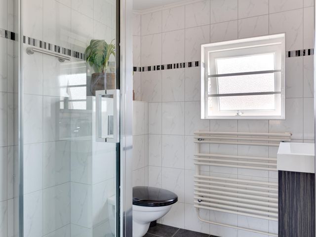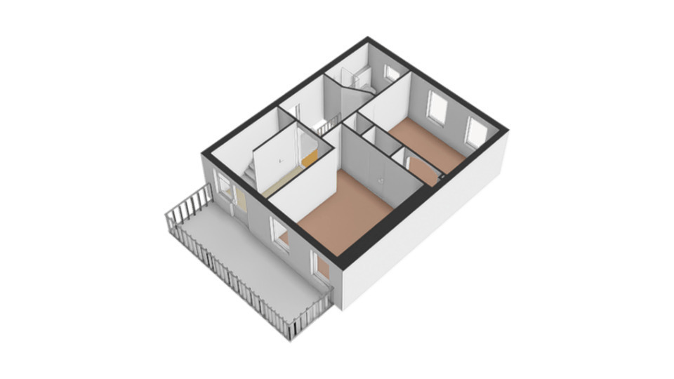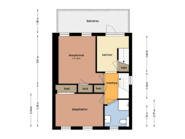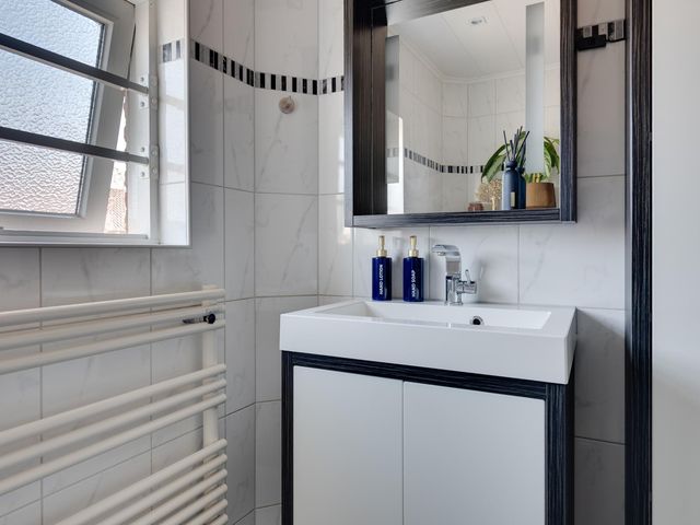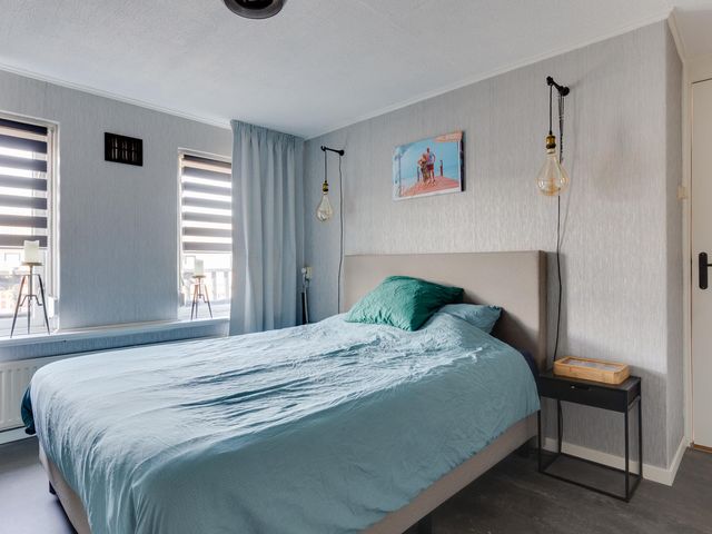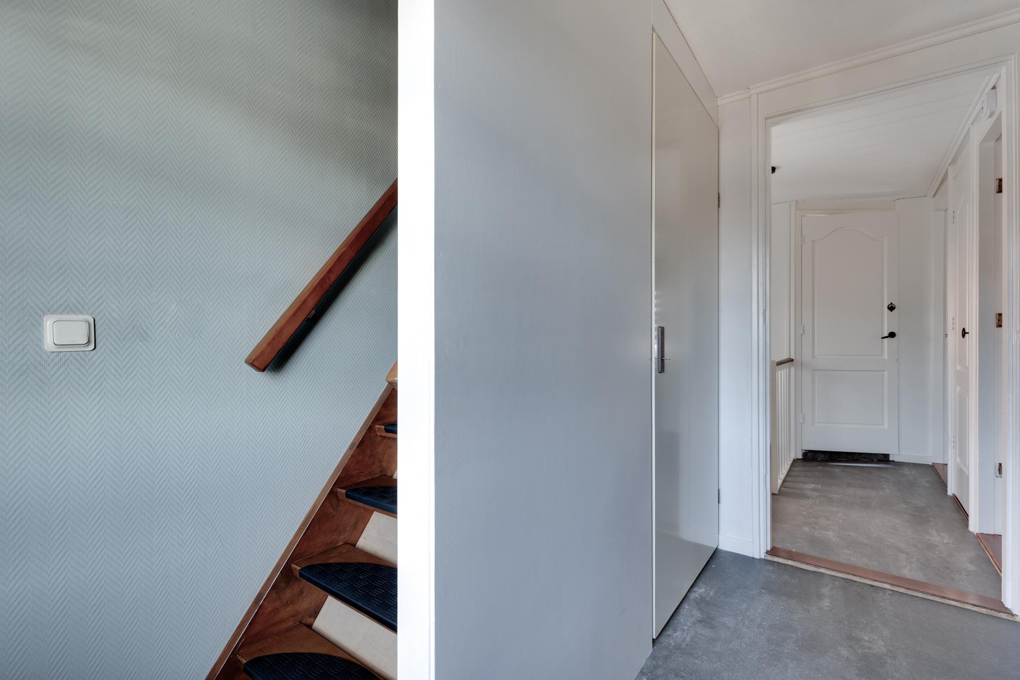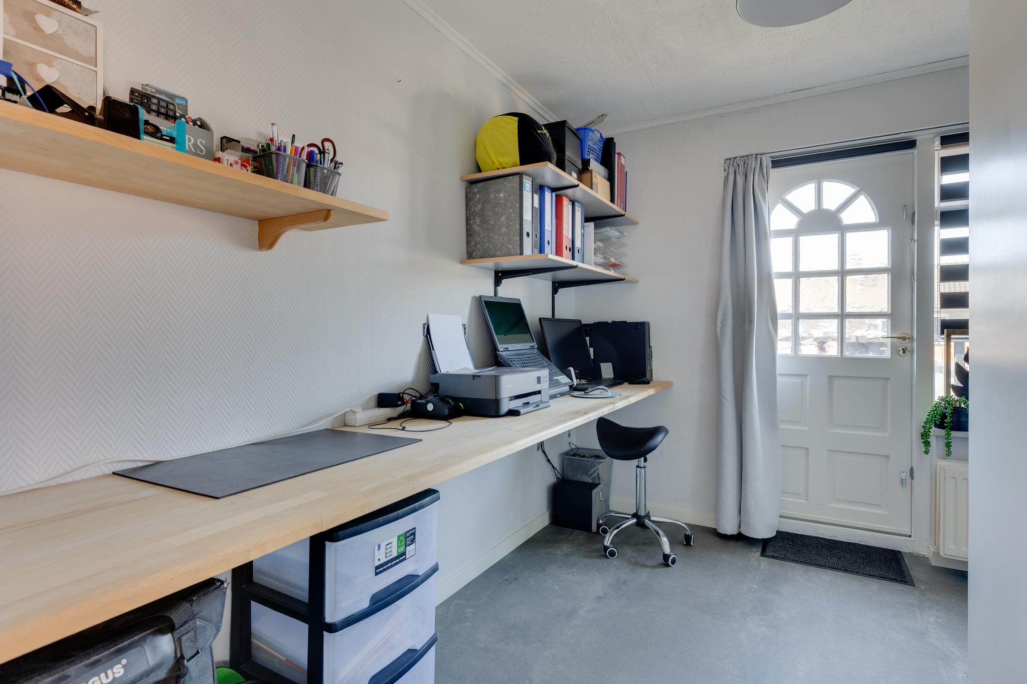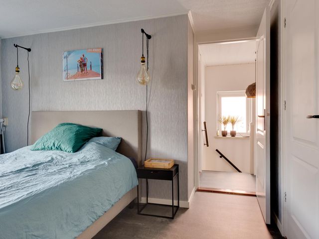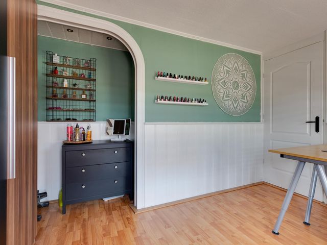 Overloop met inbouwkast en toegang tot de 3 slaapkamers en badkamer. De kleinste van de 3 slaapkamers op deze verdieping is thans in gebruik als kantoortje/werkkamer. Alle 3 slaapkamers zijn voorzien van een inbouwkast. De badkamer beschikt over een inloopdouche, wastafelmeubel, toilet en designradiator. De kantoorruimte/werkkamer biedt toegang tot het dakterras en beschikt ook over een vaste trap naar de tweede verdieping.