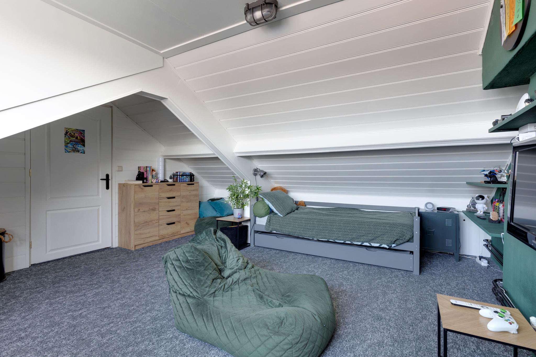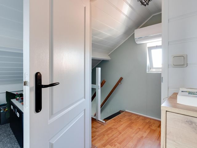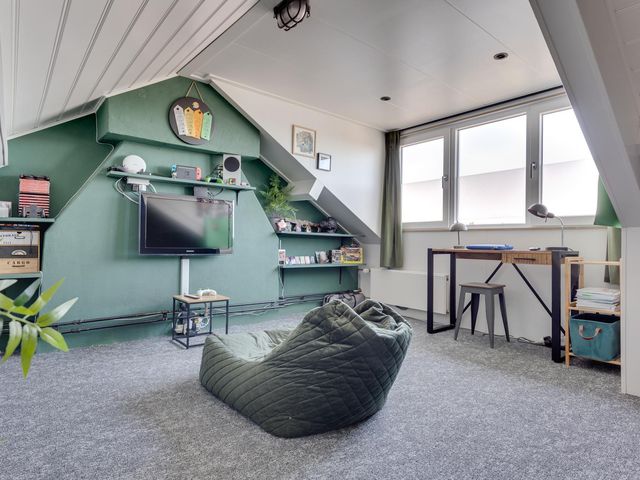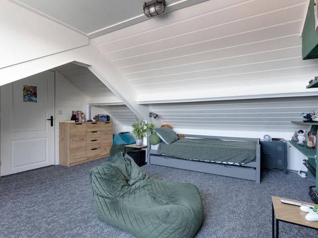 Via de vaste trap bereikbare overloop met toegang tot een 4e slaapkamer met grote dakkapel en bergruimte achter de knieschotten. Deze verdieping is voorzien van airconditioning.